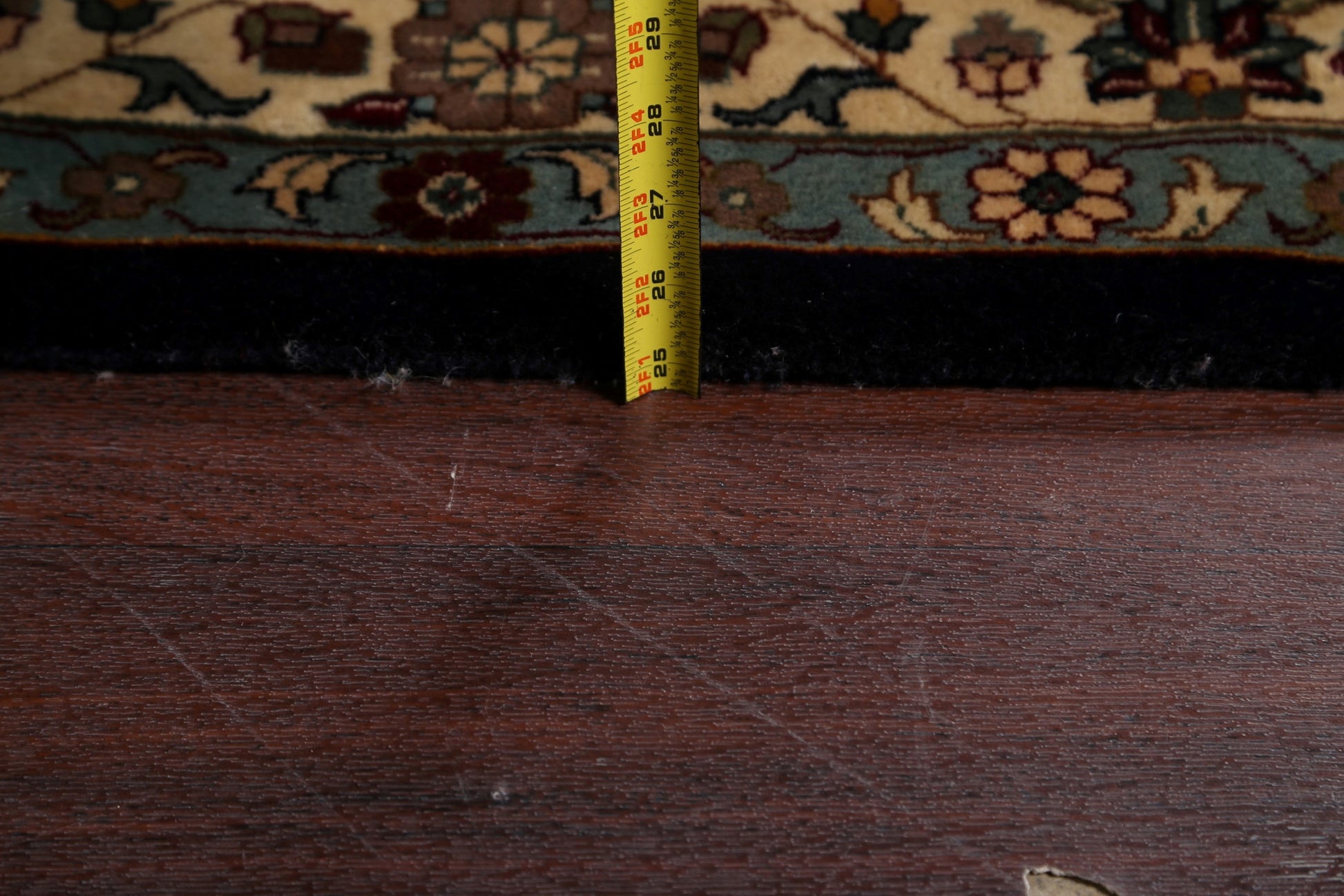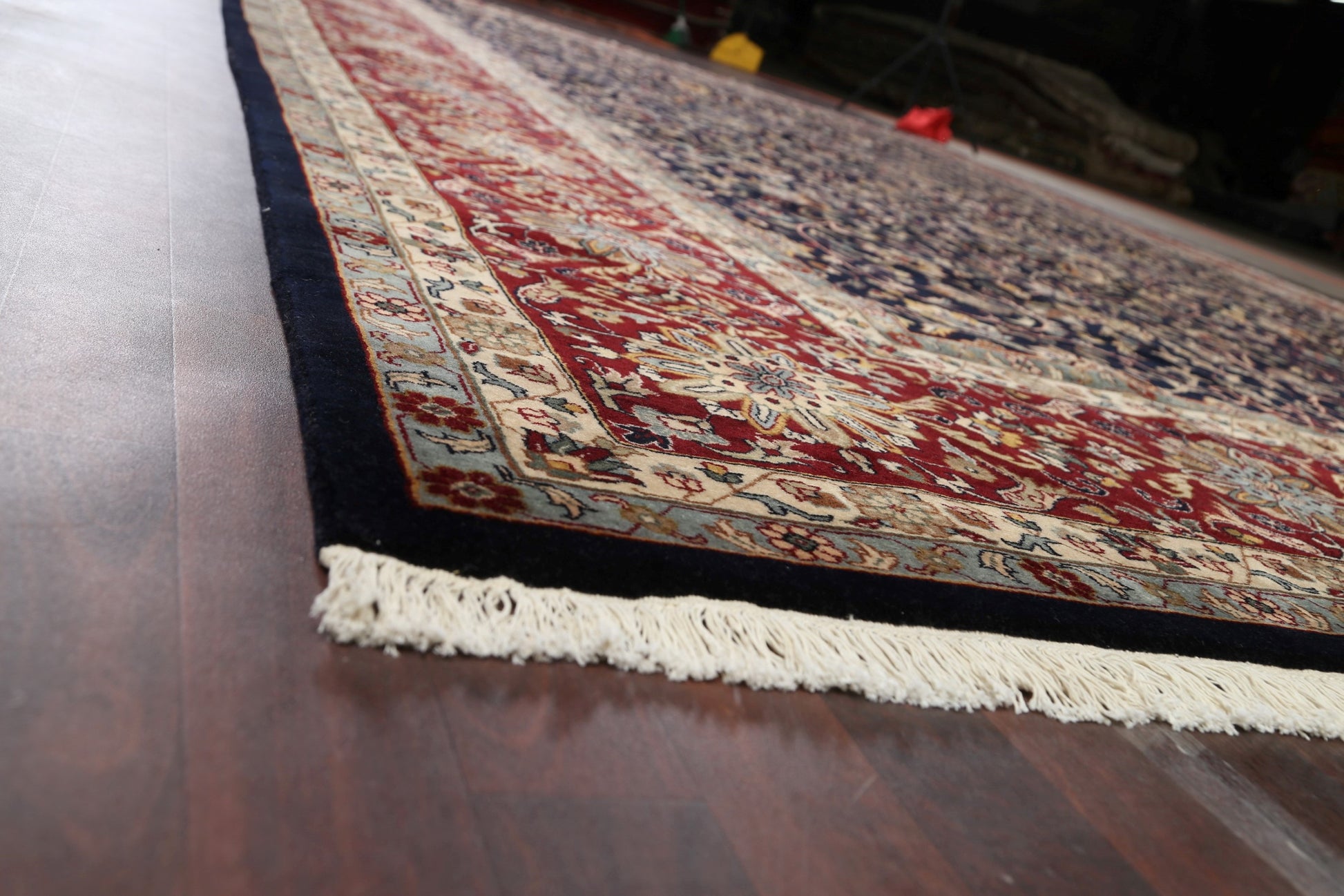 A Beautiful Genuine Pakistan Aubusson rug is Hand Knotted by skillful weavers in Pakistan with 100% Kork Wool Material. This rug is in New, First Quality condition. dimensions are 18' 0'' X 12' 1'' in foot and 549 X 368 in centimeter. the primary color is Navy Blue & Blues.