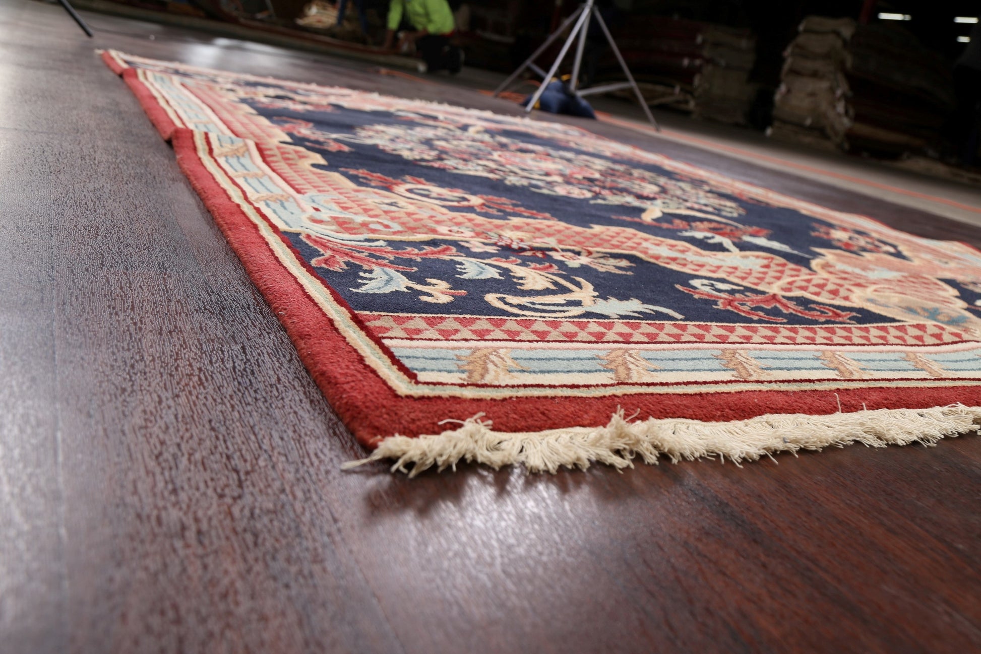 A Beautiful Genuine China Aubusson rug is Hand Knotted by skillful weavers in China with 100% Wool Material. This rug is in New, First Quality condition. dimensions are 9' 2'' X 6' 0'' in foot and 279 X 183 in centimeter. the primary color is Navy Blue & Blues.