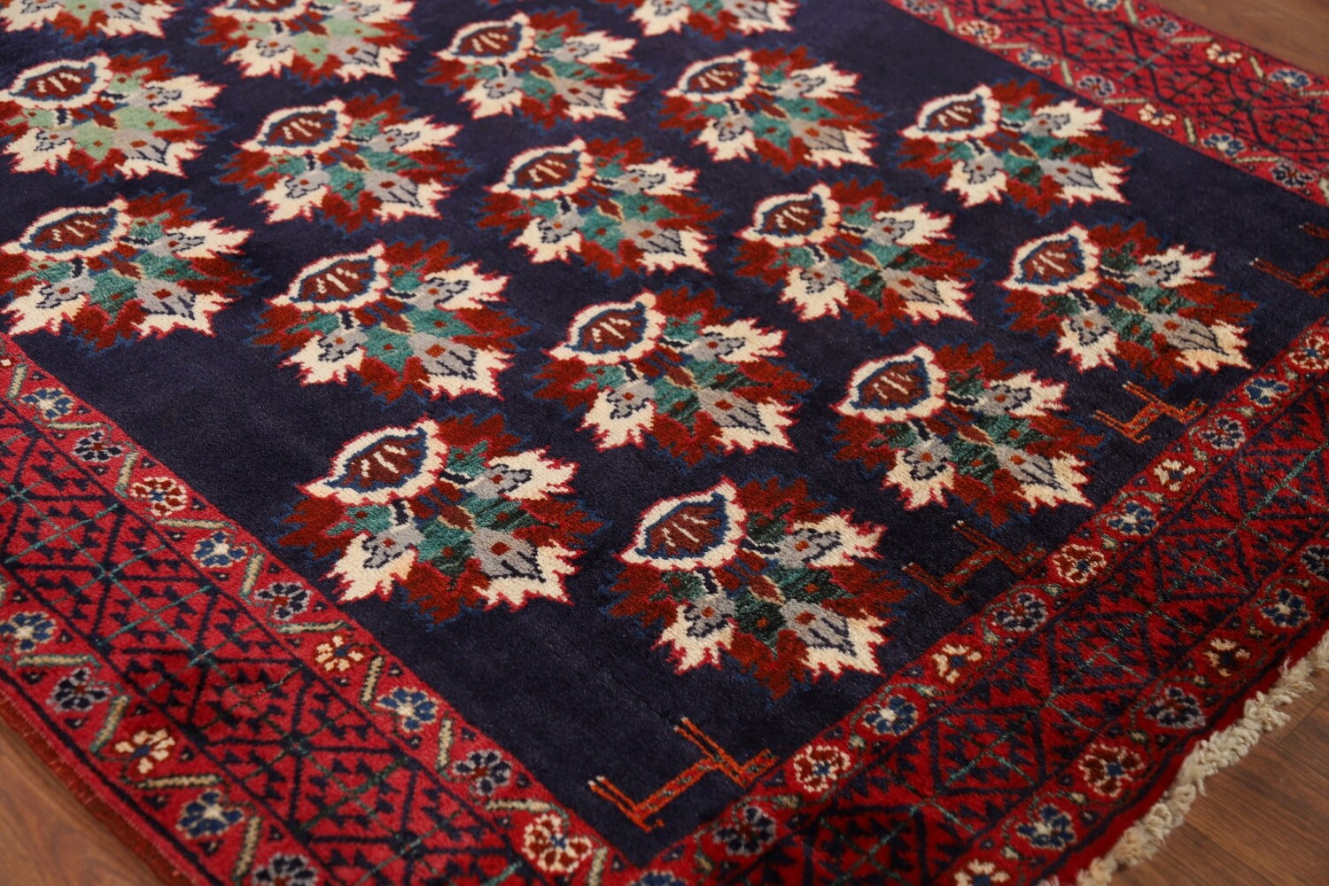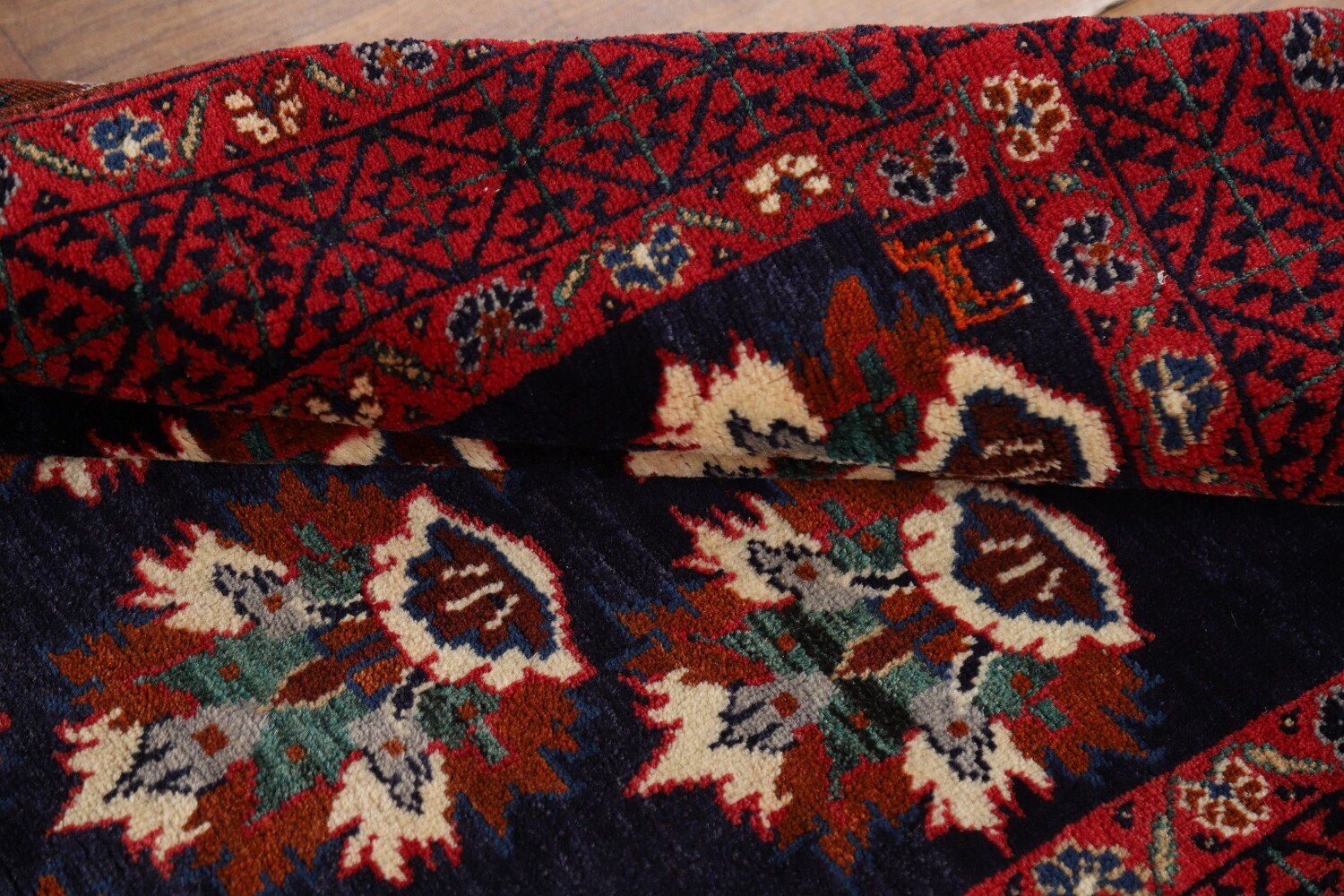 A Beautiful Genuine Persia ( Persia ) Balouch rug is Hand Knotted by skillful weavers in Persia ( Persia ) with 100% Wool Material. This rug is in New, First Quality condition. dimensions are 9' 0'' X 3' 9'' in foot and 274 X 114 in centimeter. the primary color is Navy Blue & Blues.