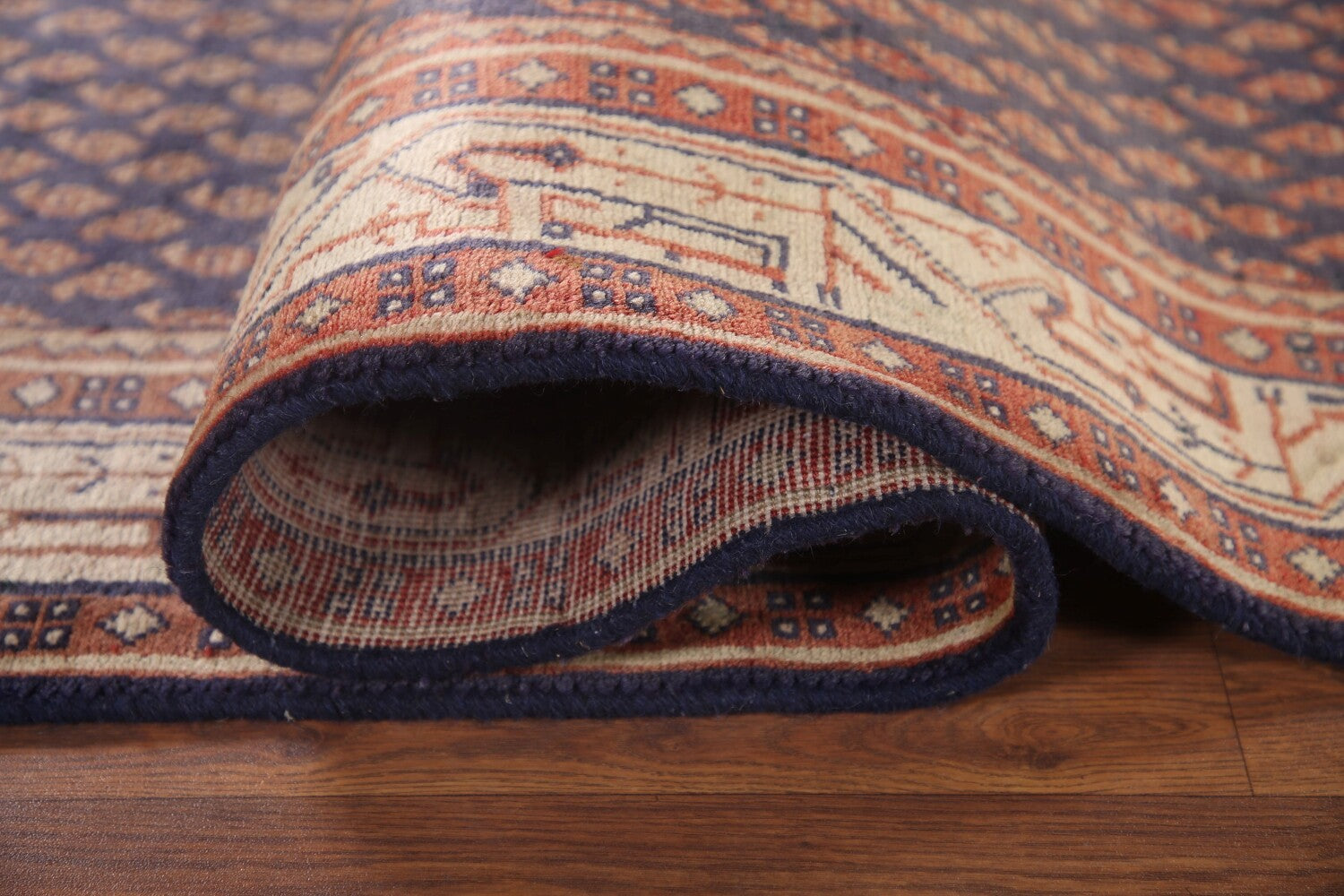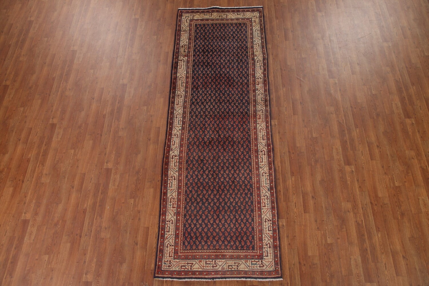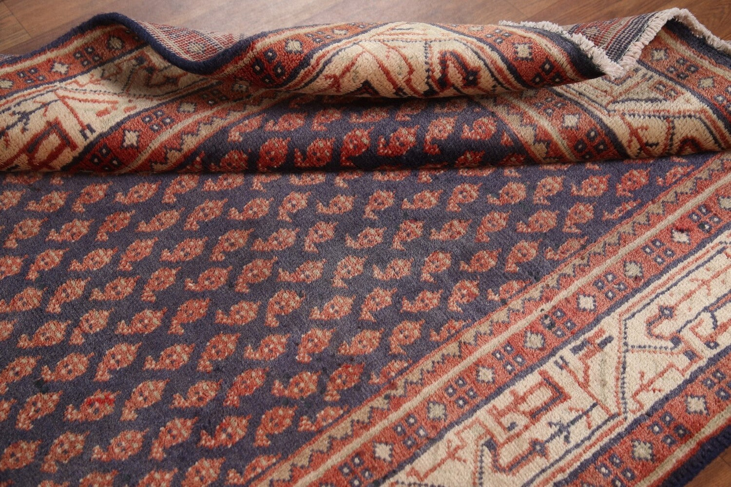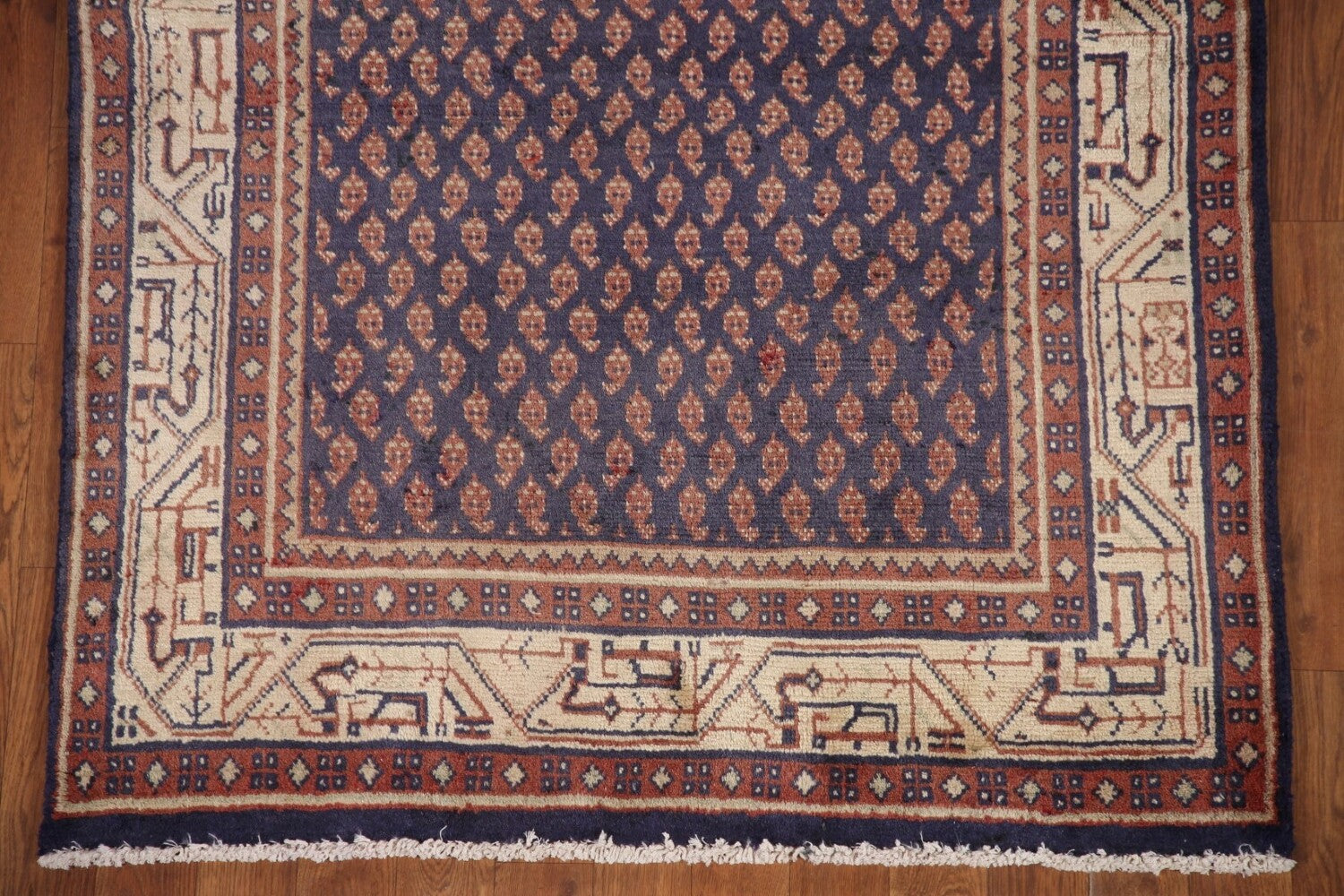A Beautiful Genuine Persia ( Persia ) Botemir rug is Hand Knotted by skillful weavers in Persia ( Persia ) with 100% Wool Material. This rug is in Very Good condition. dimensions are 10' 2'' X 3' 5'' in foot and 310 X 104 in centimeter. the primary color is Navy Blue & Blues.