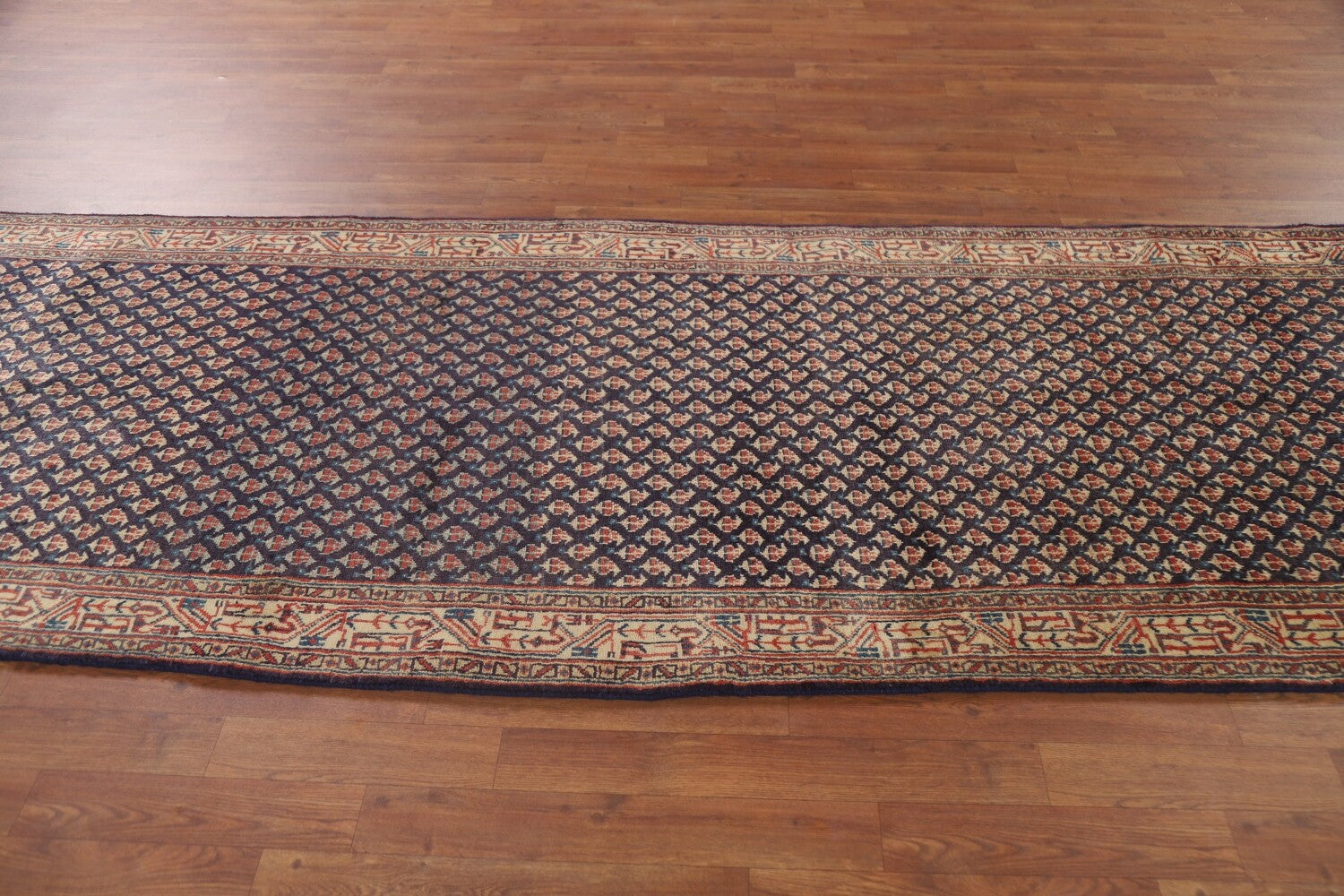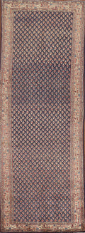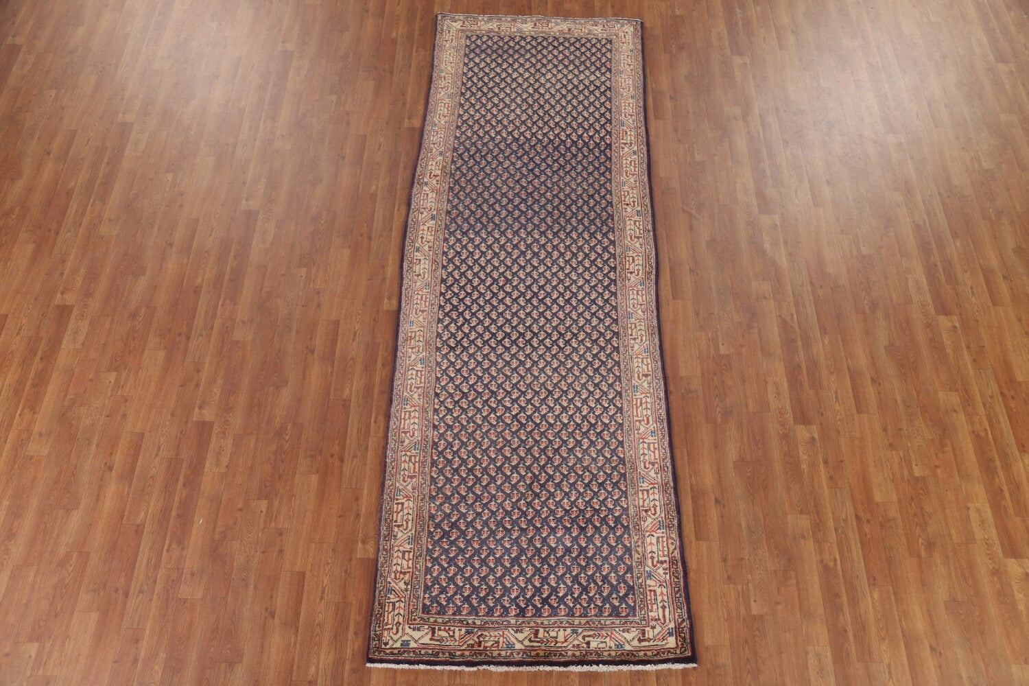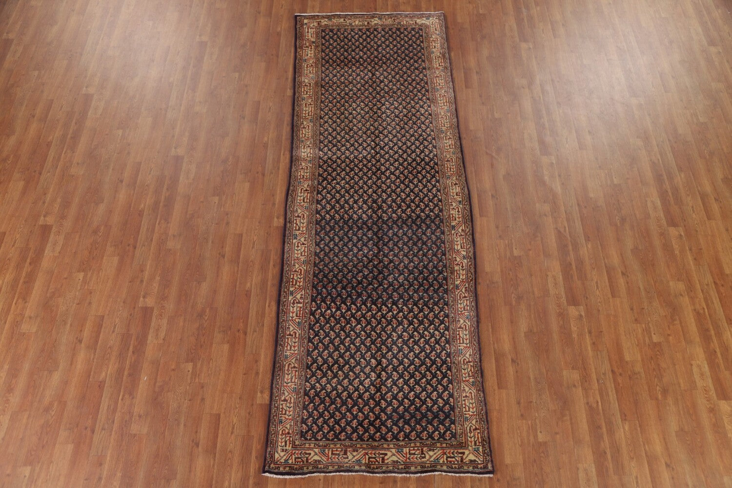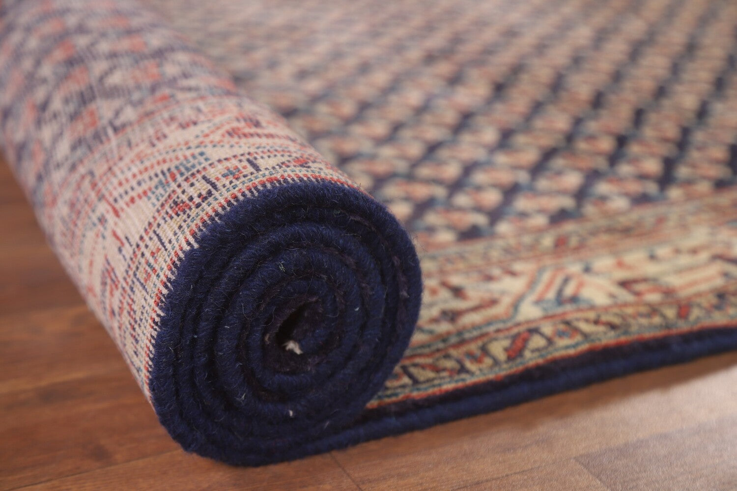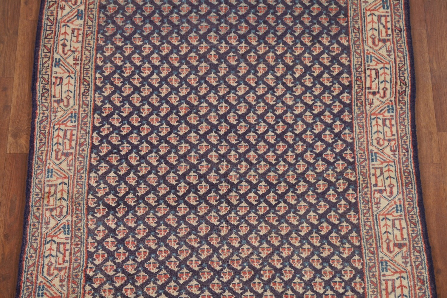 A Beautiful Genuine Persia ( Persia ) Botemir rug is Hand Knotted by skillful weavers in Persia ( Persia ) with 100% Wool Material. This rug is in Very Good (Abrash) condition. dimensions are 10' 3'' X 3' 5'' in foot and 312 X 104 in centimeter. the primary color is Navy Blue & Blues.