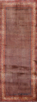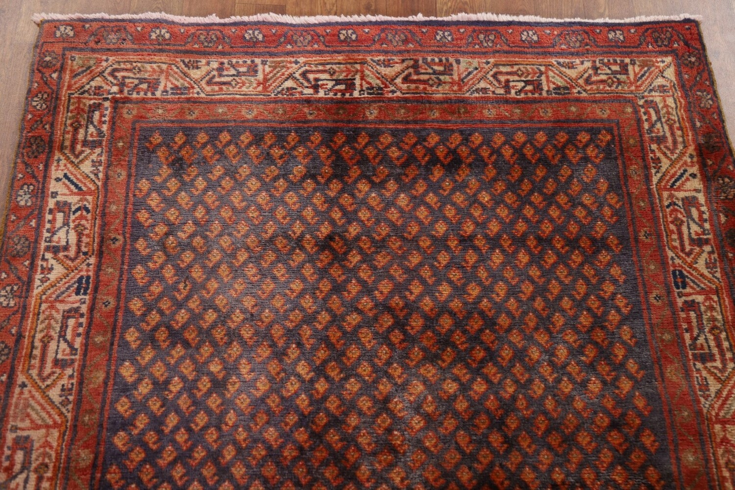 A Beautiful Genuine Persia ( Persia ) Botemir rug is Hand Knotted by skillful weavers in Persia ( Persia ) with 100% Wool Material. This rug is in Very Good condition. dimensions are 10' 0'' X 3' 7'' in foot and 305 X 109 in centimeter. the primary color is Navy Blue & Blues.