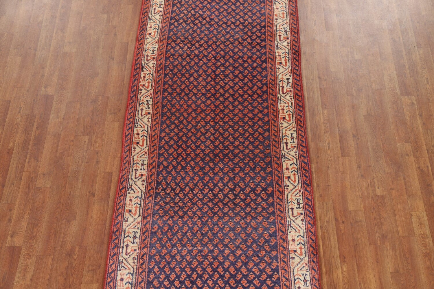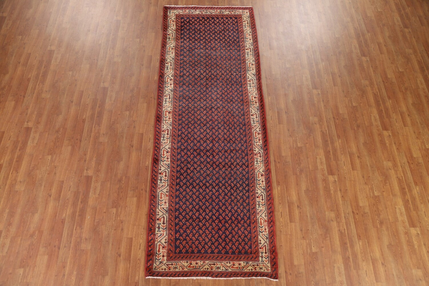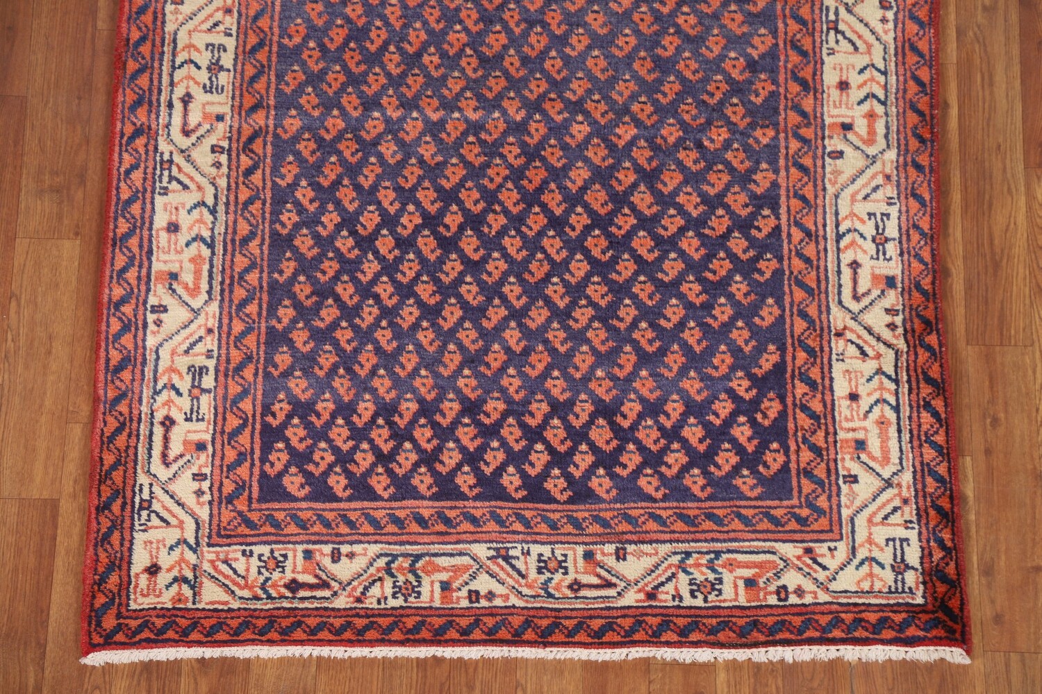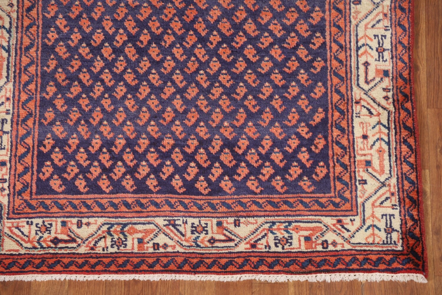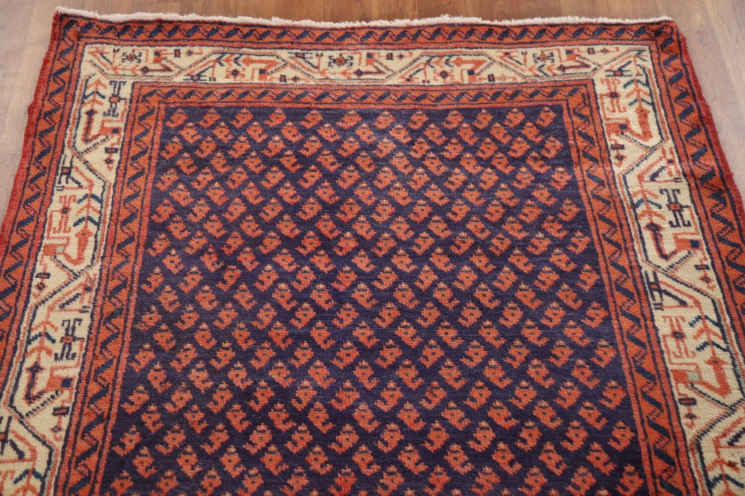 A Beautiful Genuine Persia ( Persia ) Botemir rug is Hand Knotted by skillful weavers in Persia ( Persia ) with 100% Wool Material. This rug is in Very Good condition. dimensions are 10' 4'' X 3' 7'' in foot and 315 X 109 in centimeter. the primary color is Navy Blue & Blues.