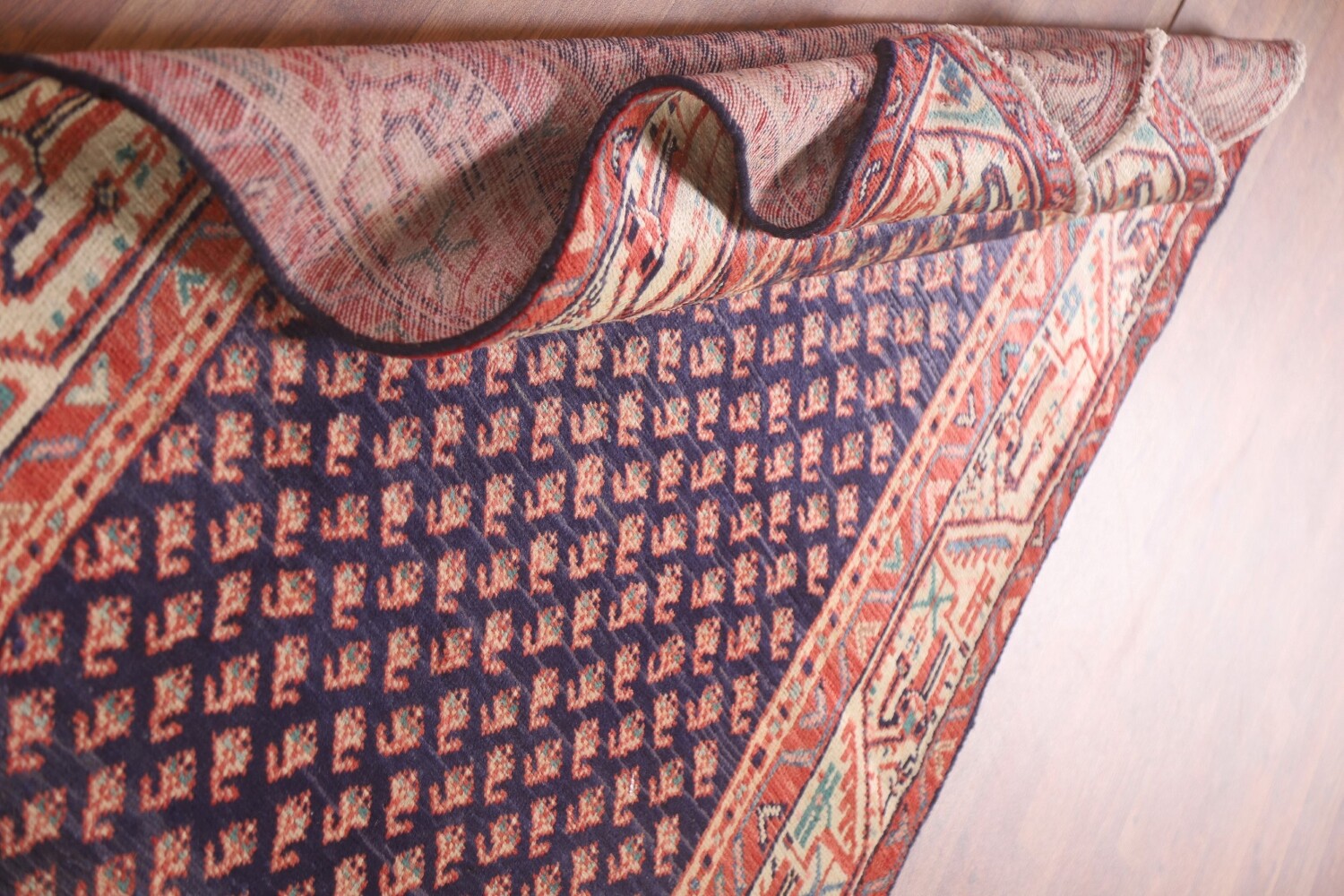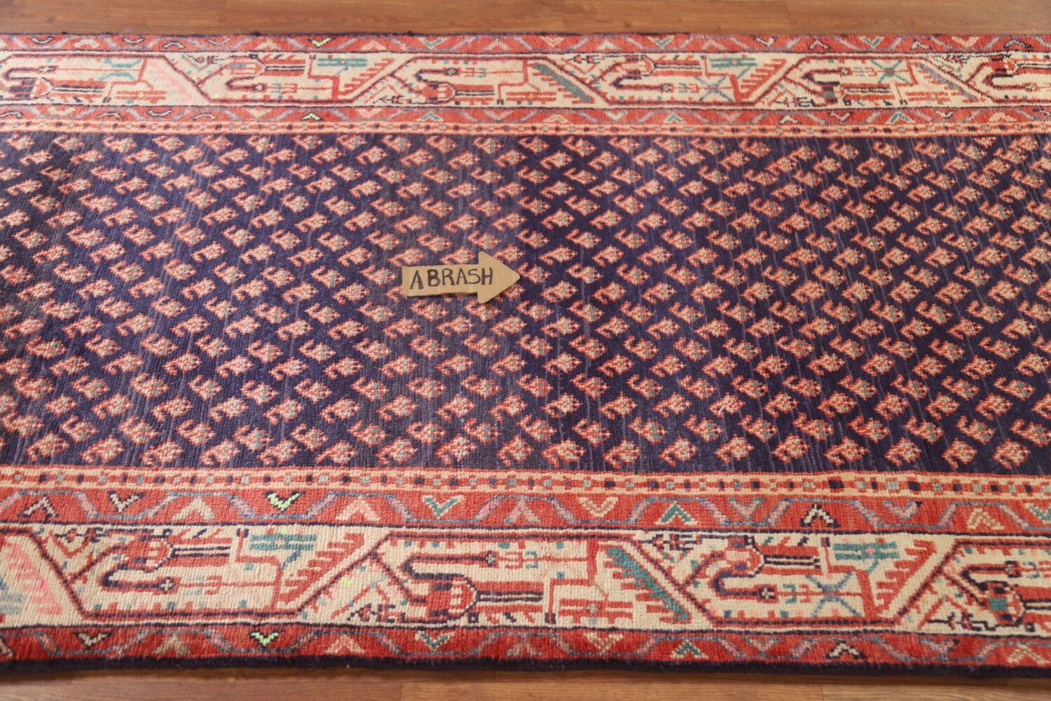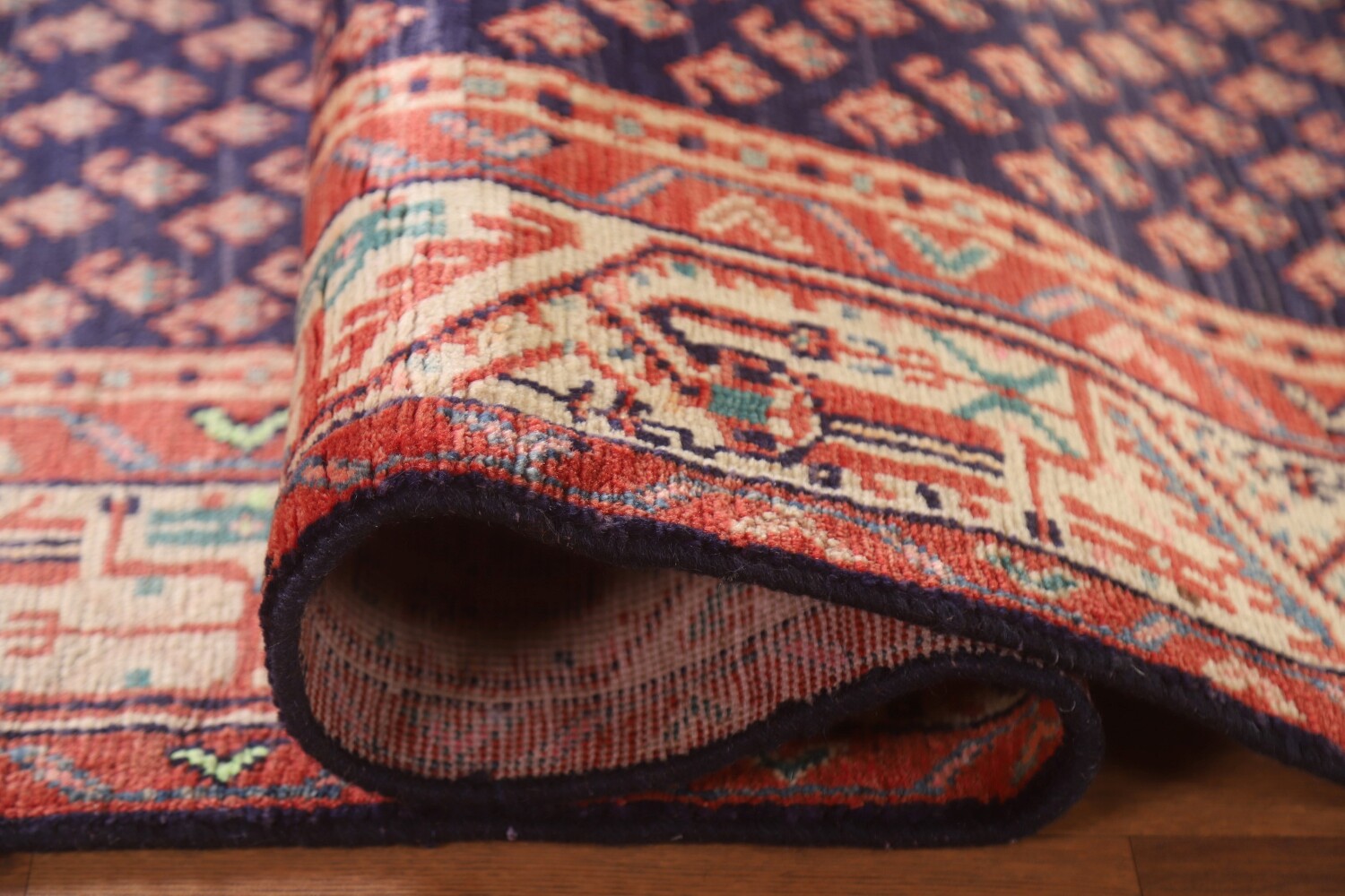 A Beautiful Genuine Persia ( Persia ) Botemir rug is Hand Knotted by skillful weavers in Persia ( Persia ) with 100% Wool Material. This rug is in Very Good (Abrash) condition. dimensions are 9' 10'' X 3' 8'' in foot and 300 X 112 in centimeter. the primary color is Navy Blue & Blues.