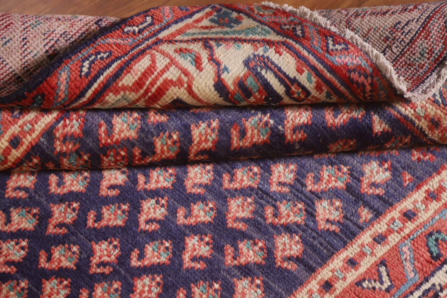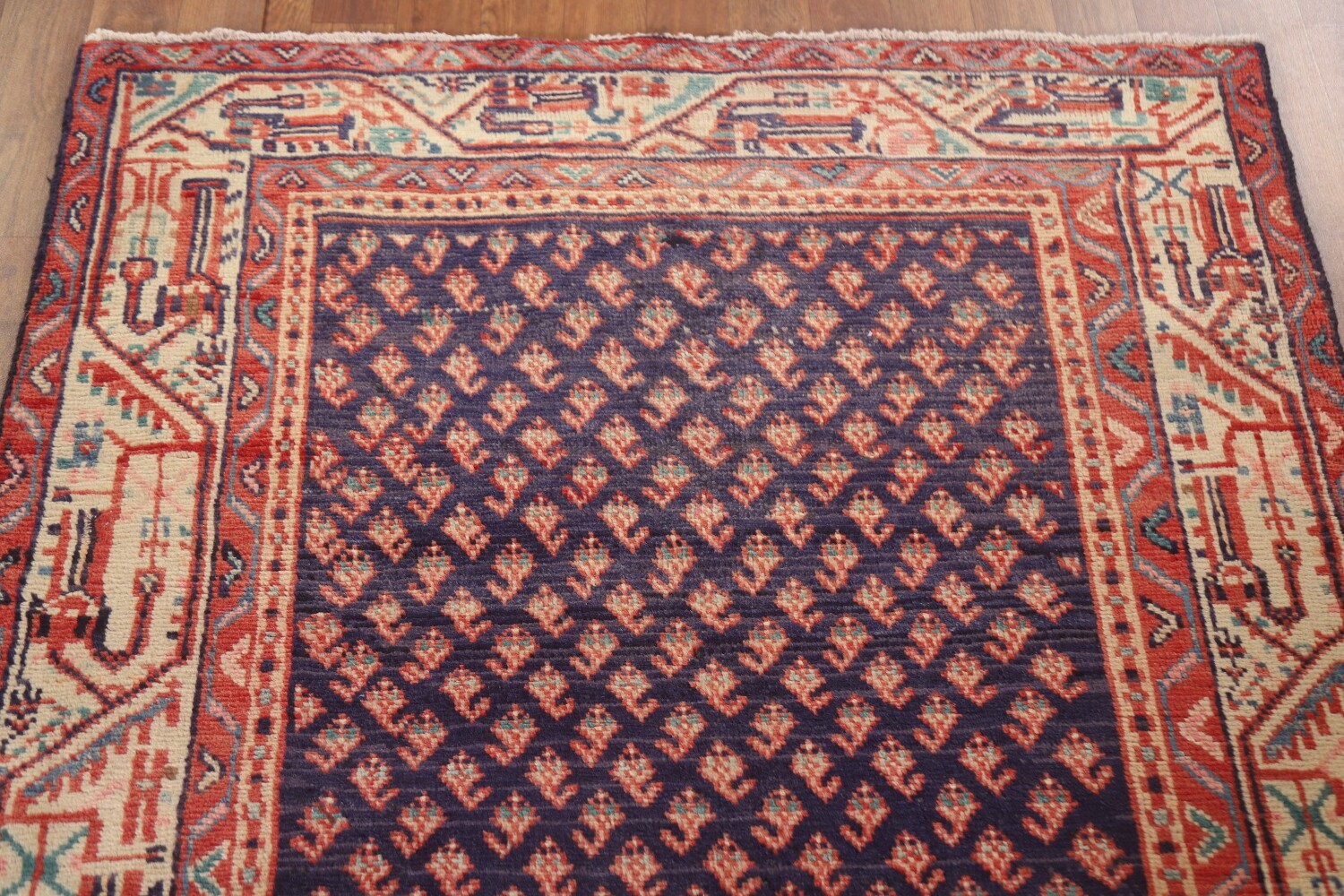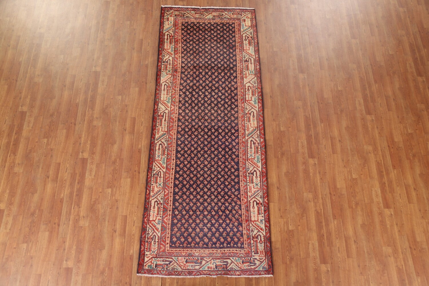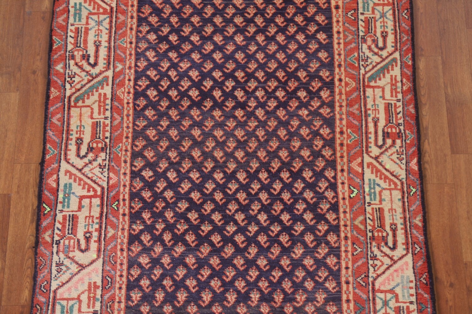 A Beautiful Genuine Persia ( Persia ) Botemir rug is Hand Knotted by skillful weavers in Persia ( Persia ) with 100% Wool Material. This rug is in Very Good (Abrash) condition. dimensions are 9' 10'' X 3' 8'' in foot and 300 X 112 in centimeter. the primary color is Navy Blue & Blues.