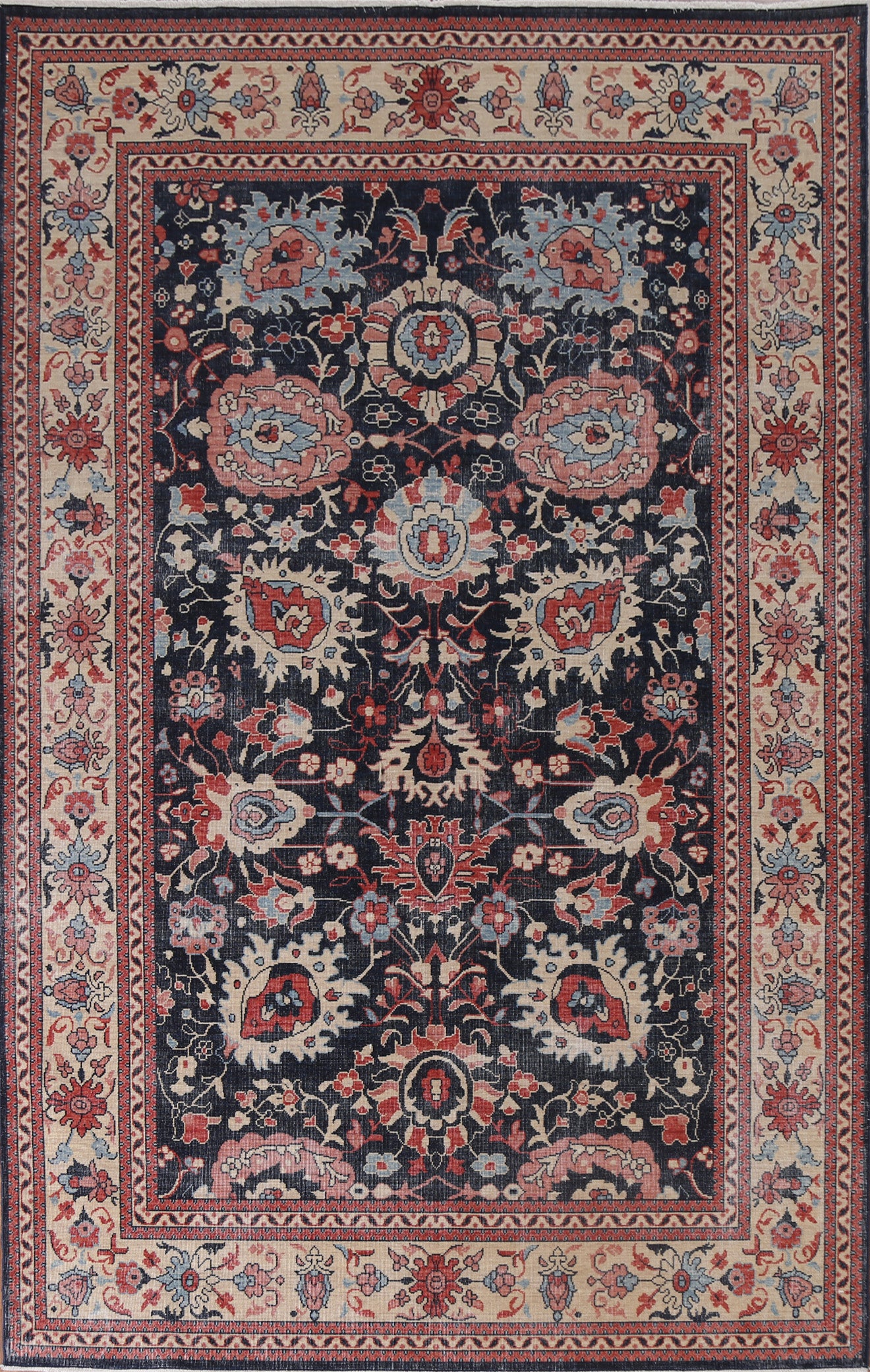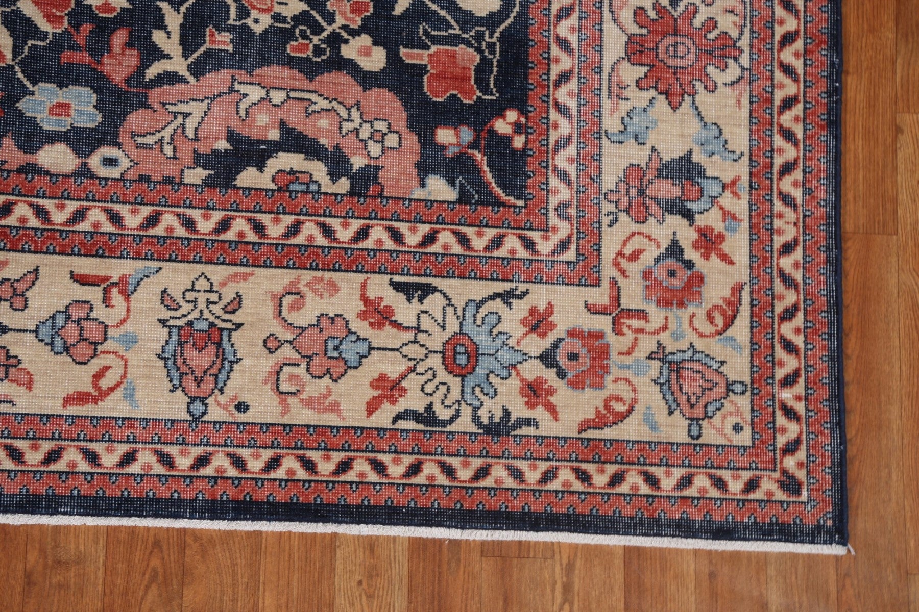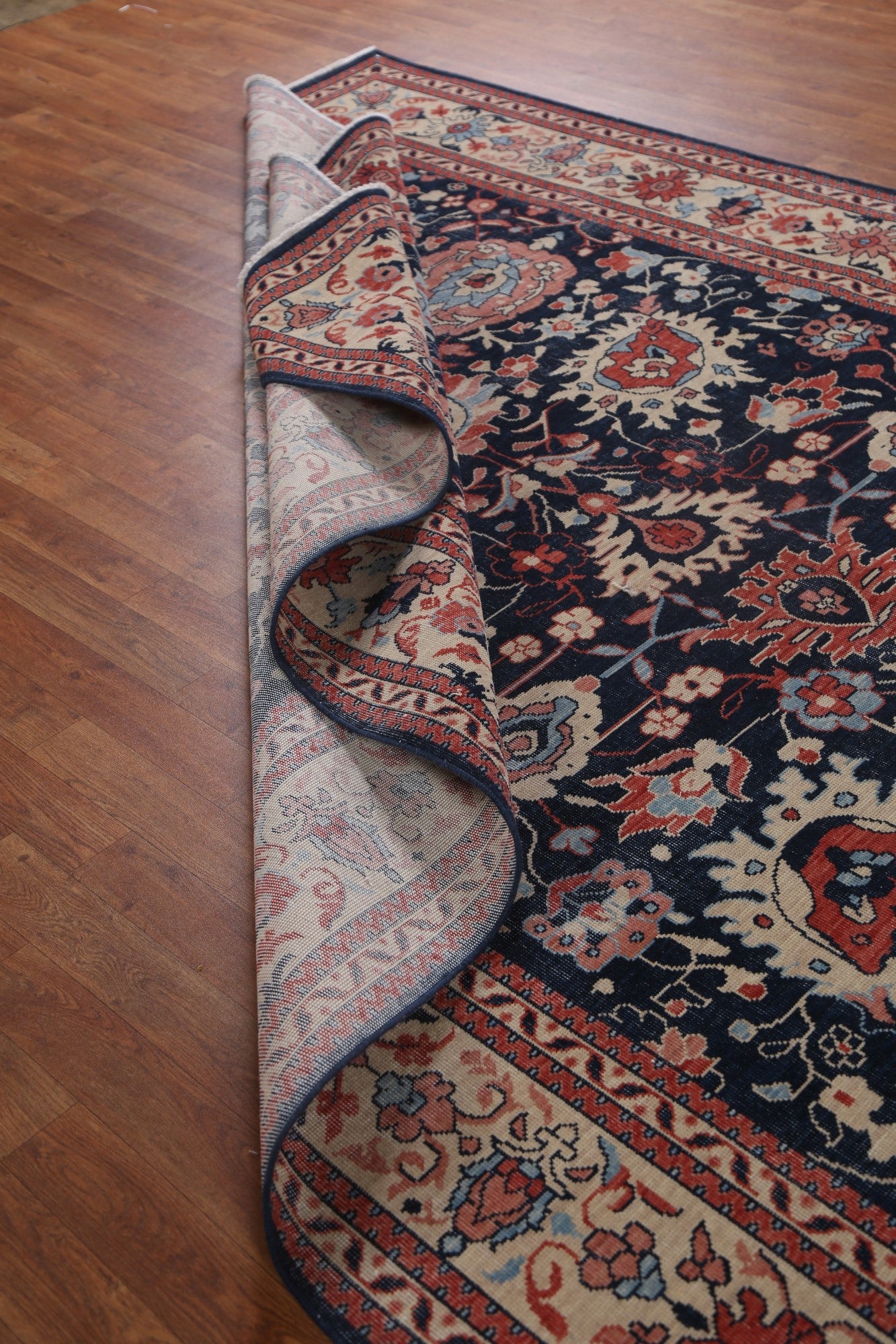 Navy Blue Floral Heriz Serapi Turkish Area Rug 7x10