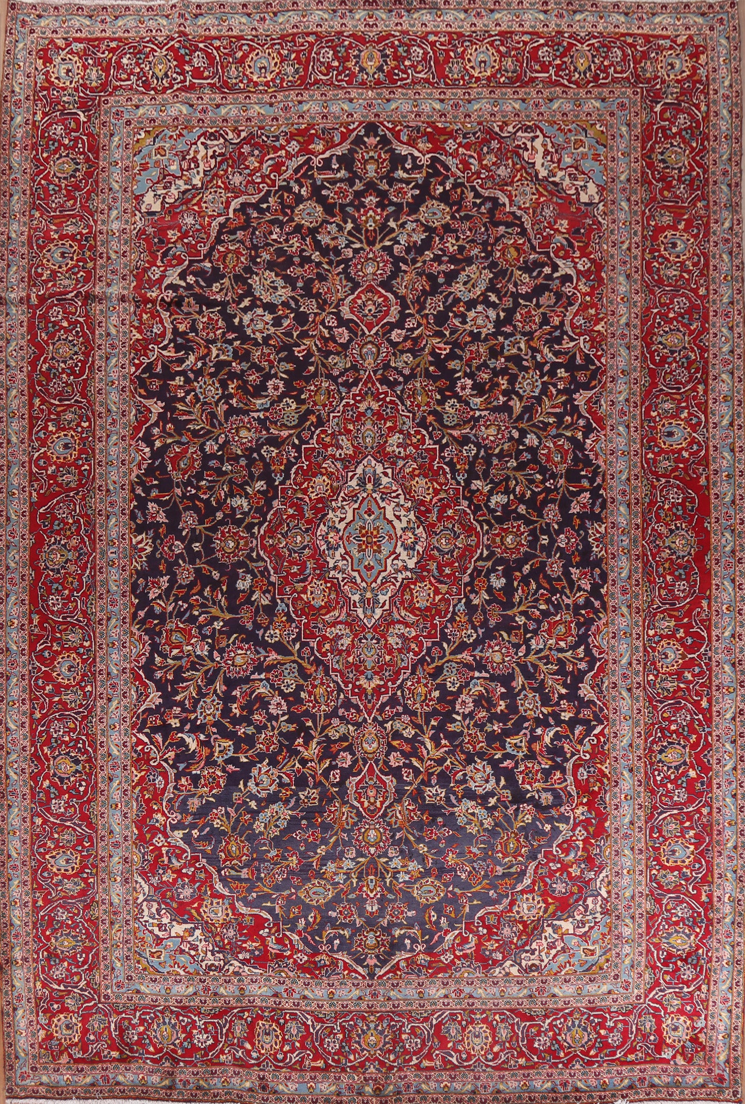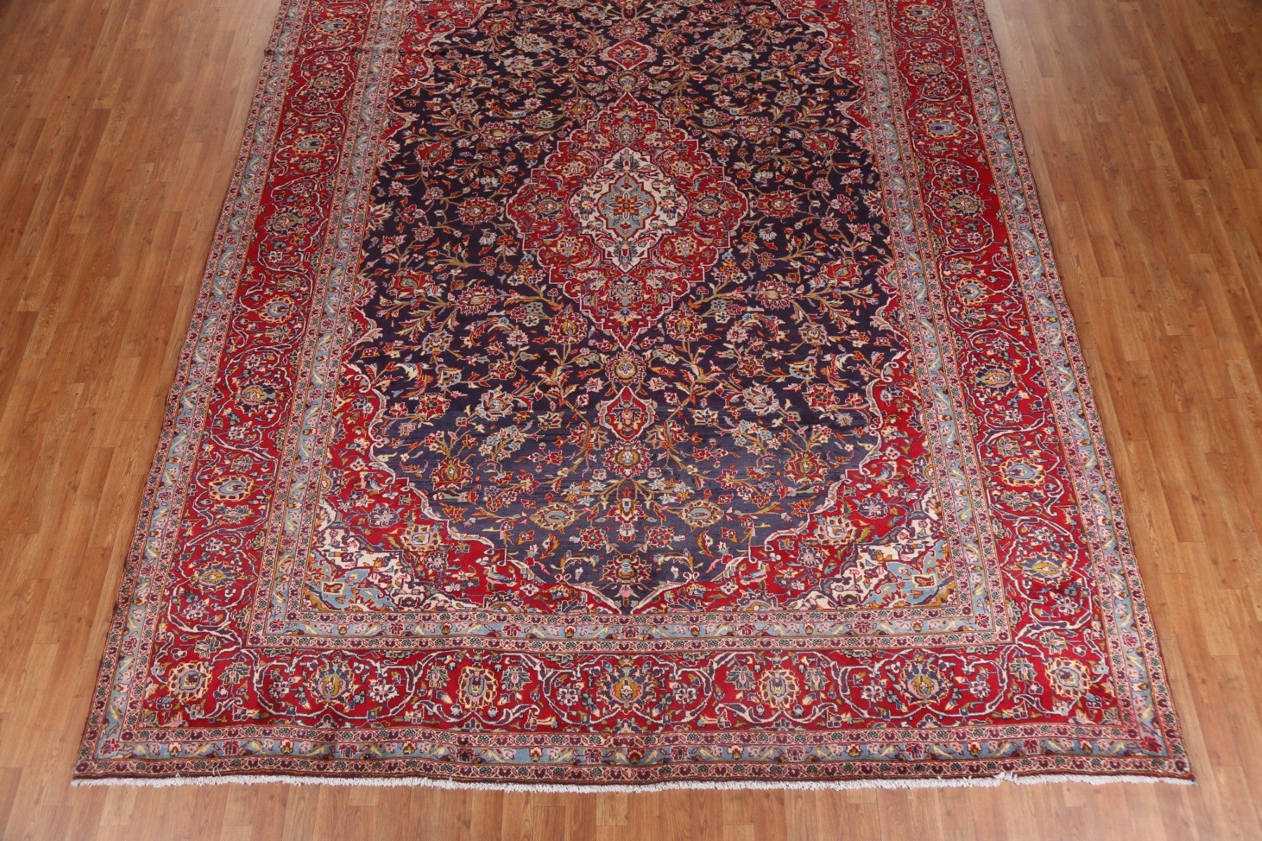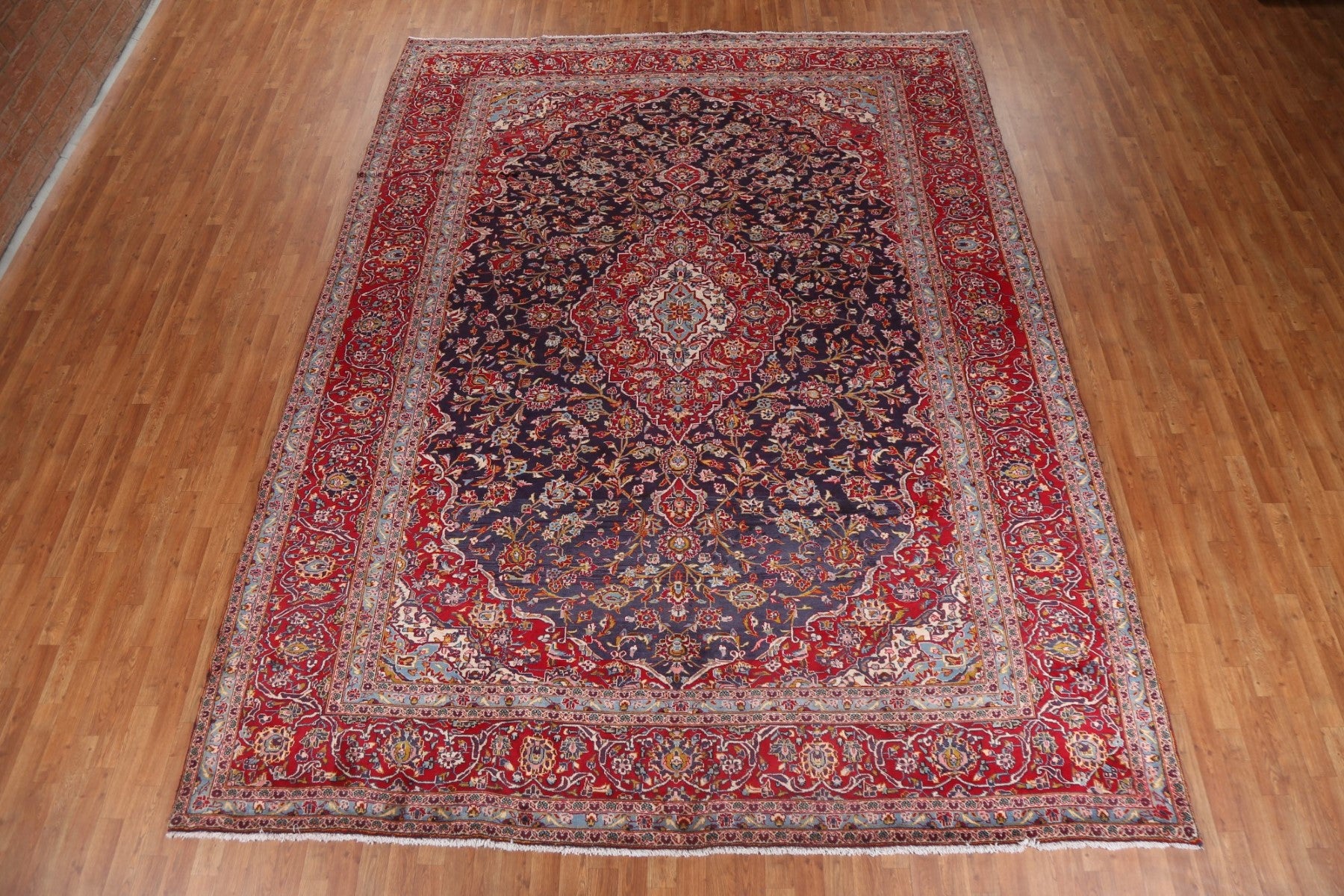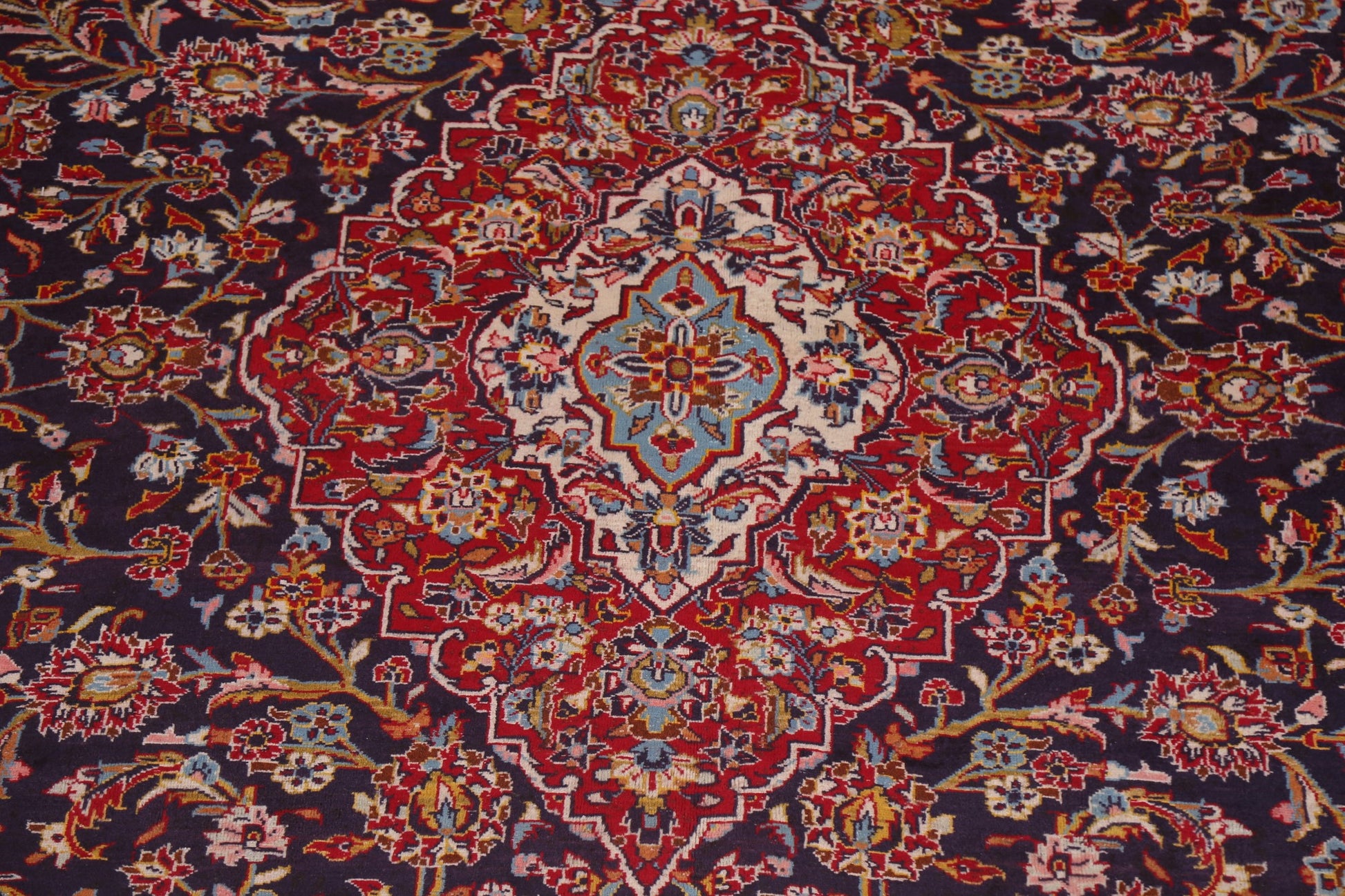Navy Blue Floral Kashan Persian Area Rug 10x13