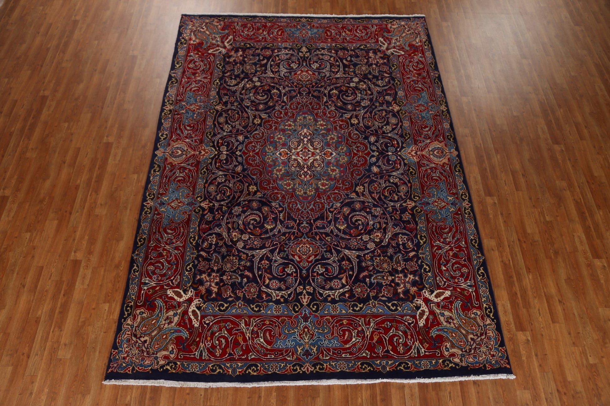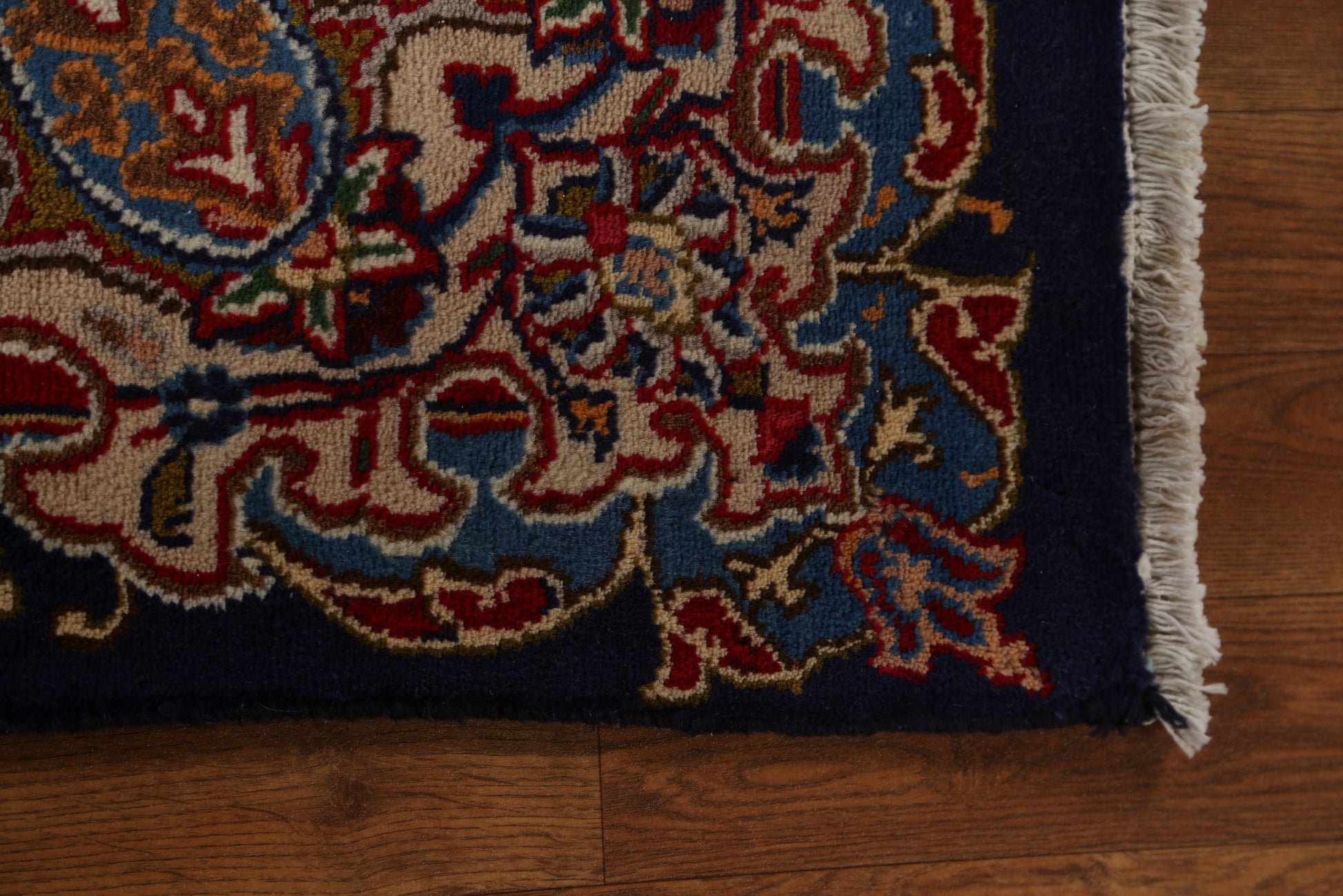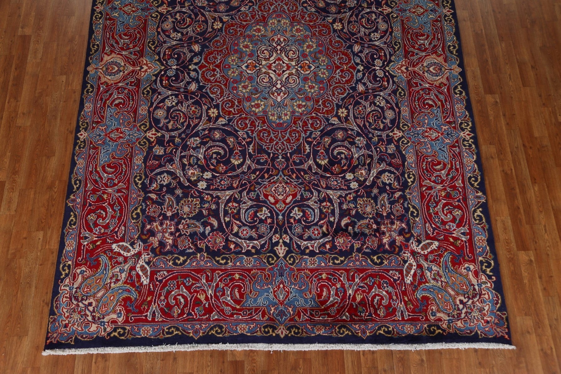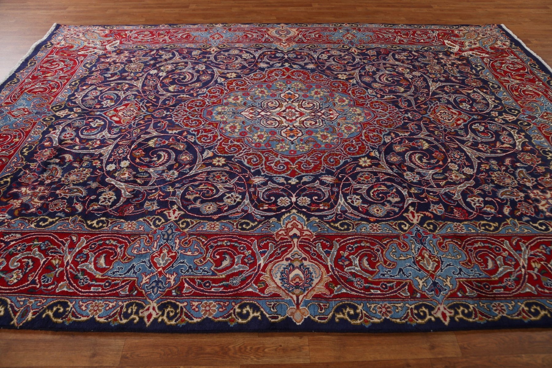 A Beautiful Genuine Persia ( Persia ) Kashmar rug is Hand Knotted by skillful weavers in Persia ( Persia ) with 100% Wool Material. This rug is in Very Good condition. dimensions are 10' 11'' X 7' 10'' in foot and 333 X 239 in centimeter. the primary color is Navy Blue & Blues.