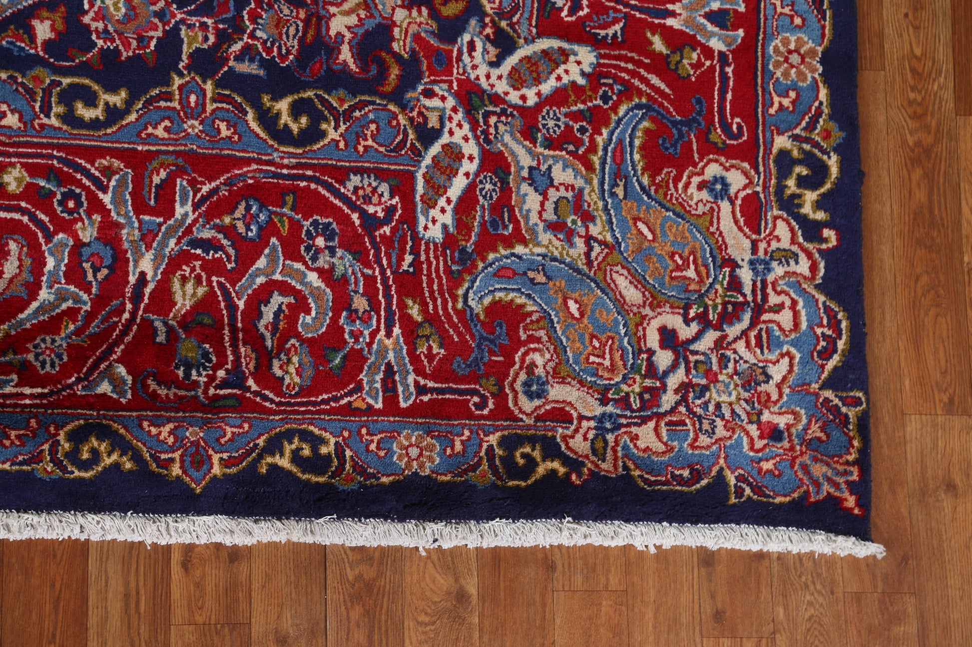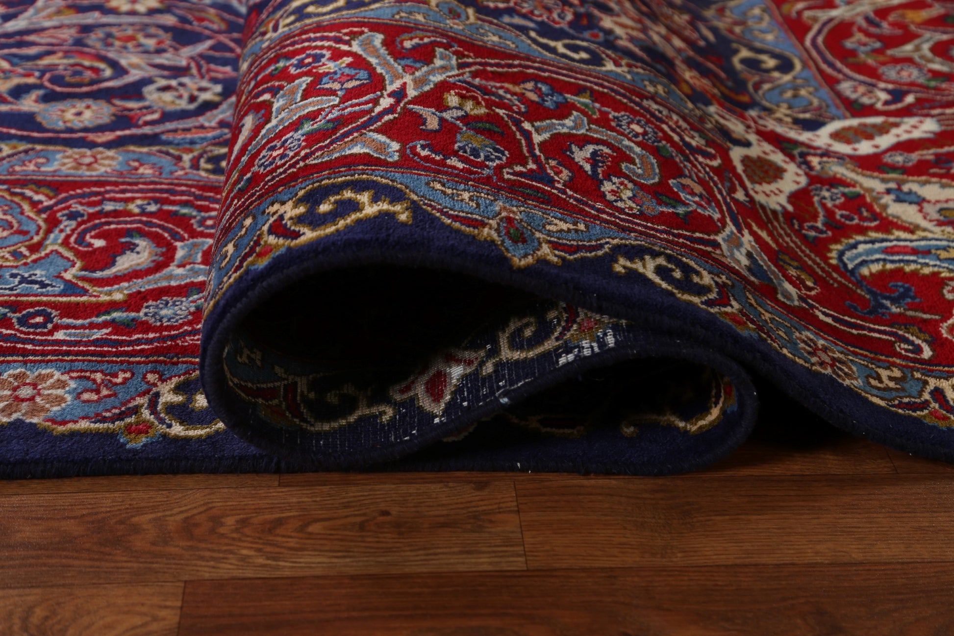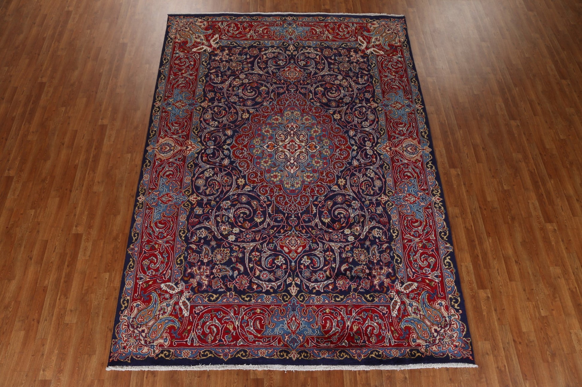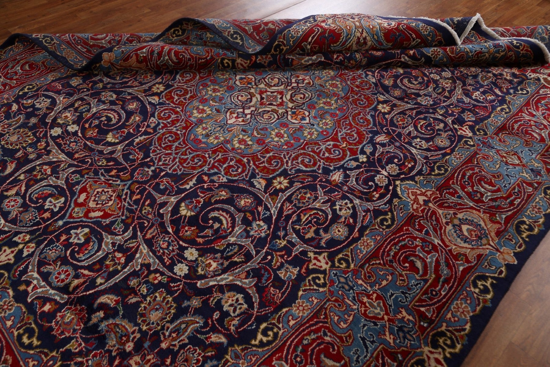 A Beautiful Genuine Persia ( Persia ) Kashmar rug is Hand Knotted by skillful weavers in Persia ( Persia ) with 100% Wool Material. This rug is in Very Good condition. dimensions are 10' 11'' X 7' 10'' in foot and 333 X 239 in centimeter. the primary color is Navy Blue & Blues.