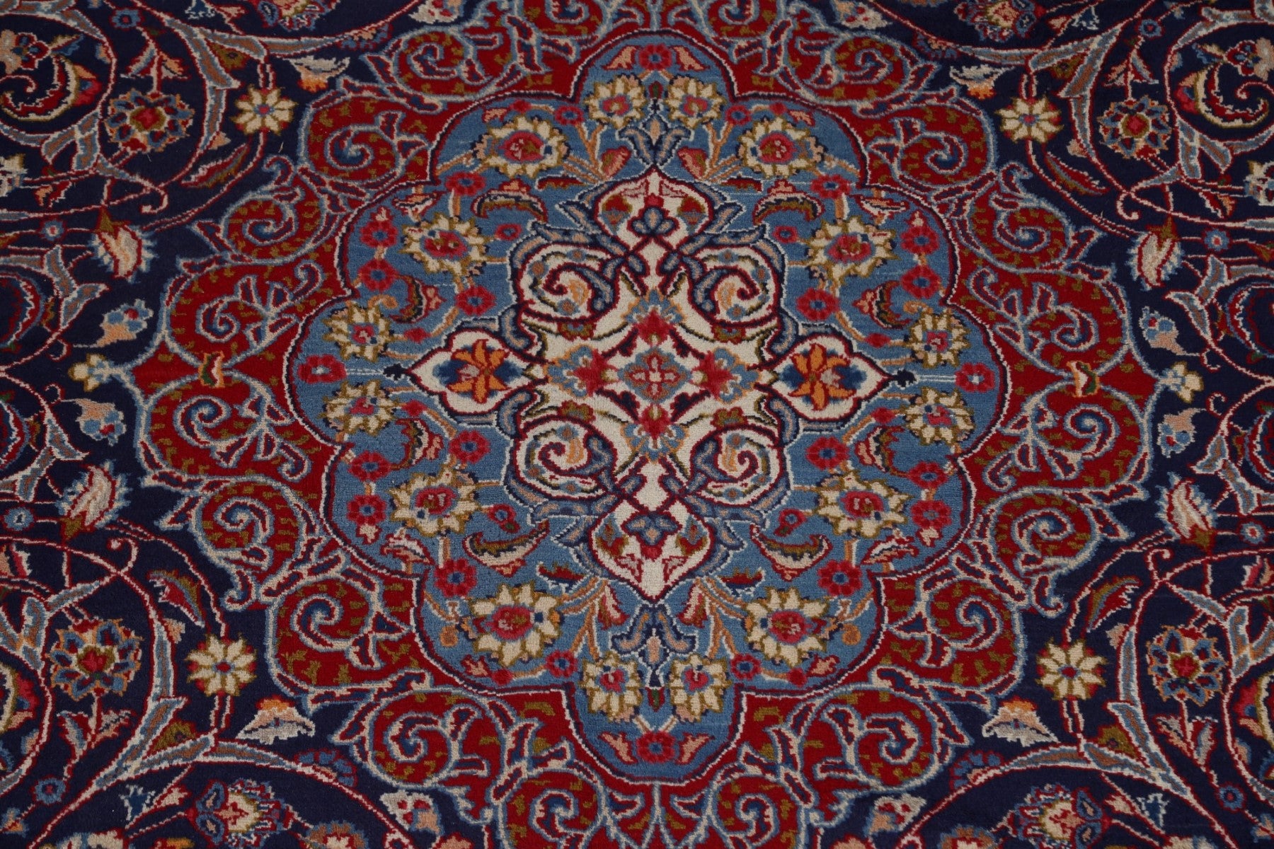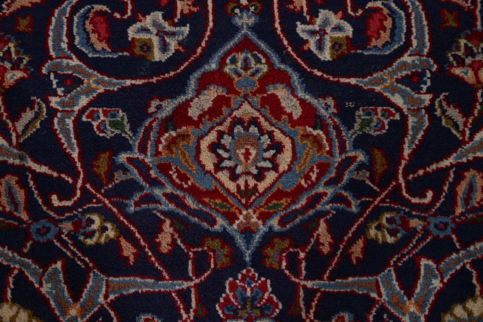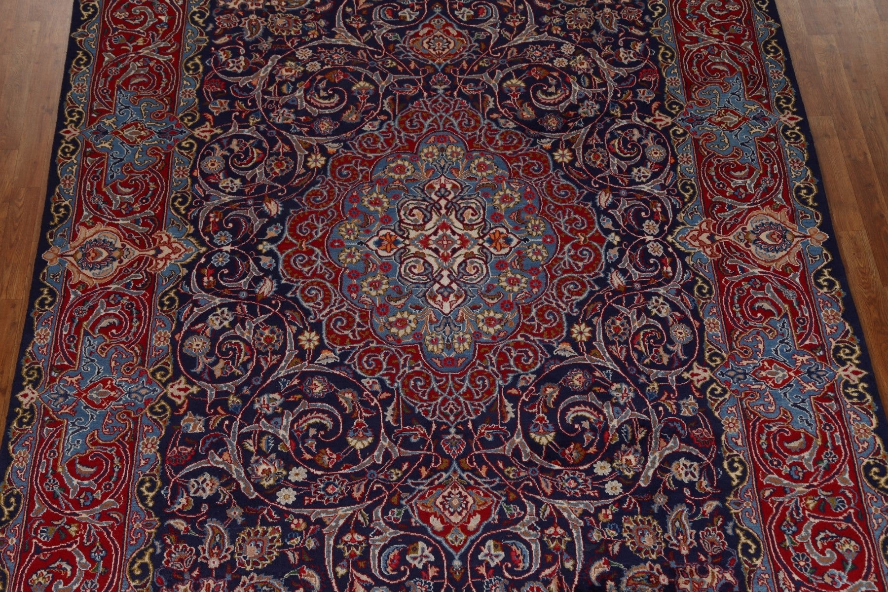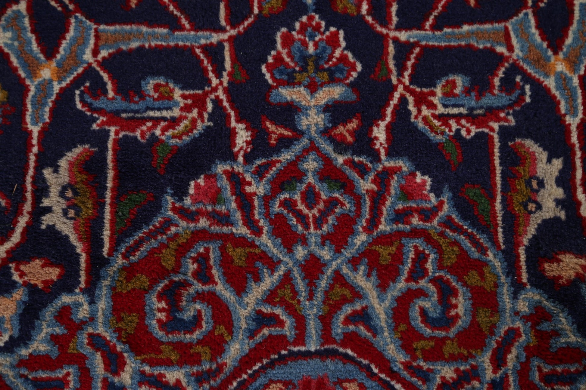 A Beautiful Genuine Persia ( Persia ) Kashmar rug is Hand Knotted by skillful weavers in Persia ( Persia ) with 100% Wool Material. This rug is in Very Good condition. dimensions are 10' 11'' X 7' 10'' in foot and 333 X 239 in centimeter. the primary color is Navy Blue & Blues.
