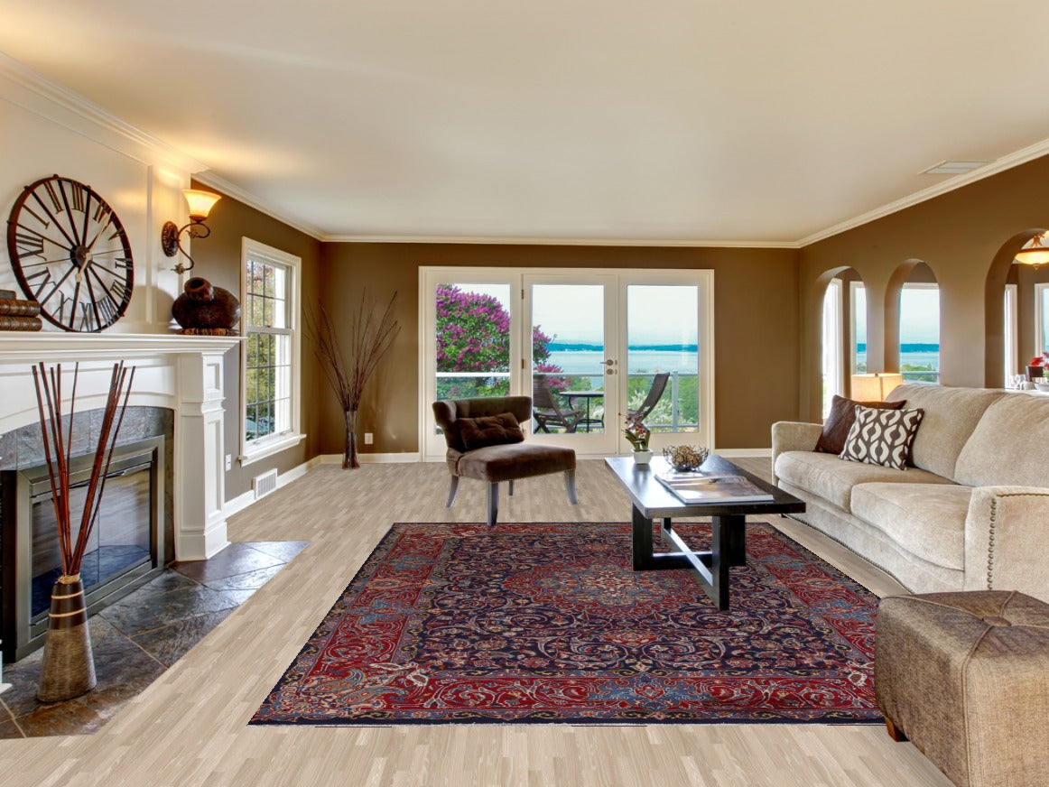 Navy Blue Floral Kashmar Persian Area Rug 8x11