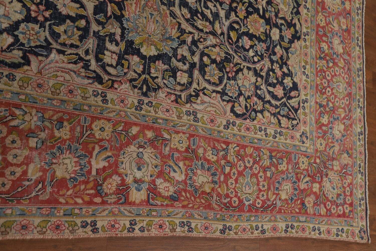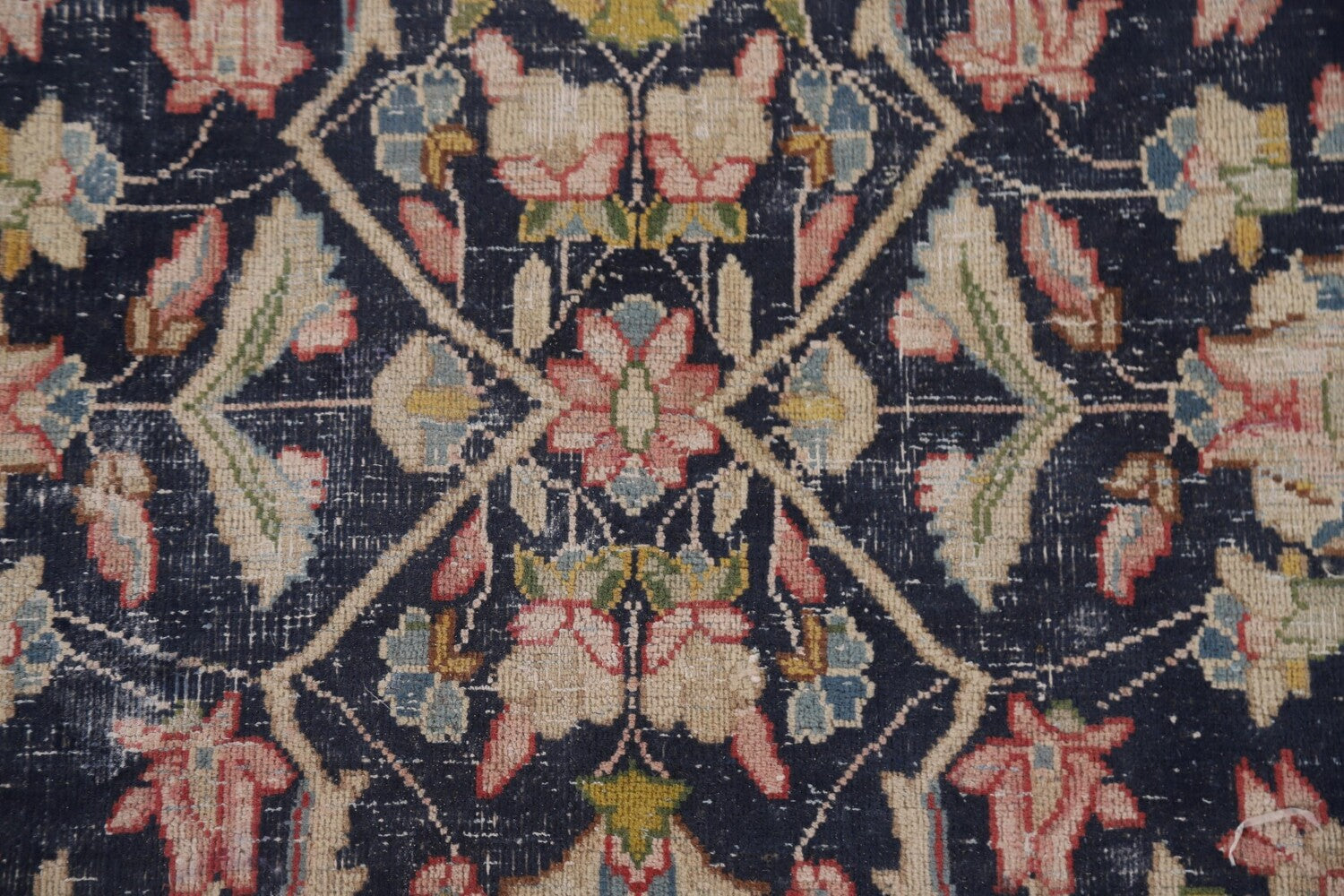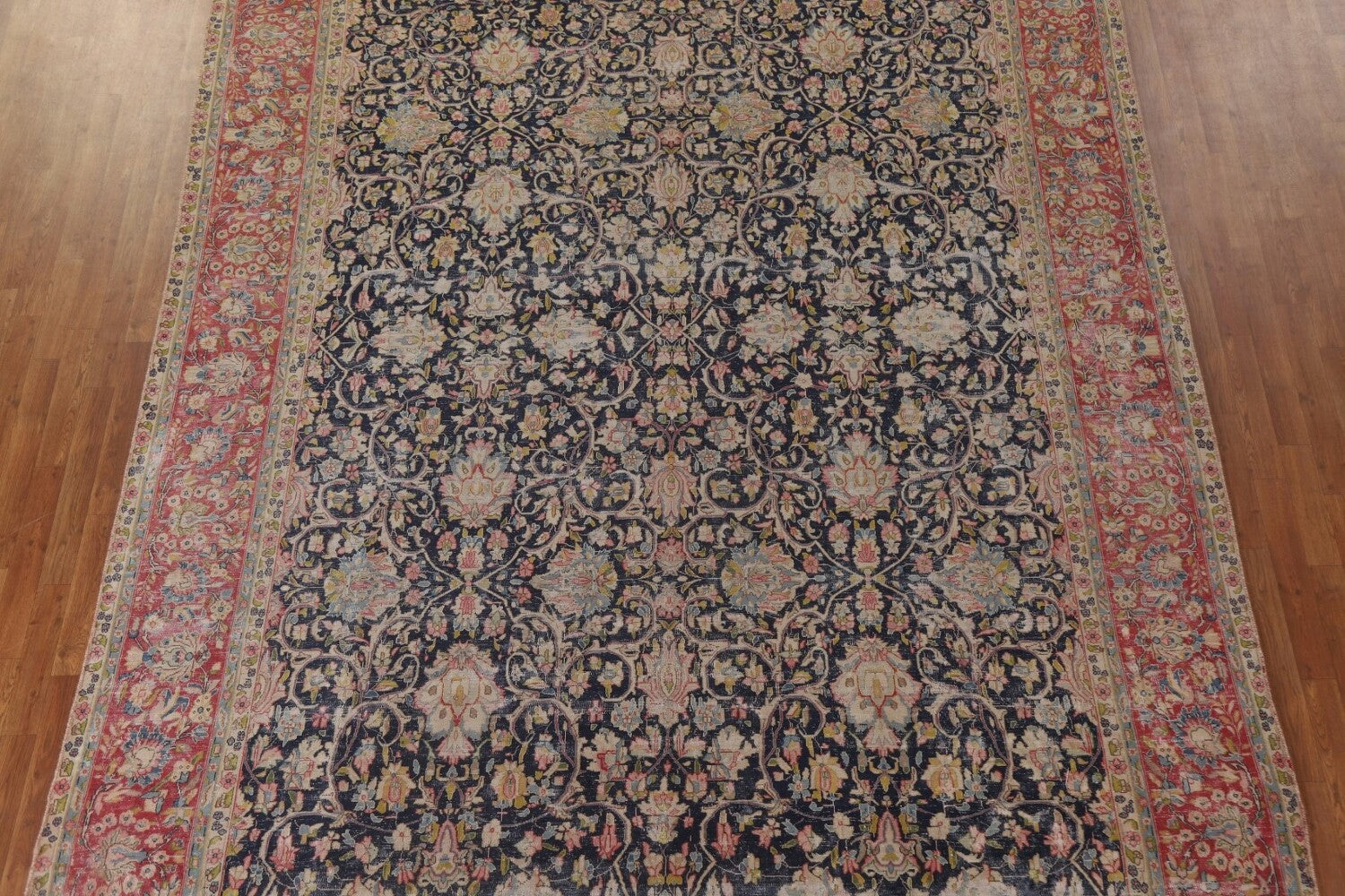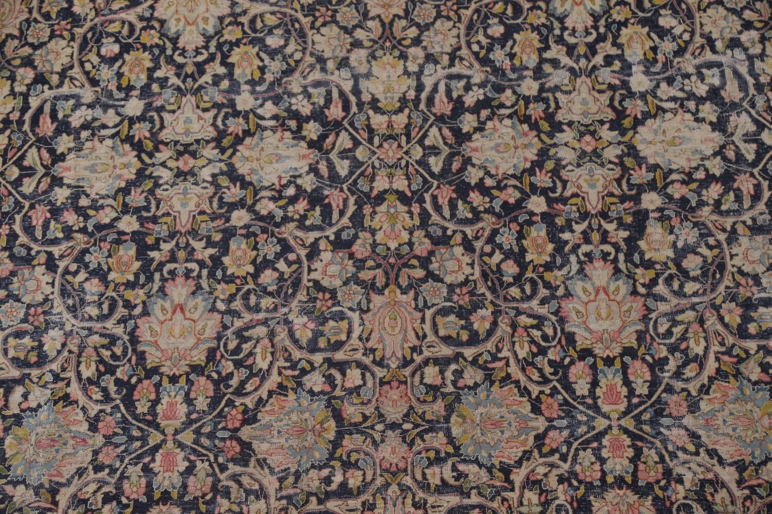 Navy Blue Floral Kerman Persian Area Rug 10x13