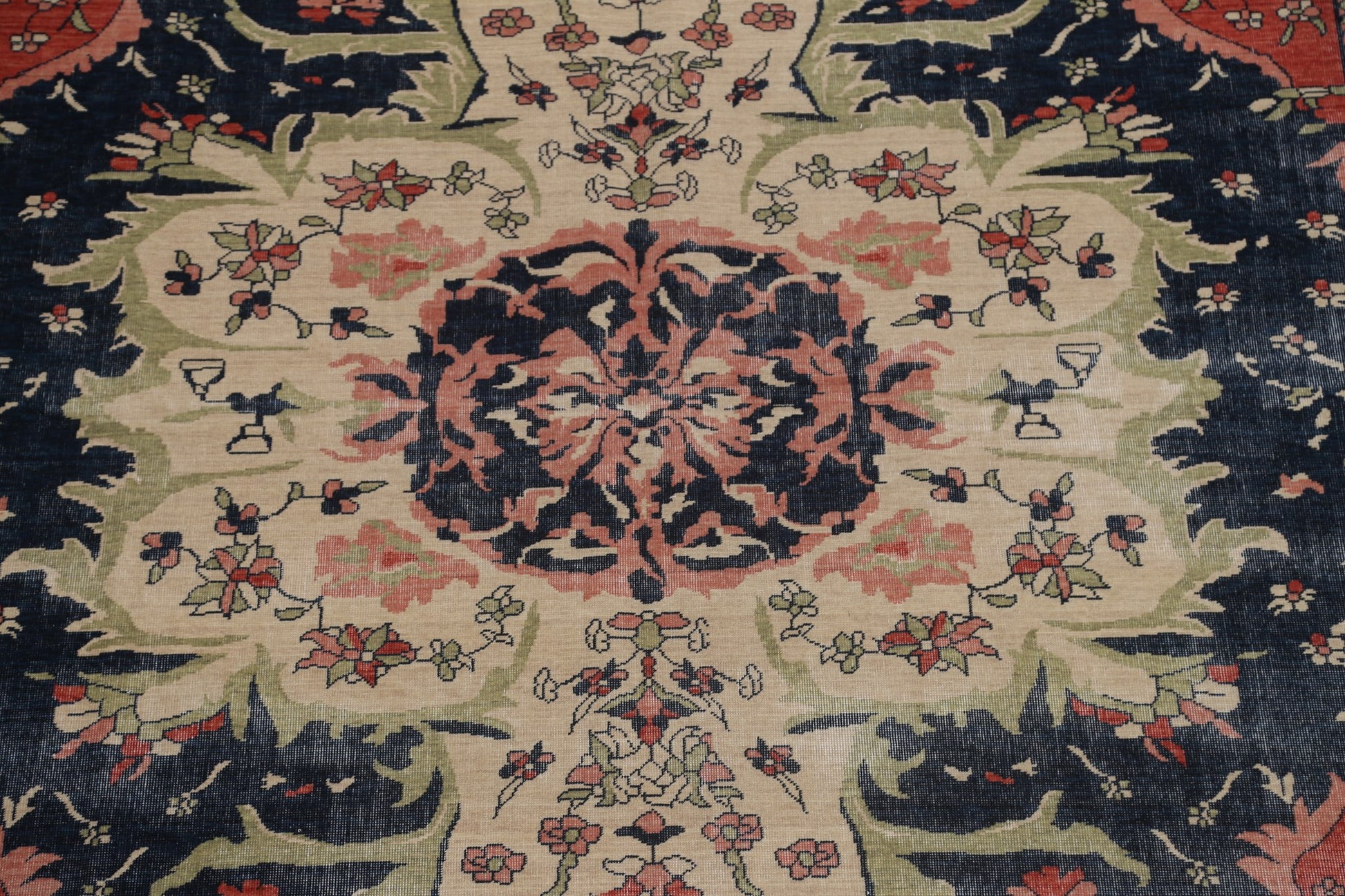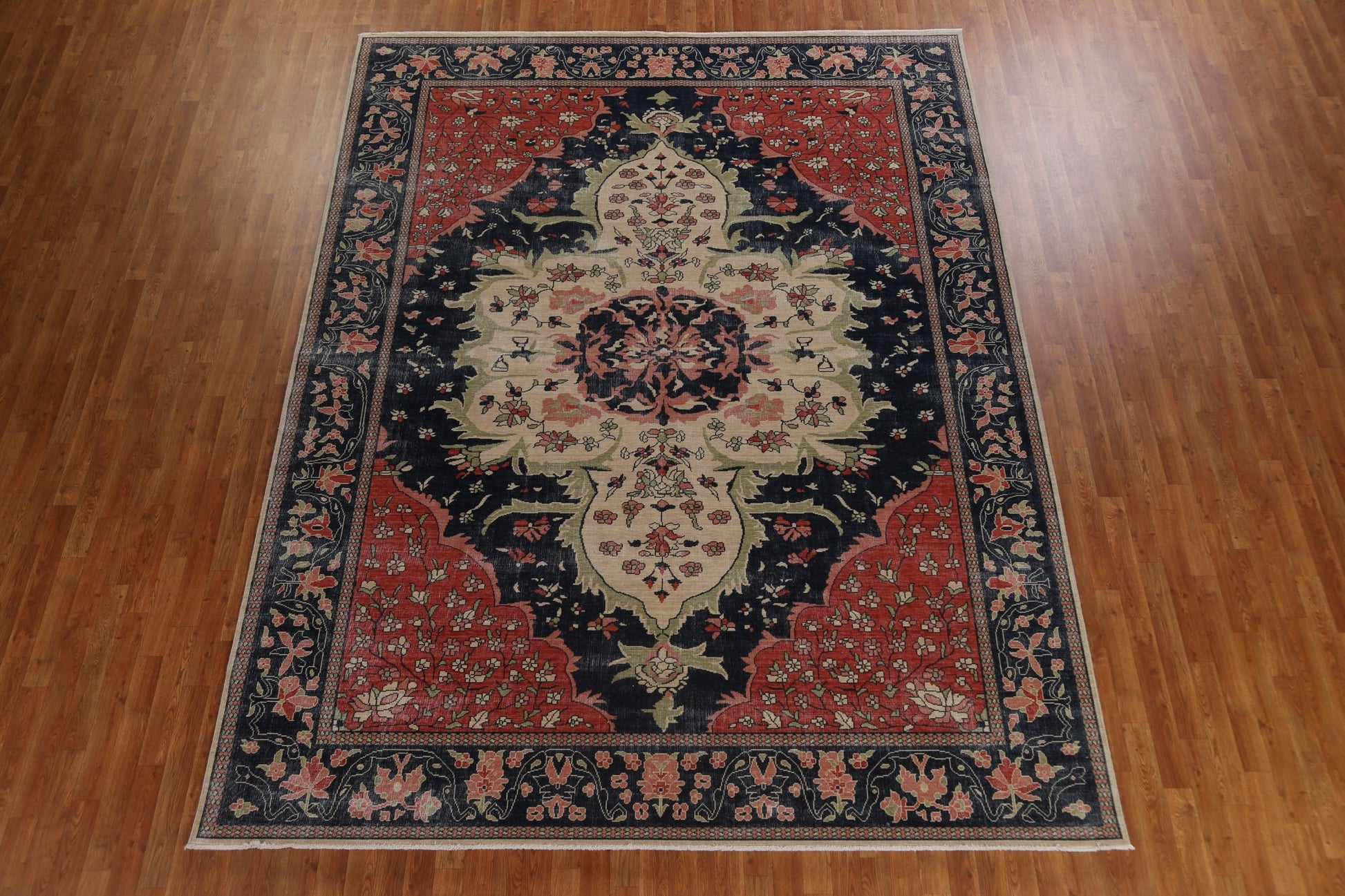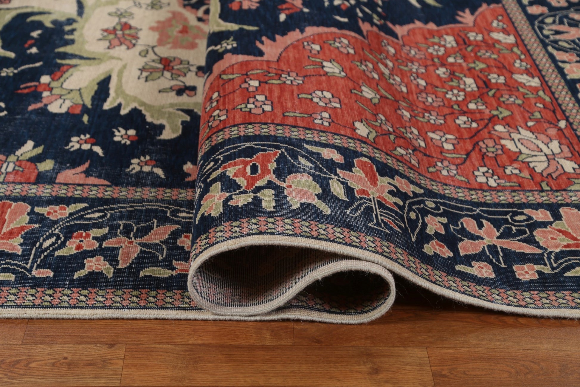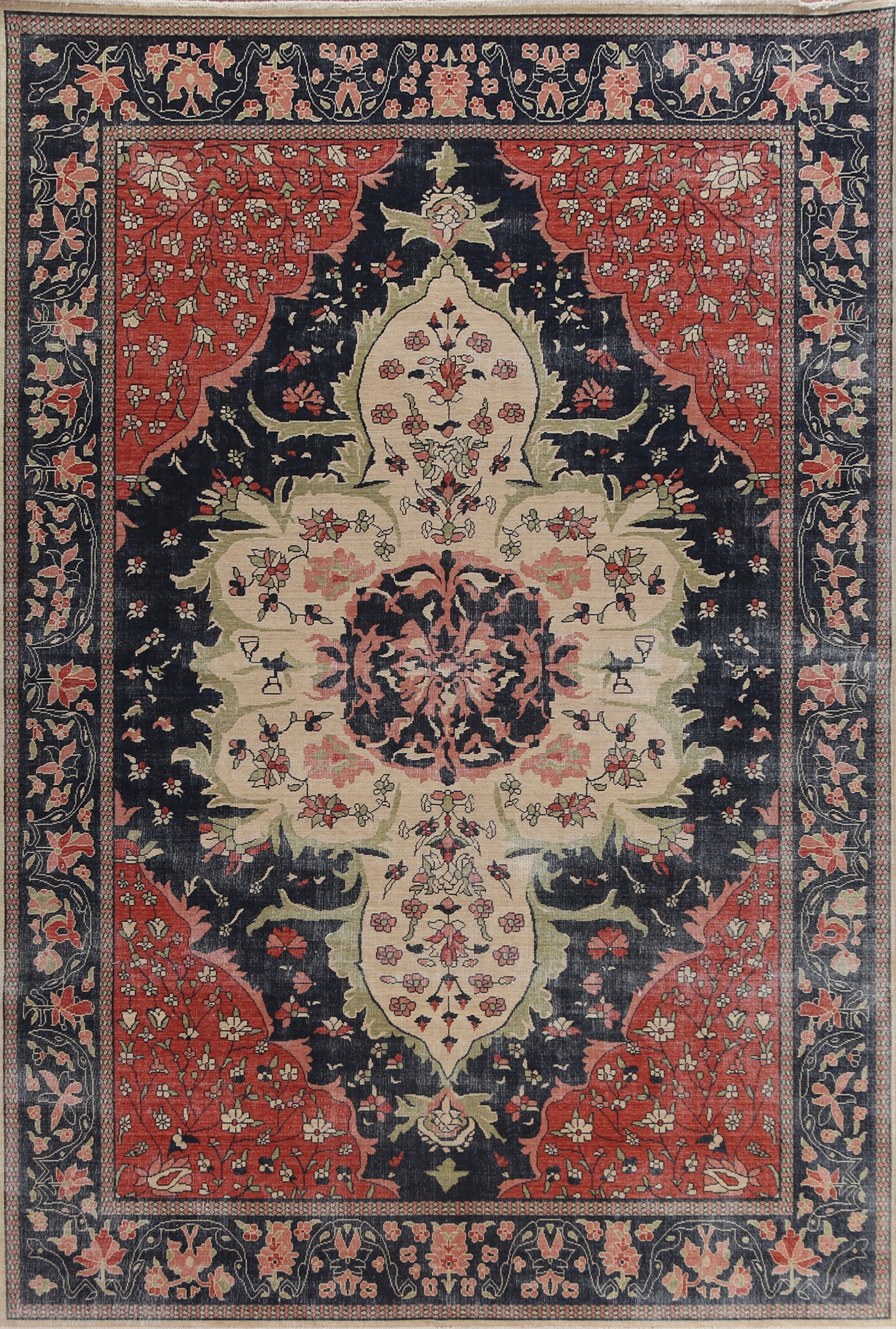 Navy Blue Floral Sarouk Farahan Turkish Area Rug 9x12