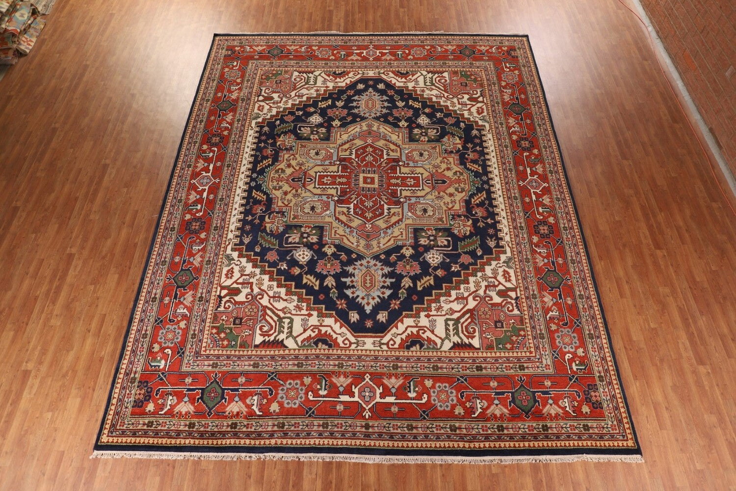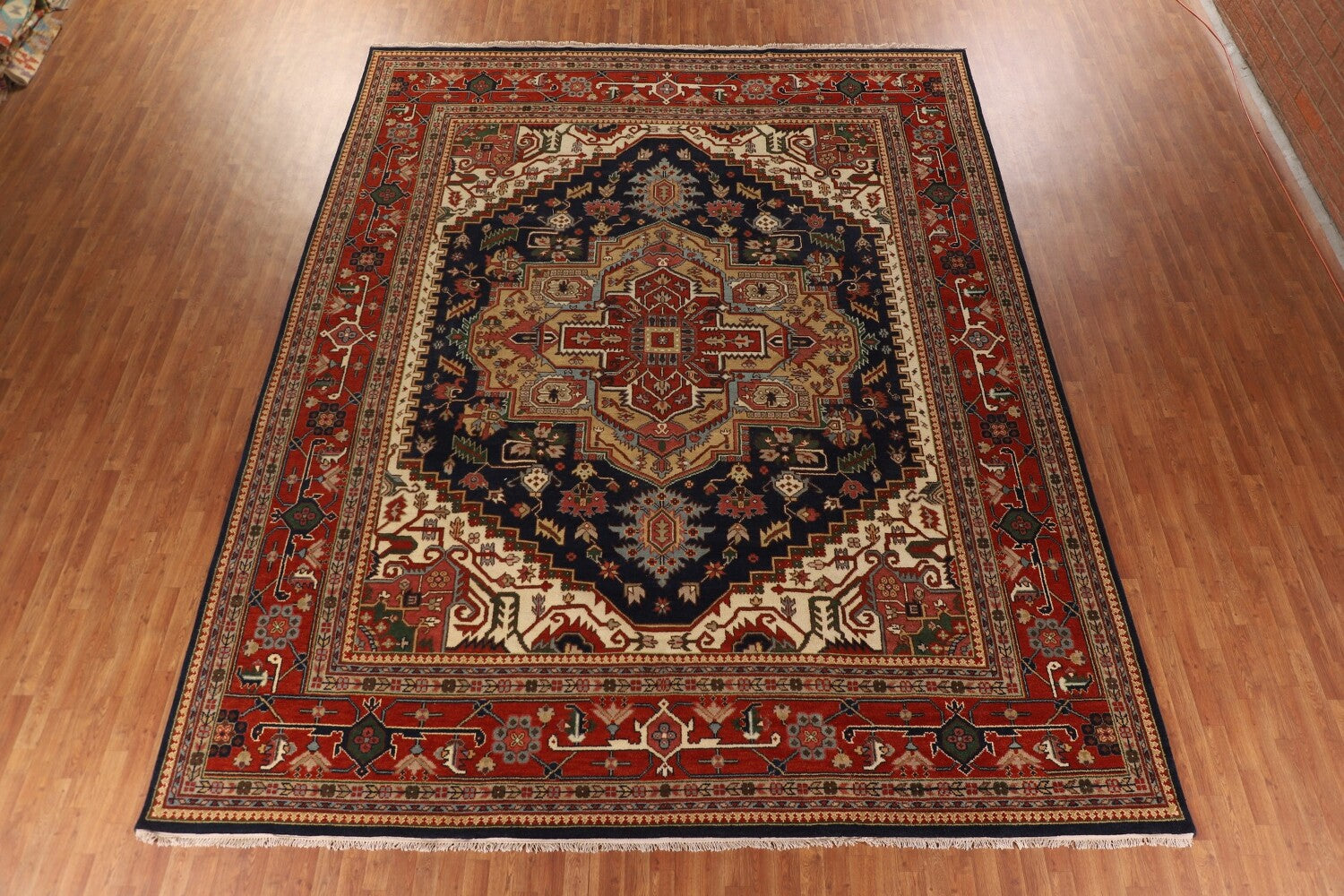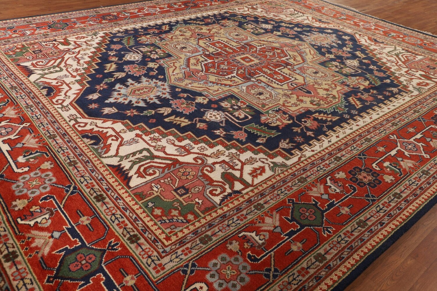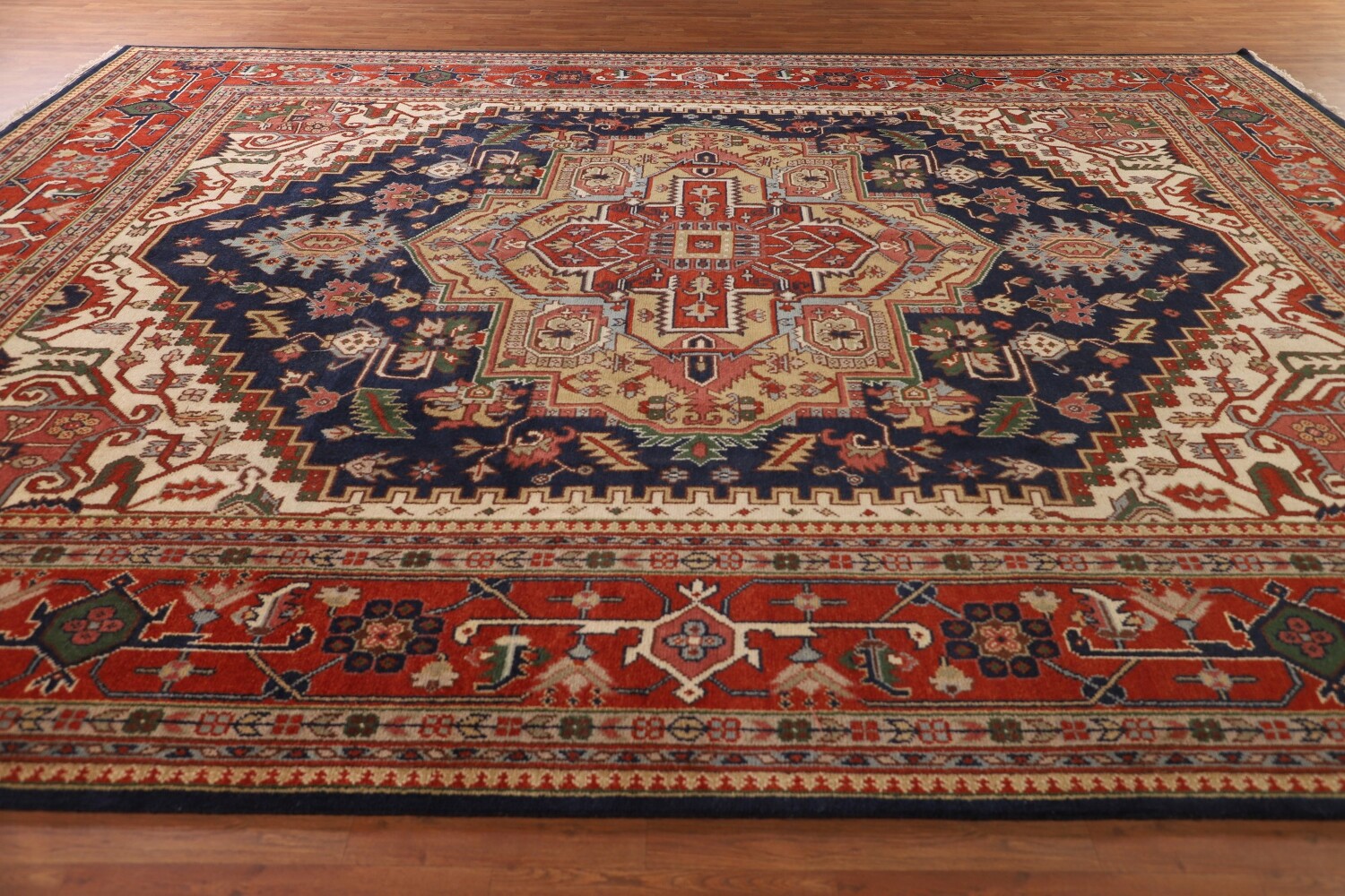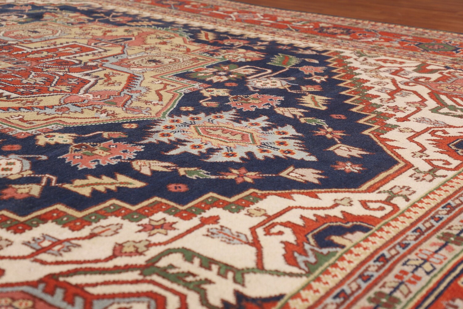 Navy Blue Geometric Heriz Serapi Oriental Large Rug 12x15