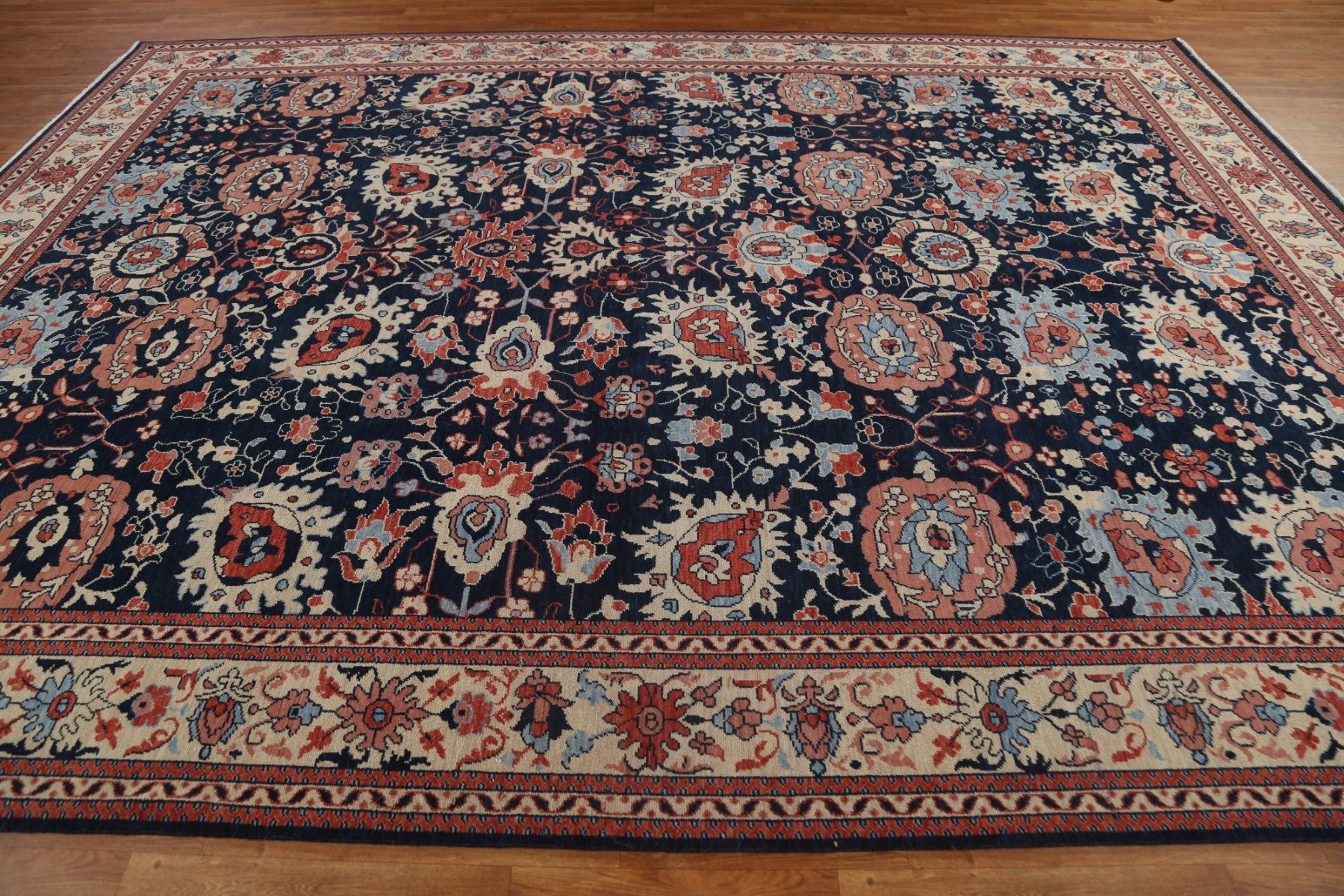 A Beautiful Genuine Turkey Sultanabad (Ziegler) rug is Hand Knotted by skillful weavers in Turkey with 100% Wool Material. This rug is in New, First Quality condition. dimensions are 13' 0'' X 9' 9'' in foot and 396 X 297 in centimeter. the primary color is Navy Blue & Blues.