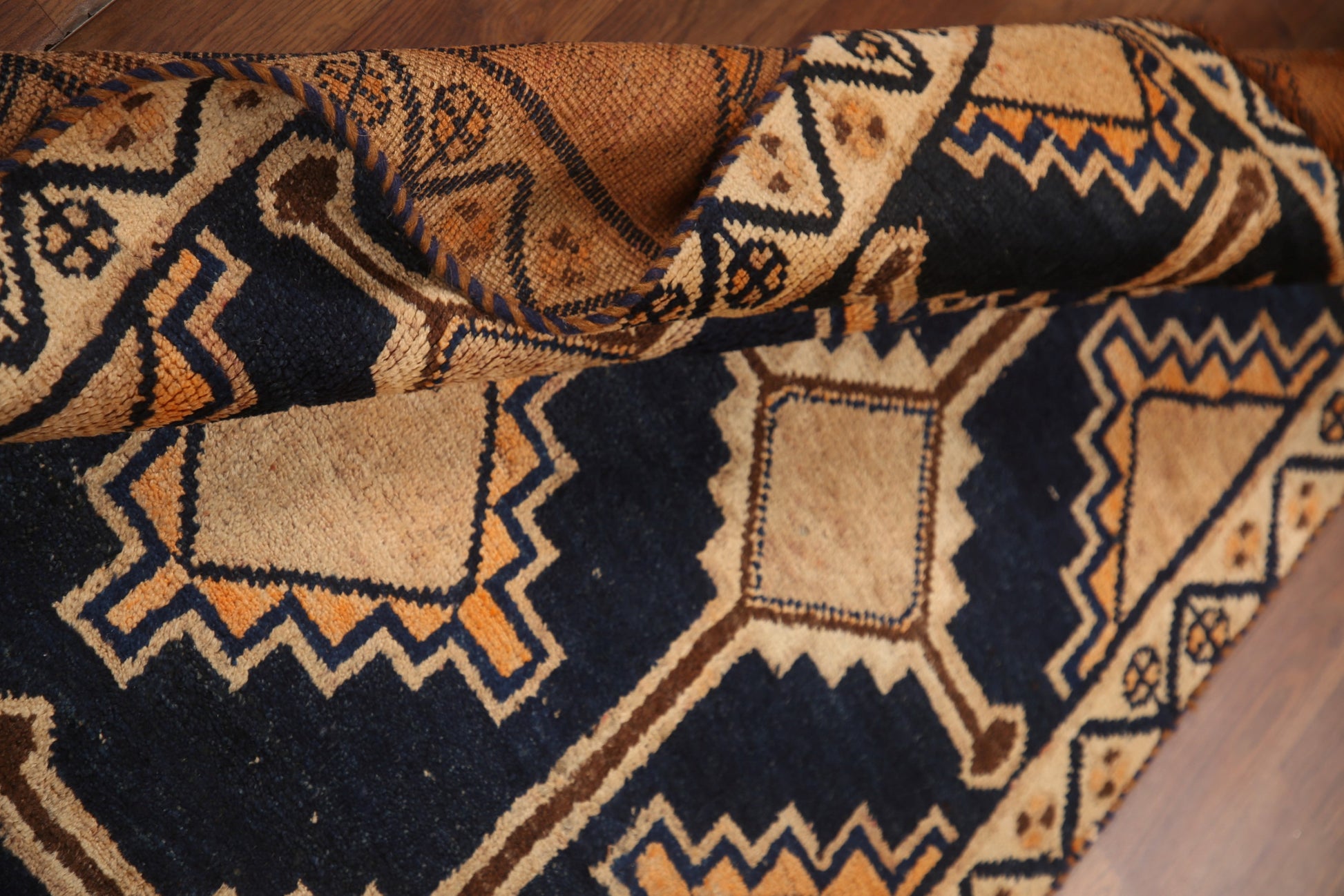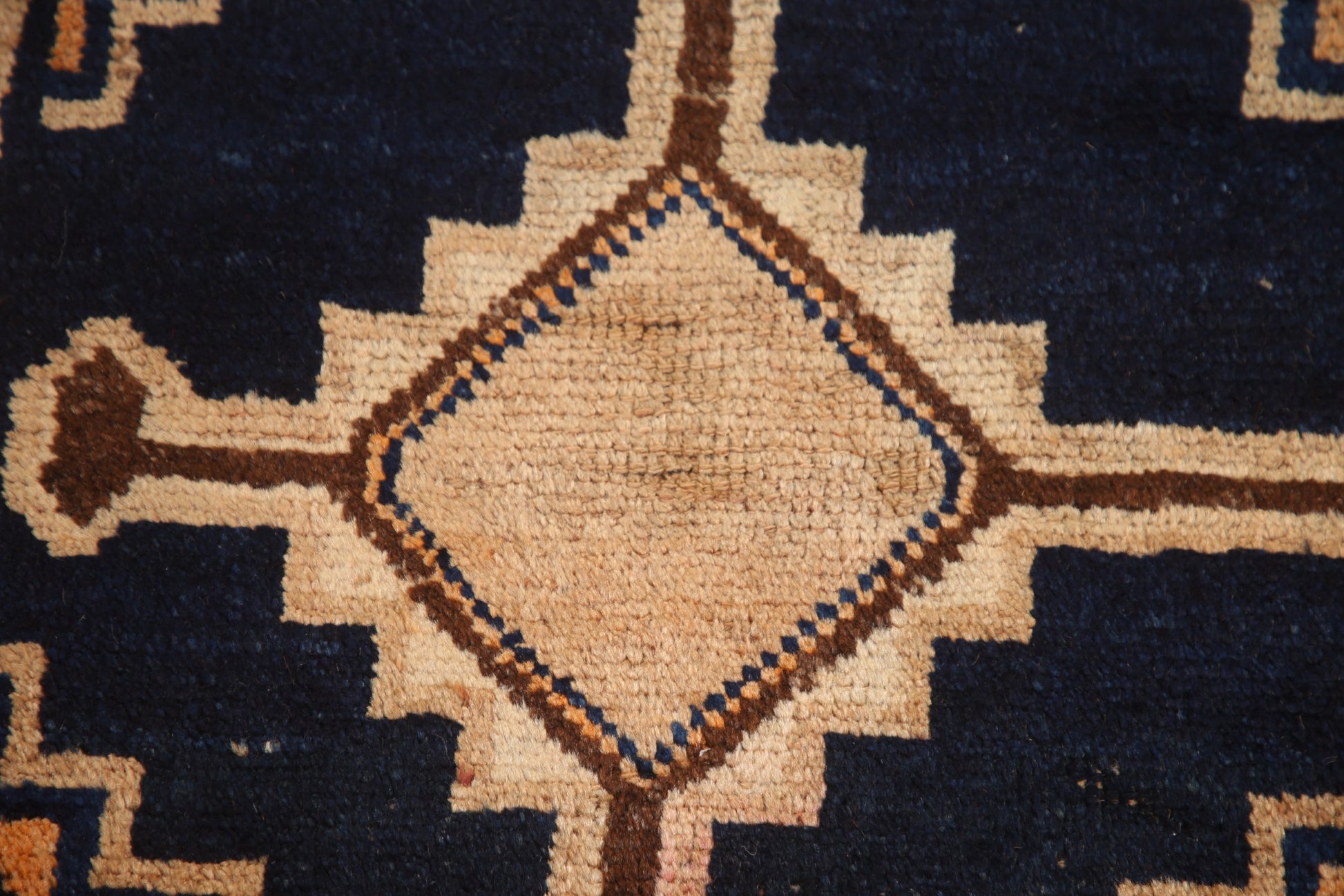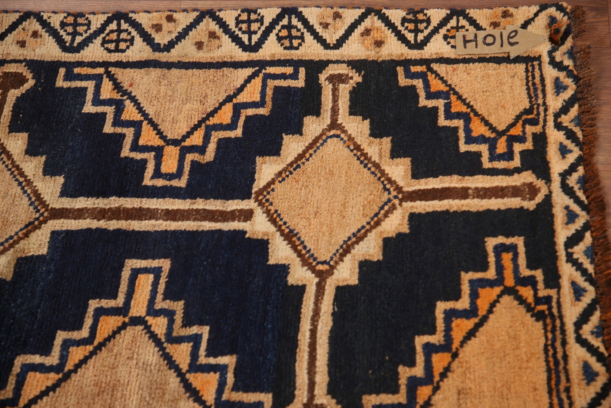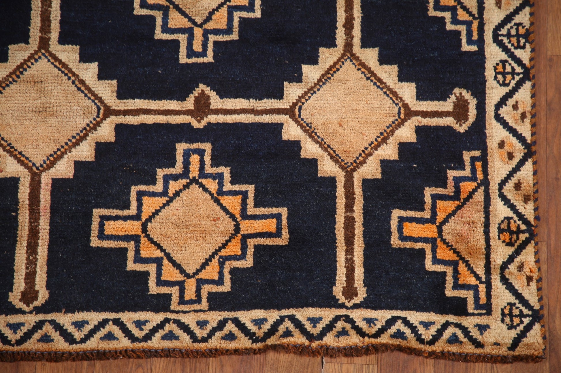 A Beautiful Genuine Persia ( Persia ) Lori rug is Hand Knotted by skillful weavers in Persia ( Persia ) with 100% Wool Material. This rug is in Very Good (Evenly Low Pile-Hole) condition. dimensions are 6' 10'' X 3' 5'' in foot and 208 X 104 in centimeter. the primary color is Navy Blue & Blues.