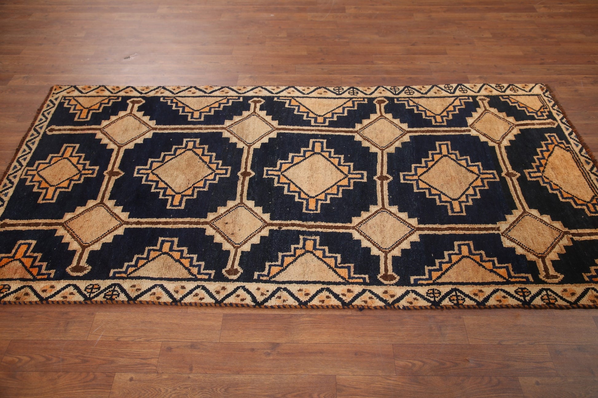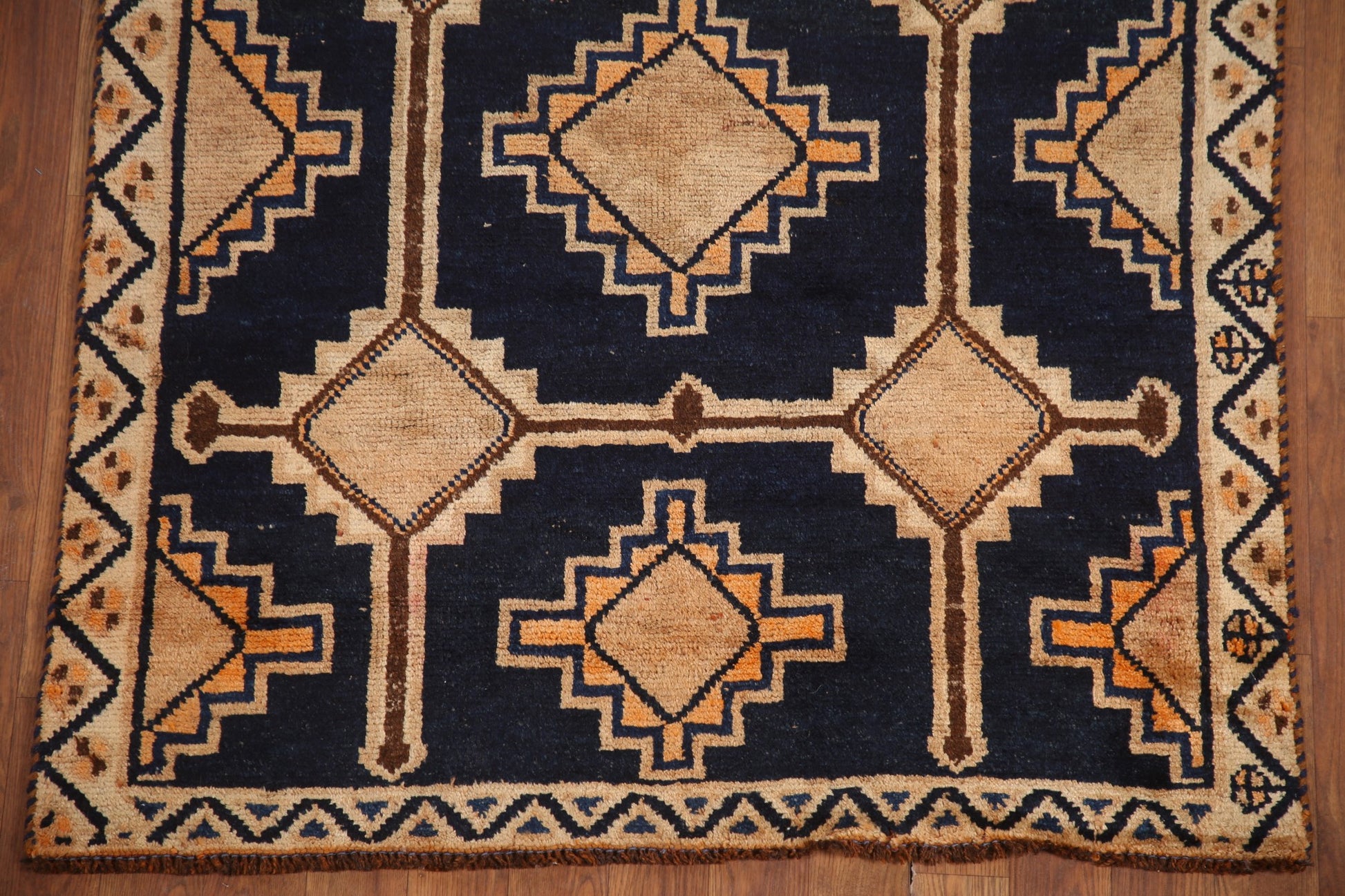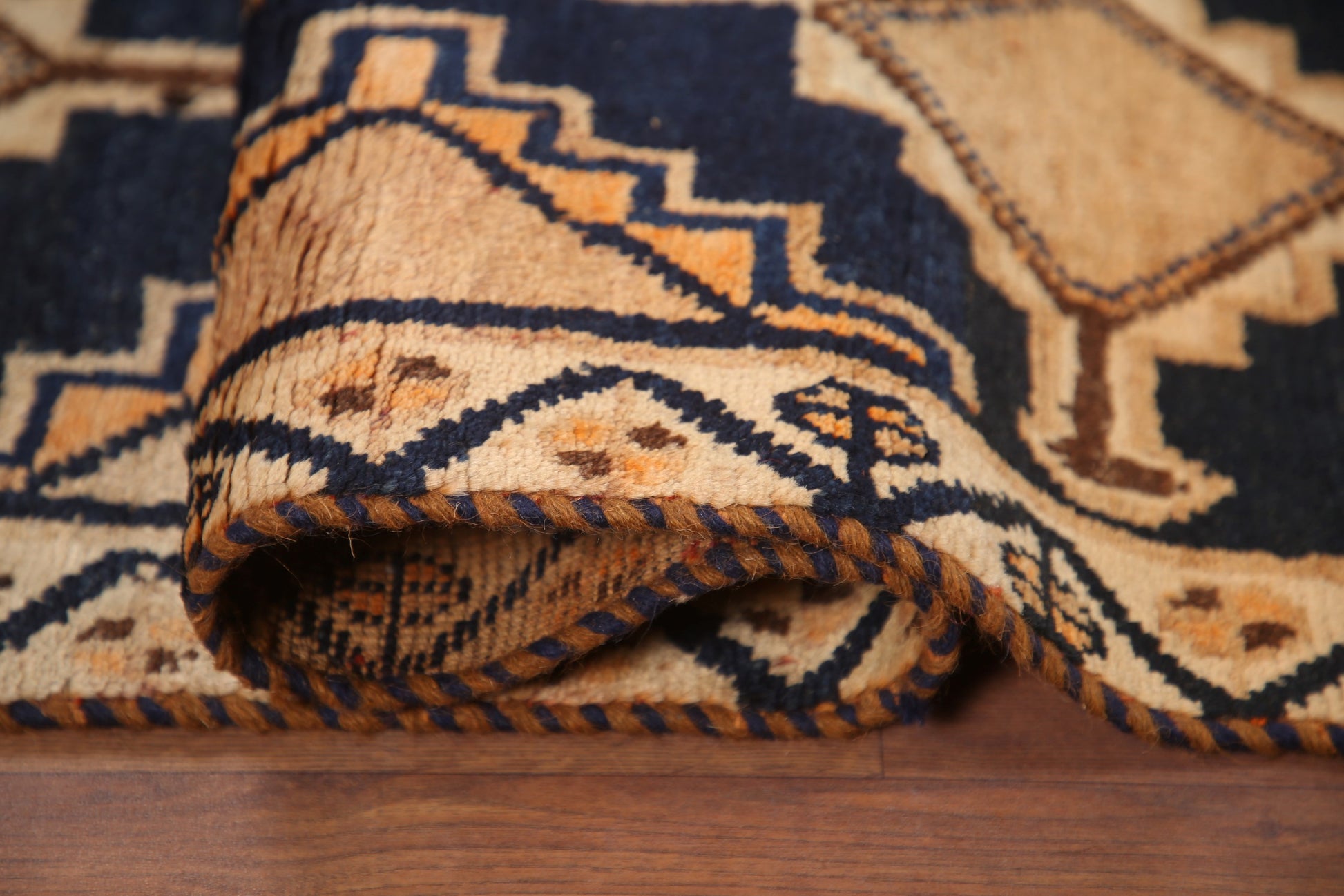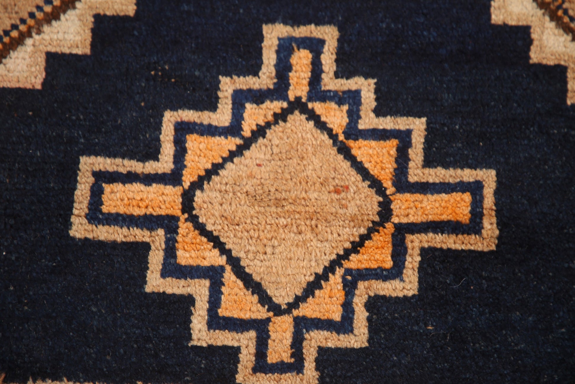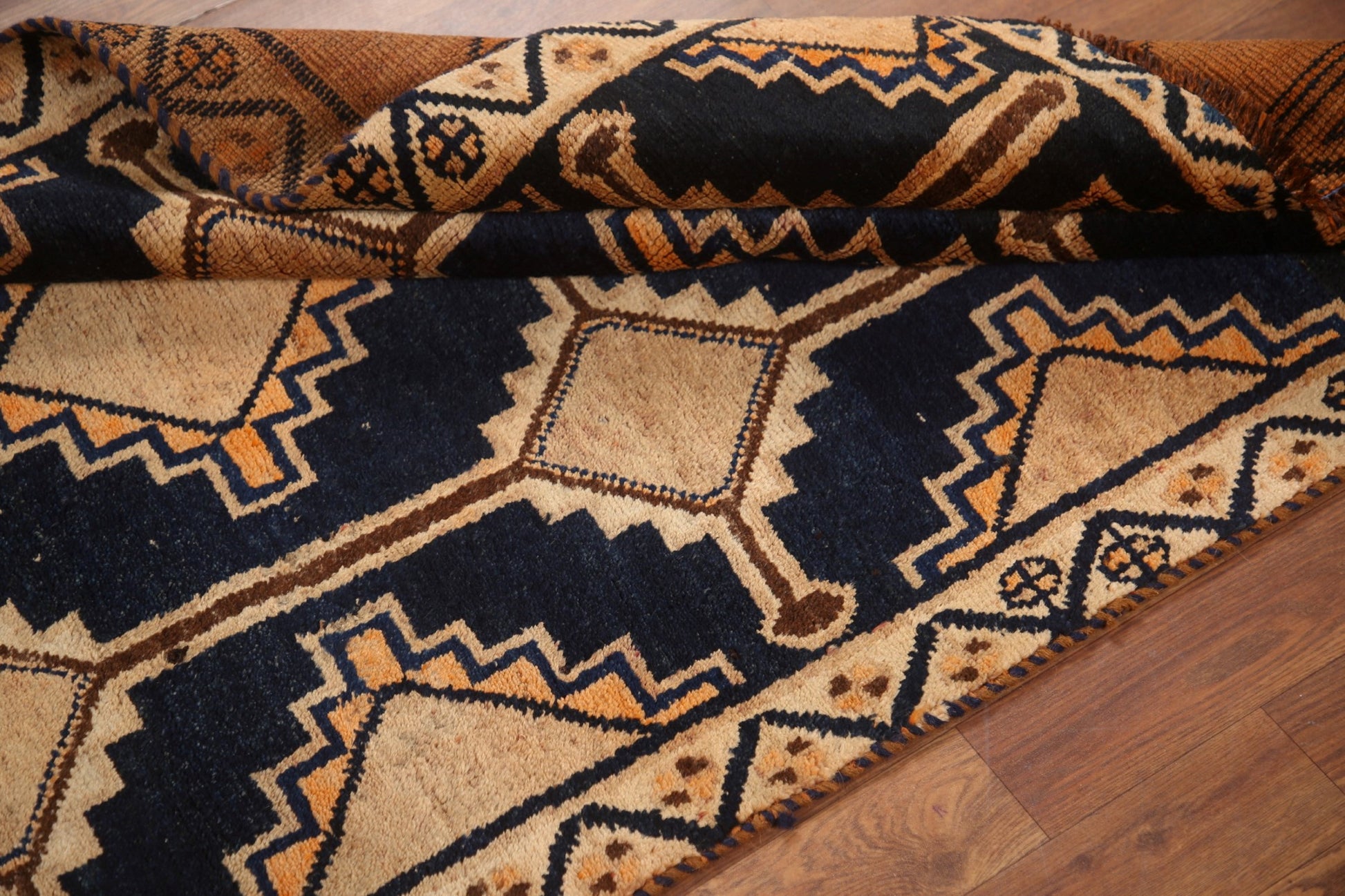 A Beautiful Genuine Persia ( Persia ) Lori rug is Hand Knotted by skillful weavers in Persia ( Persia ) with 100% Wool Material. This rug is in Very Good (Evenly Low Pile-Hole) condition. dimensions are 6' 10'' X 3' 5'' in foot and 208 X 104 in centimeter. the primary color is Navy Blue & Blues.