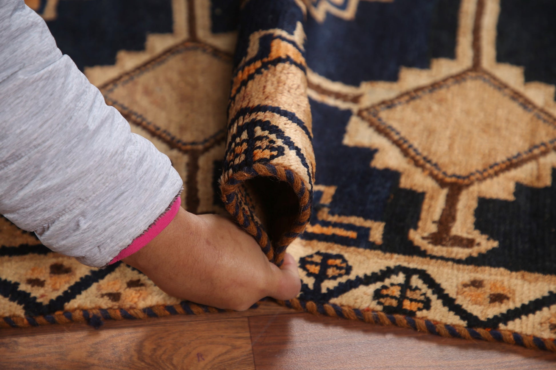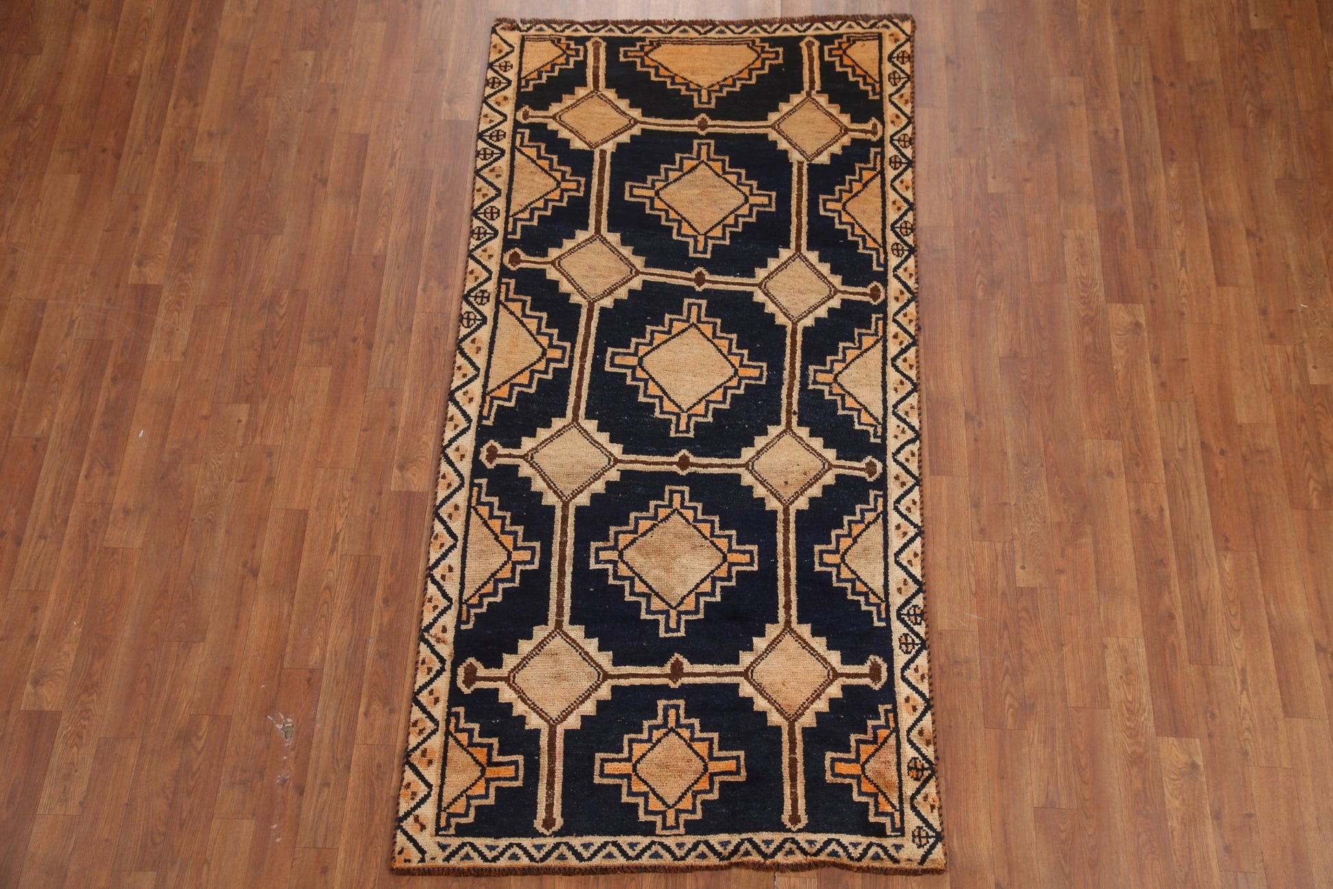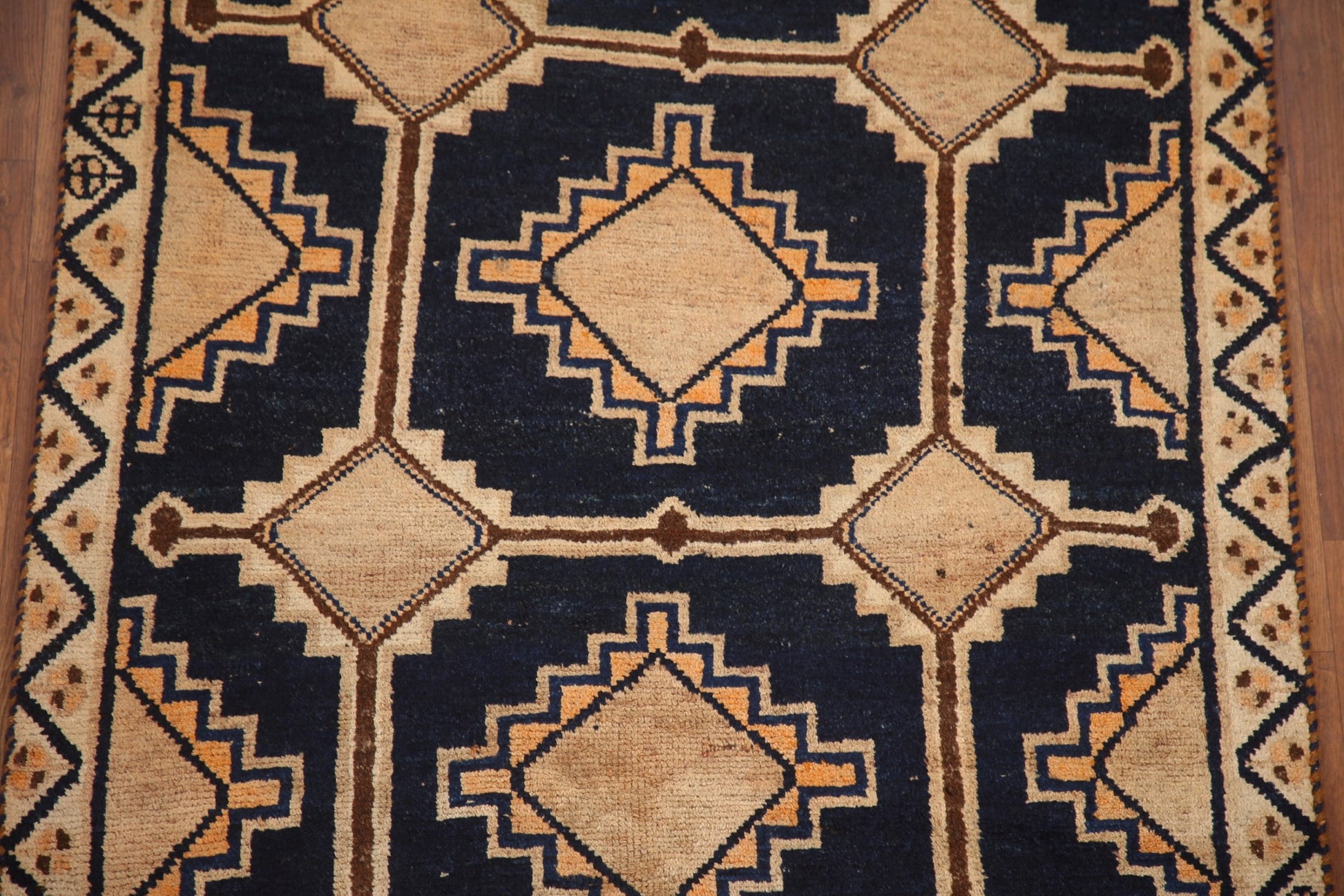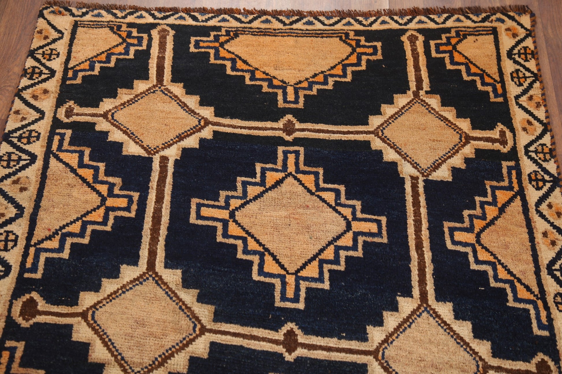 A Beautiful Genuine Persia ( Persia ) Lori rug is Hand Knotted by skillful weavers in Persia ( Persia ) with 100% Wool Material. This rug is in Very Good (Evenly Low Pile-Hole) condition. dimensions are 6' 10'' X 3' 5'' in foot and 208 X 104 in centimeter. the primary color is Navy Blue & Blues.