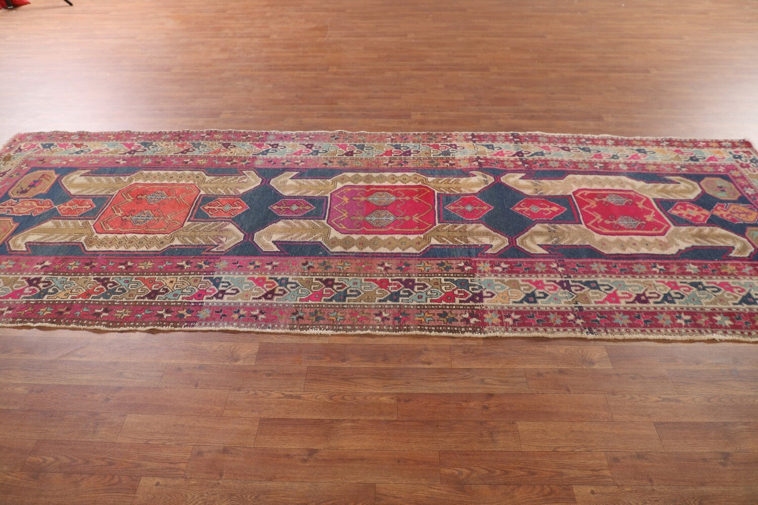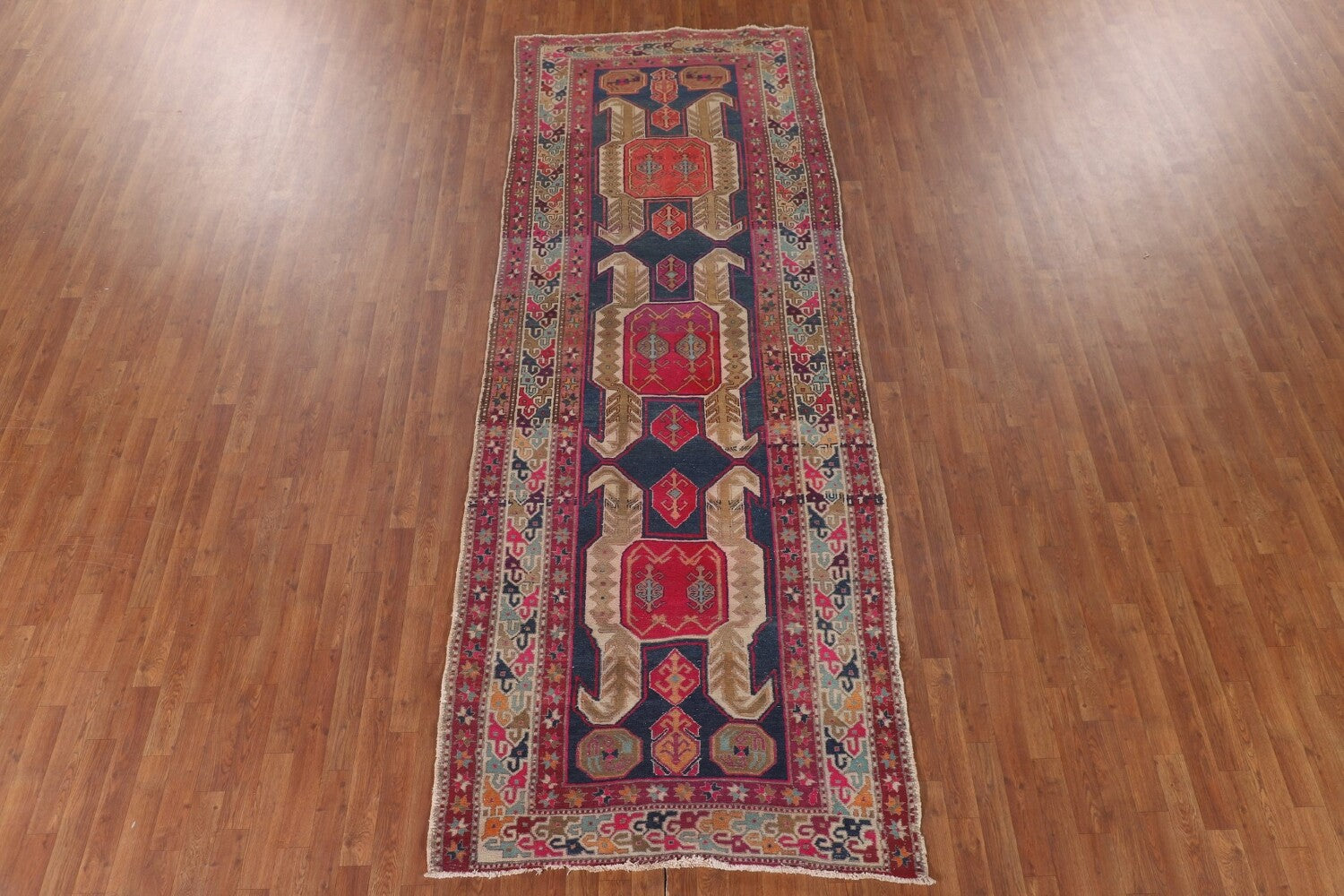 A Beautiful Genuine Persia ( Persia ) Meshkin rug is Hand Knotted by skillful weavers in Persia ( Persia ) with 100% Wool Material. This rug is in Very Good (Evenly Low Pile-Abrash) condition. dimensions are 11' 8'' X 4' 3'' in foot and 356 X 130 in centimeter. the primary color is Navy Blue & Blues.