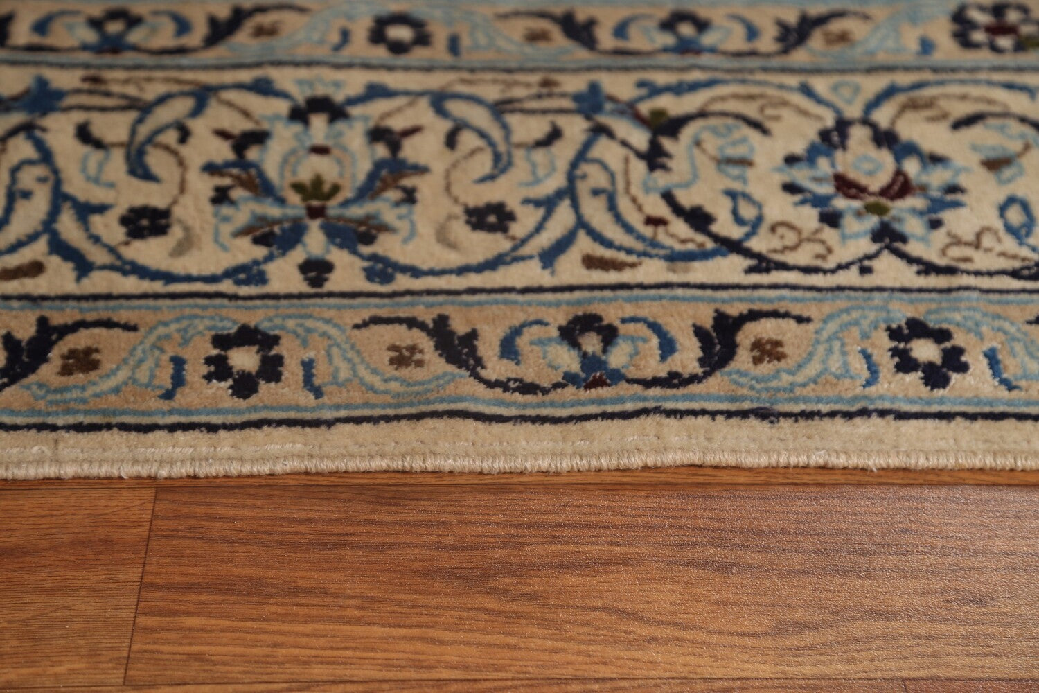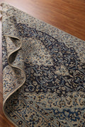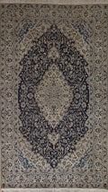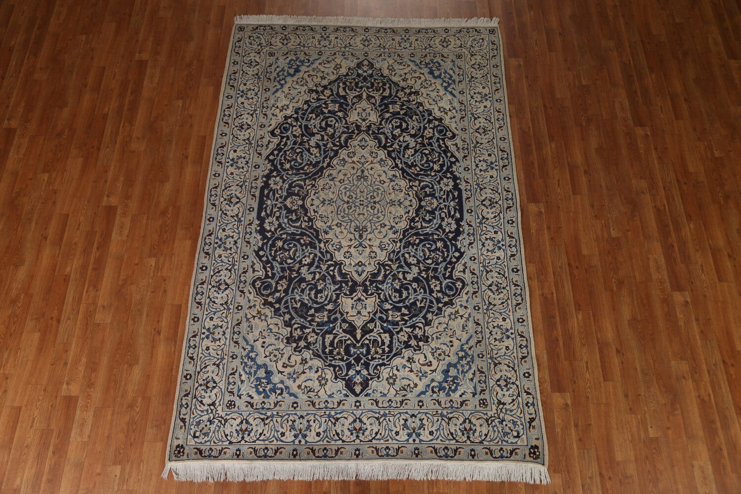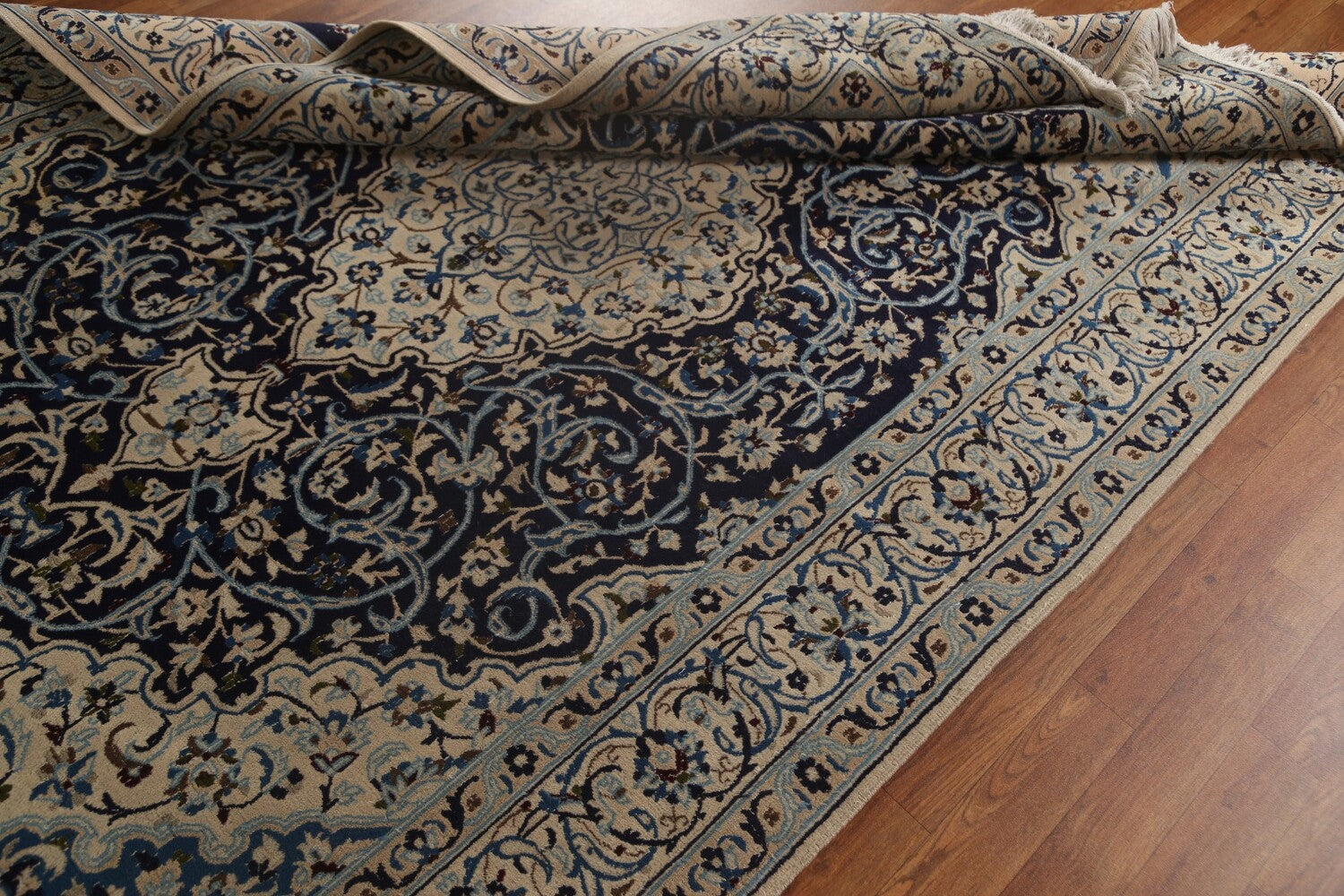 A Beautiful Genuine Persia ( Persia ) Nain rug is Hand Knotted by skillful weavers in Persia ( Persia ) with 100% Wool Material. This rug is in Very Good condition. dimensions are 8' 5'' X 5' 6'' in foot and 257 X 168 in centimeter. the primary color is Navy Blue & Blues.