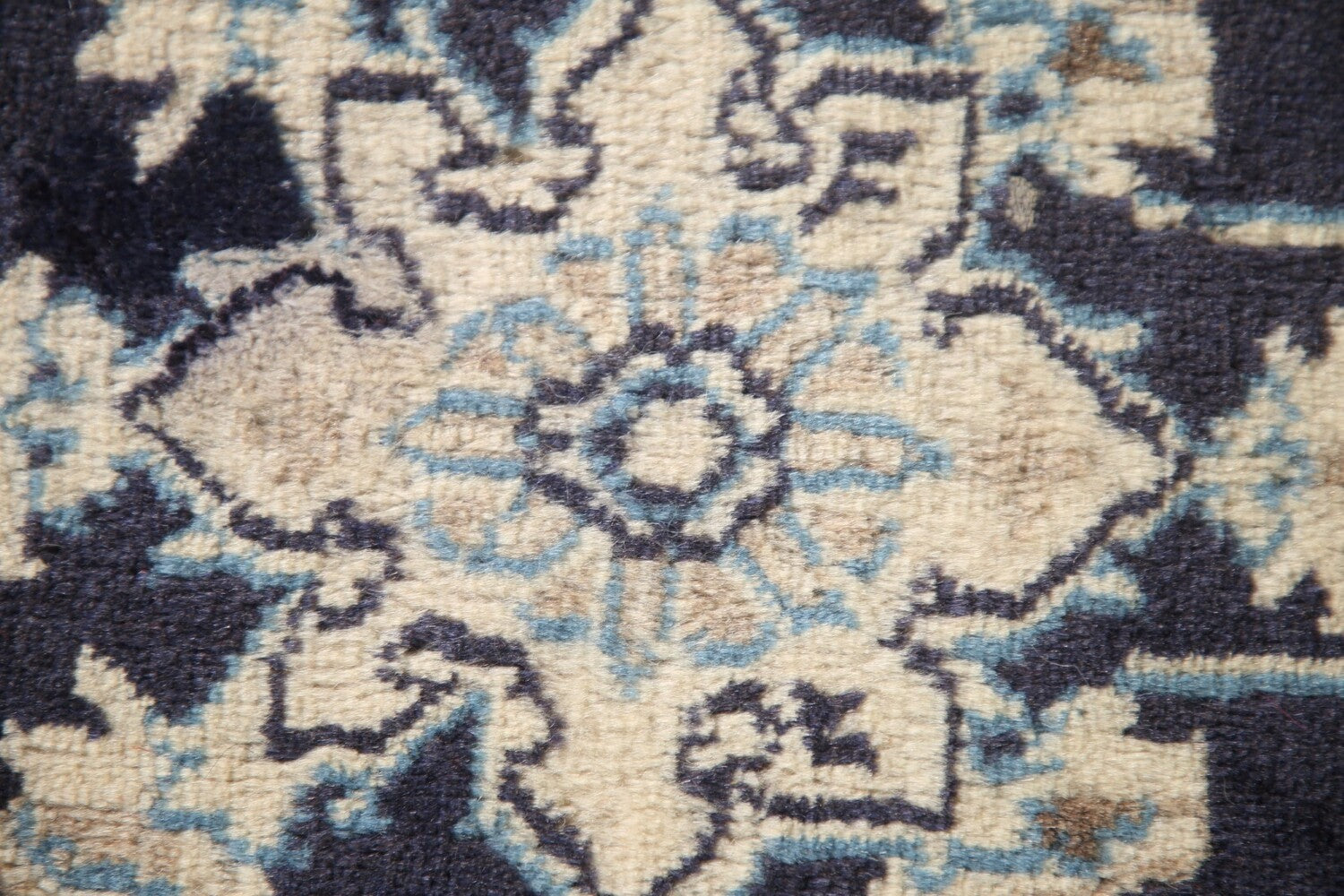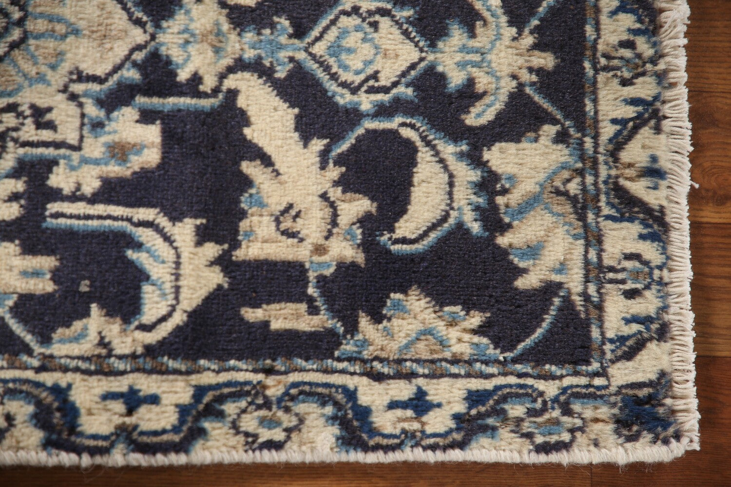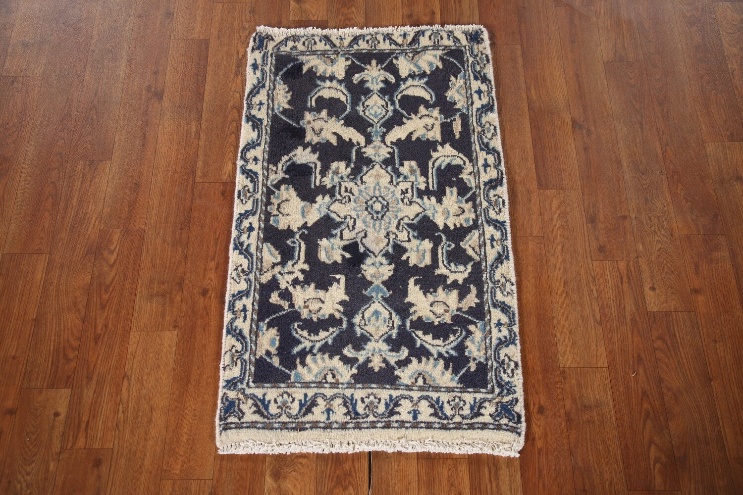 A Beautiful Genuine Persia ( Persia ) Nain rug is Hand Knotted by skillful weavers in Persia ( Persia ) with 100% Wool Material. This rug is in Very Good condition. dimensions are 2' 10'' X 1' 9'' in foot and 86 X 53 in centimeter. the primary color is Navy Blue & Blues.