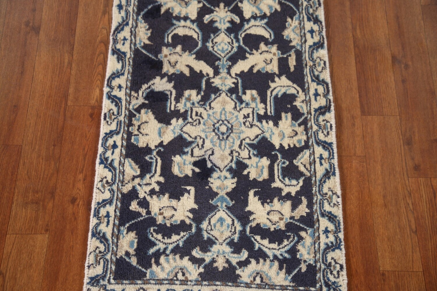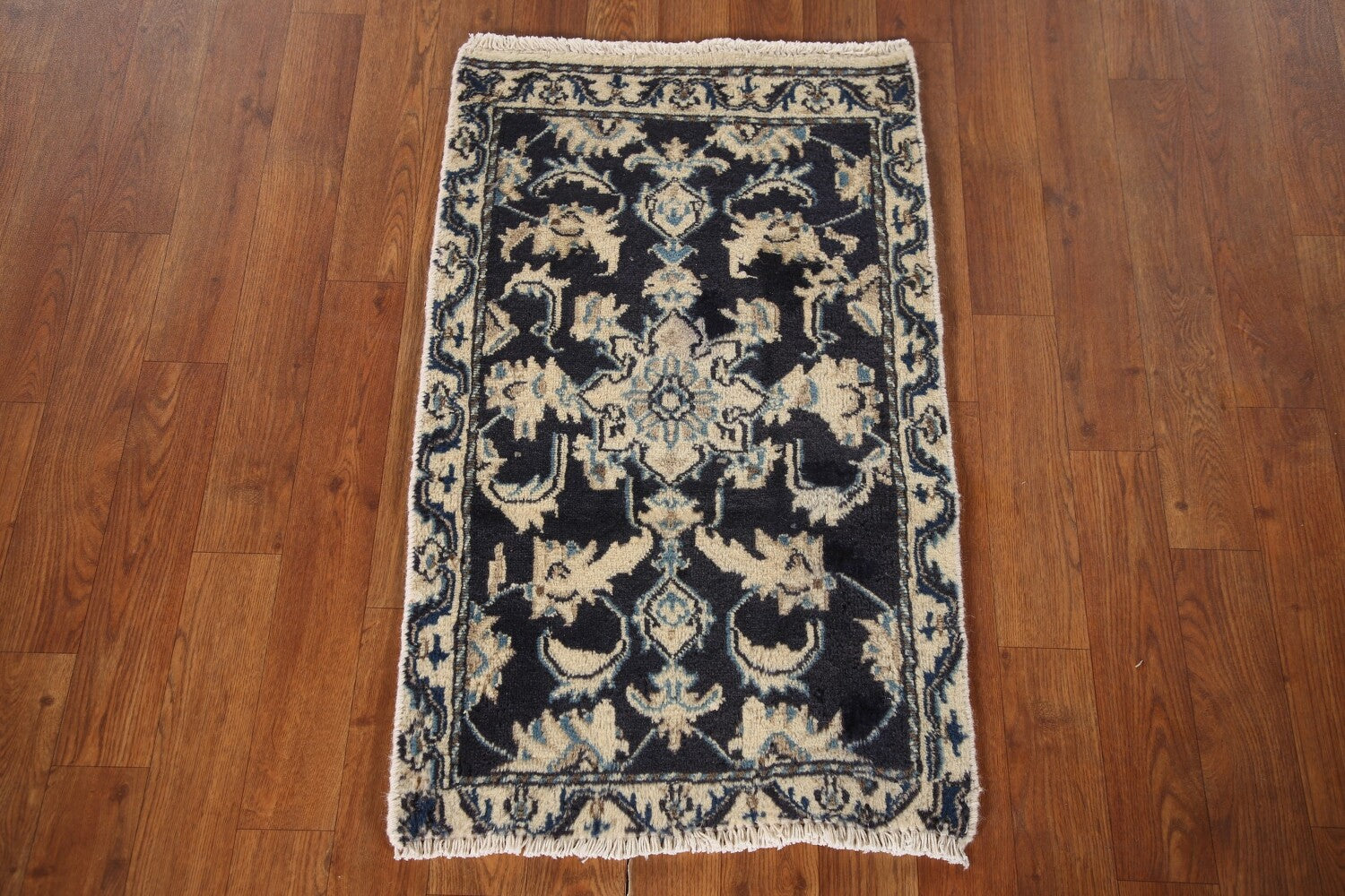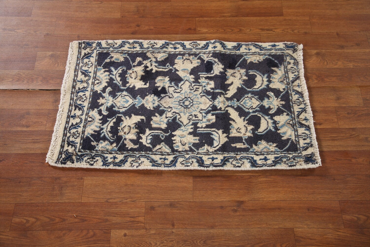 A Beautiful Genuine Persia ( Persia ) Nain rug is Hand Knotted by skillful weavers in Persia ( Persia ) with 100% Wool Material. This rug is in Very Good condition. dimensions are 2' 10'' X 1' 9'' in foot and 86 X 53 in centimeter. the primary color is Navy Blue & Blues.