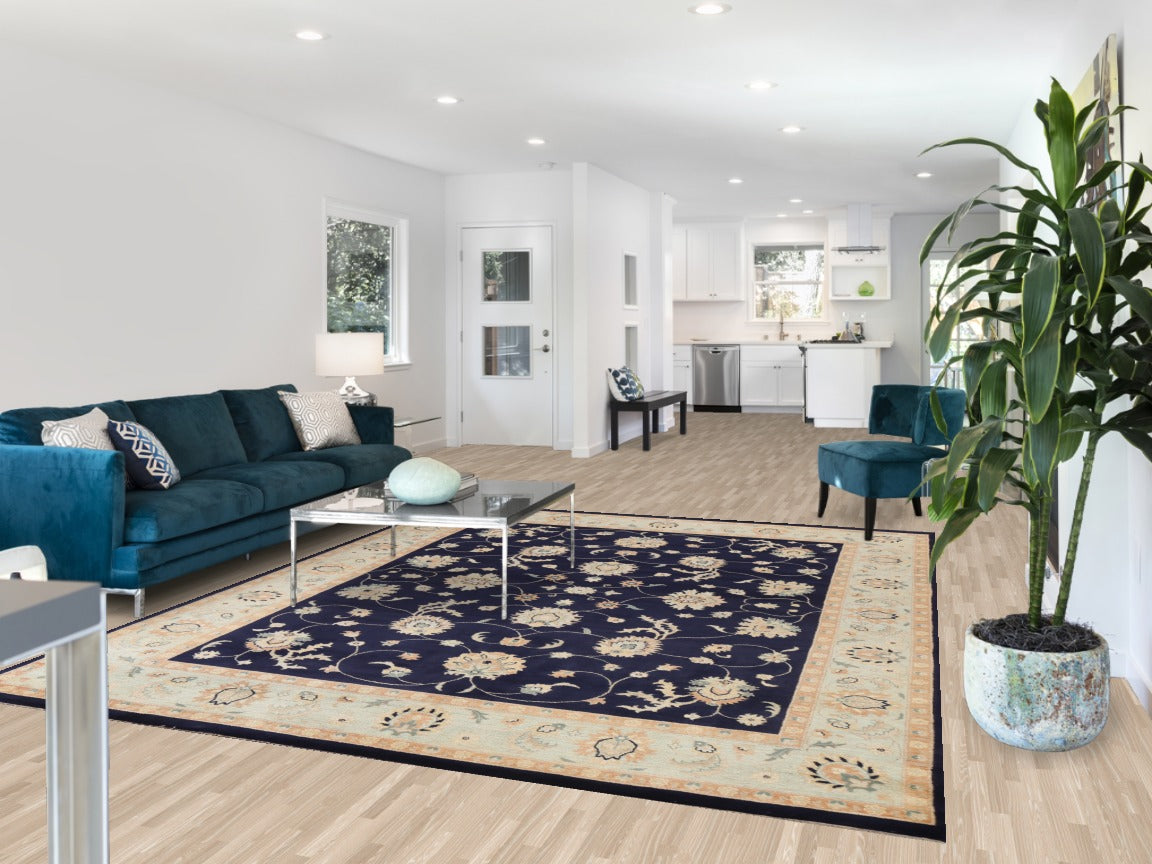 Navy Blue Oushak Chobi Handmade Wool Rug 8x10
