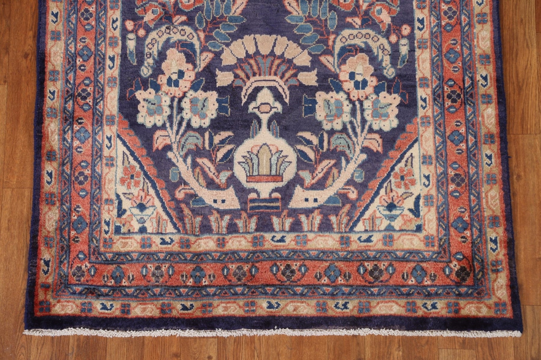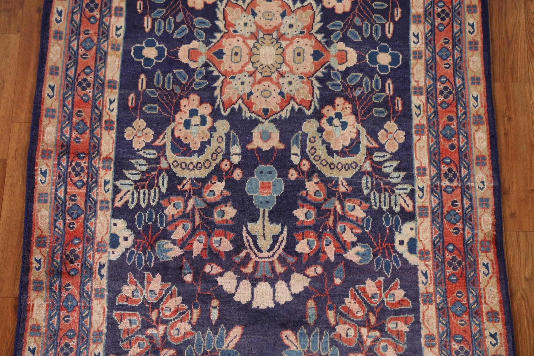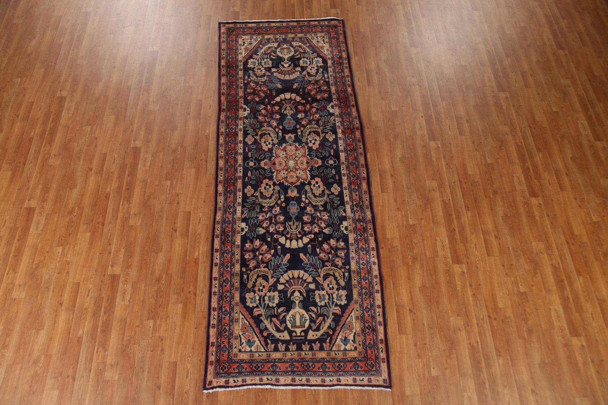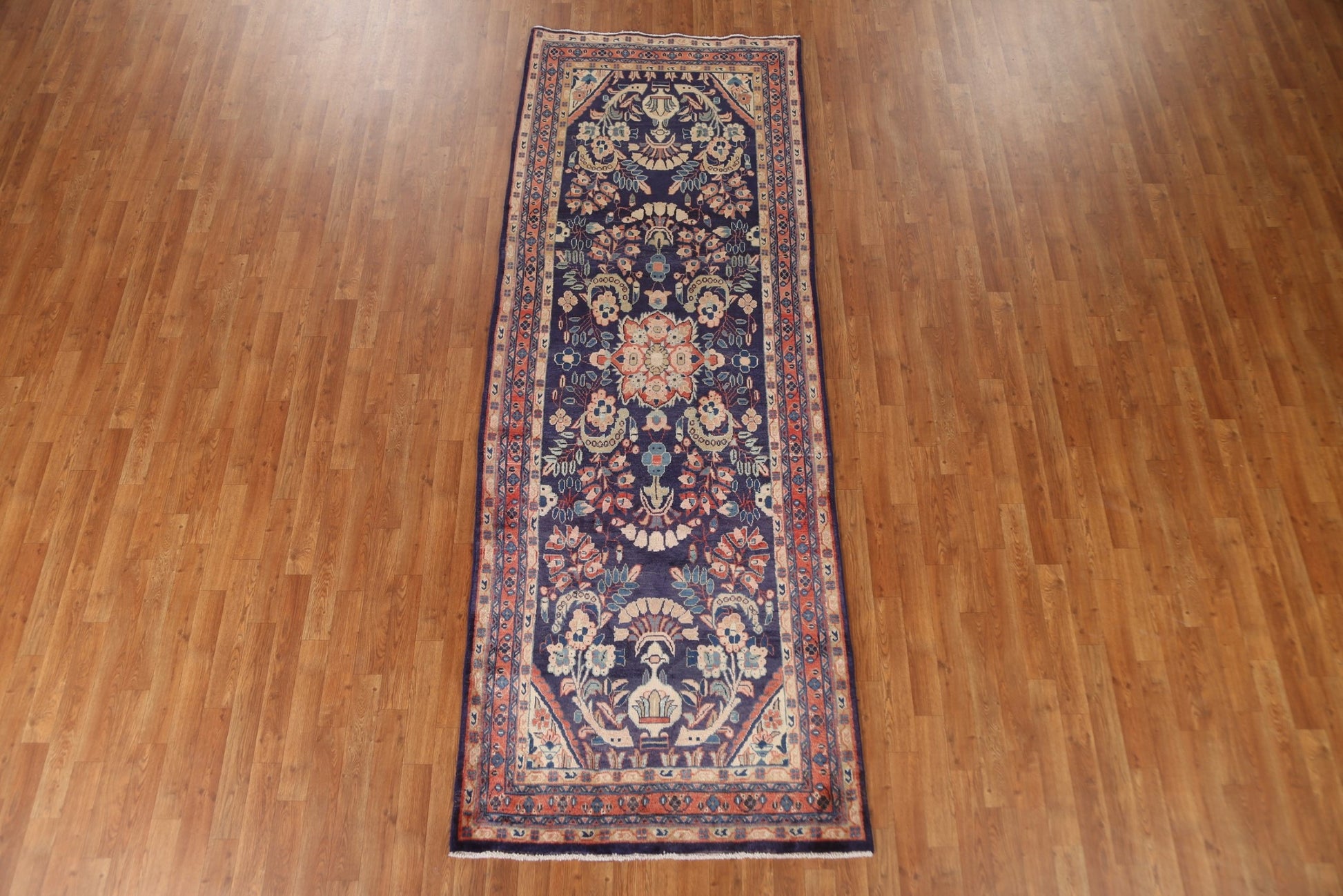Navy Blue Sarouk Persian Runner Rug 4x10