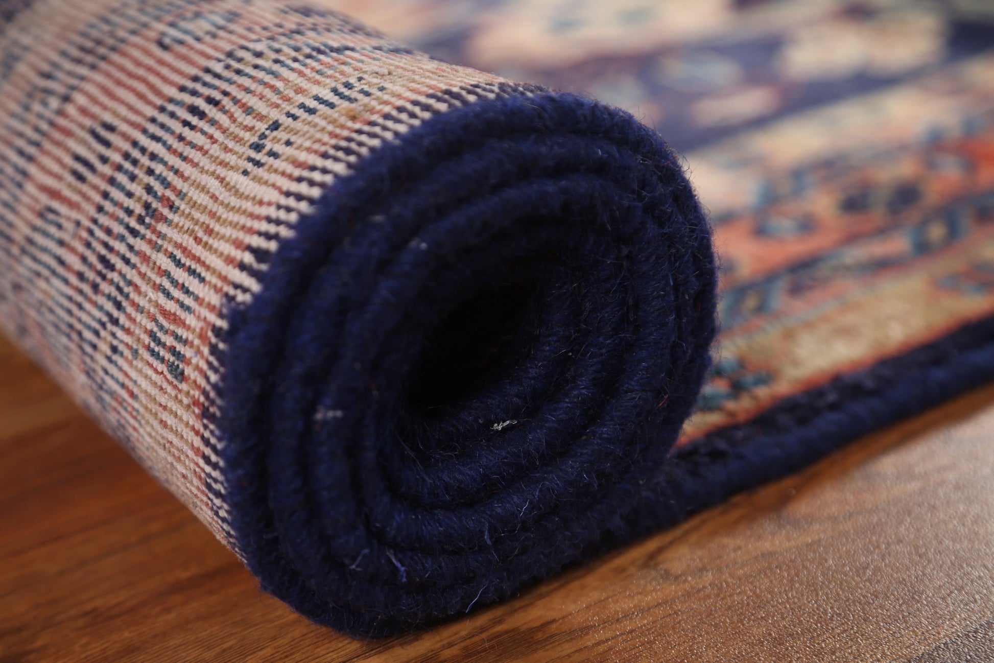 A Beautiful Genuine Persia ( Persia ) Sarouk rug is Hand Knotted by skillful weavers in Persia ( Persia ) with 100% Wool Material. This rug is in Very Good condition. dimensions are 10' 1'' X 3' 8'' in foot and 307 X 112 in centimeter. the primary color is Navy Blue & Blues.