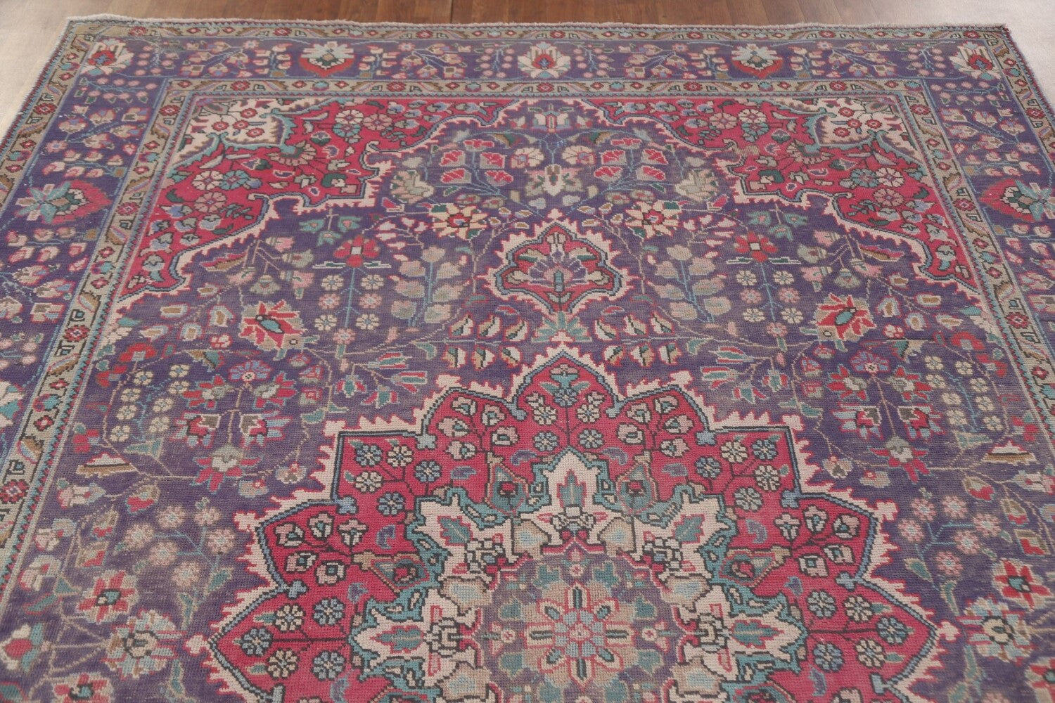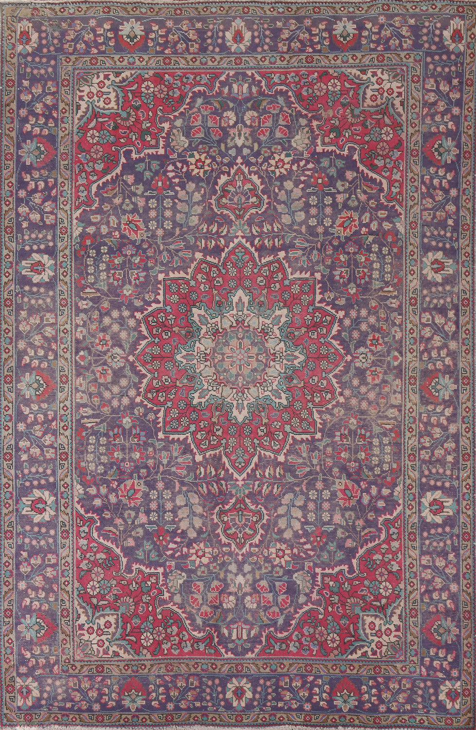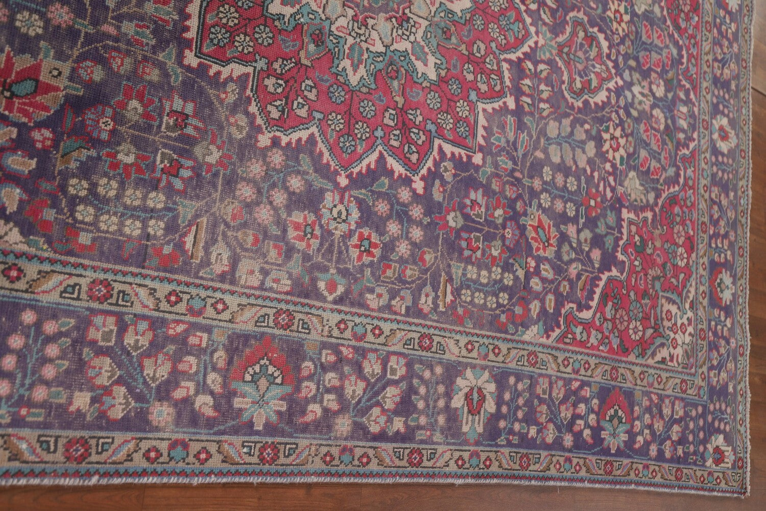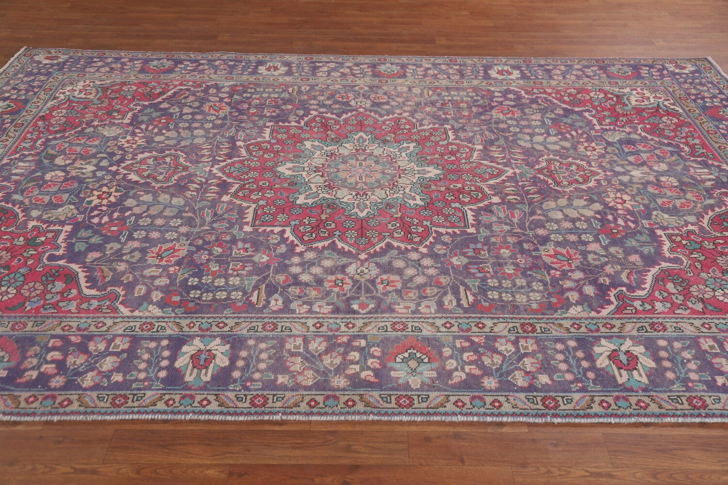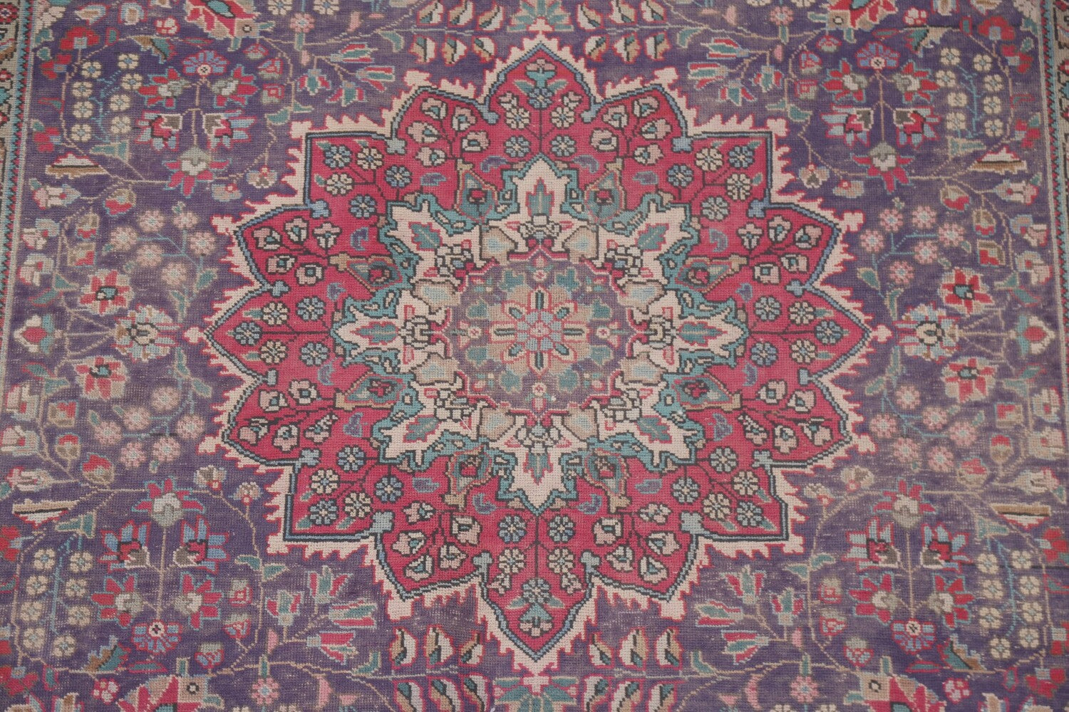 A Beautiful Genuine Persia ( Persia ) Tabriz rug is Hand Knotted by skillful weavers in Persia ( Persia ) with 100% Wool Material. This rug is in Very Good (Evenly Low Pile) condition. dimensions are 9' 8'' X 6' 8'' in foot and 295 X 203 in centimeter. the primary color is Navy Blue & Blues.
