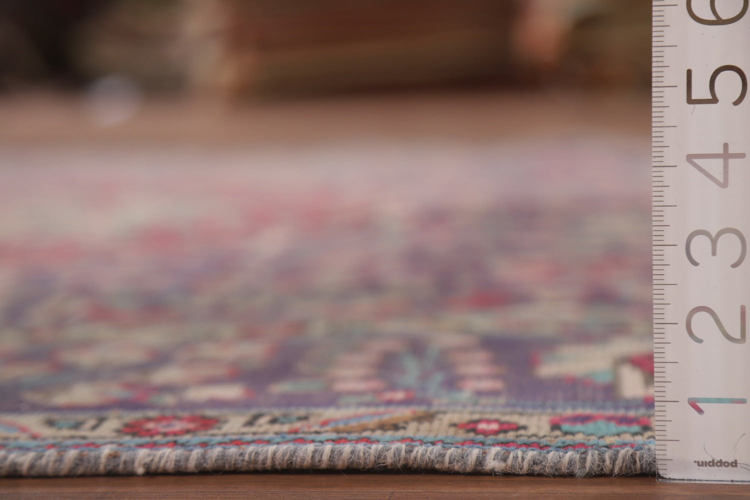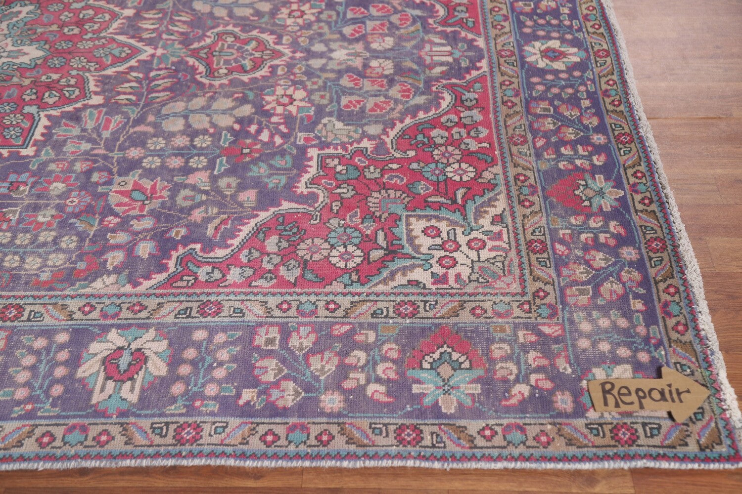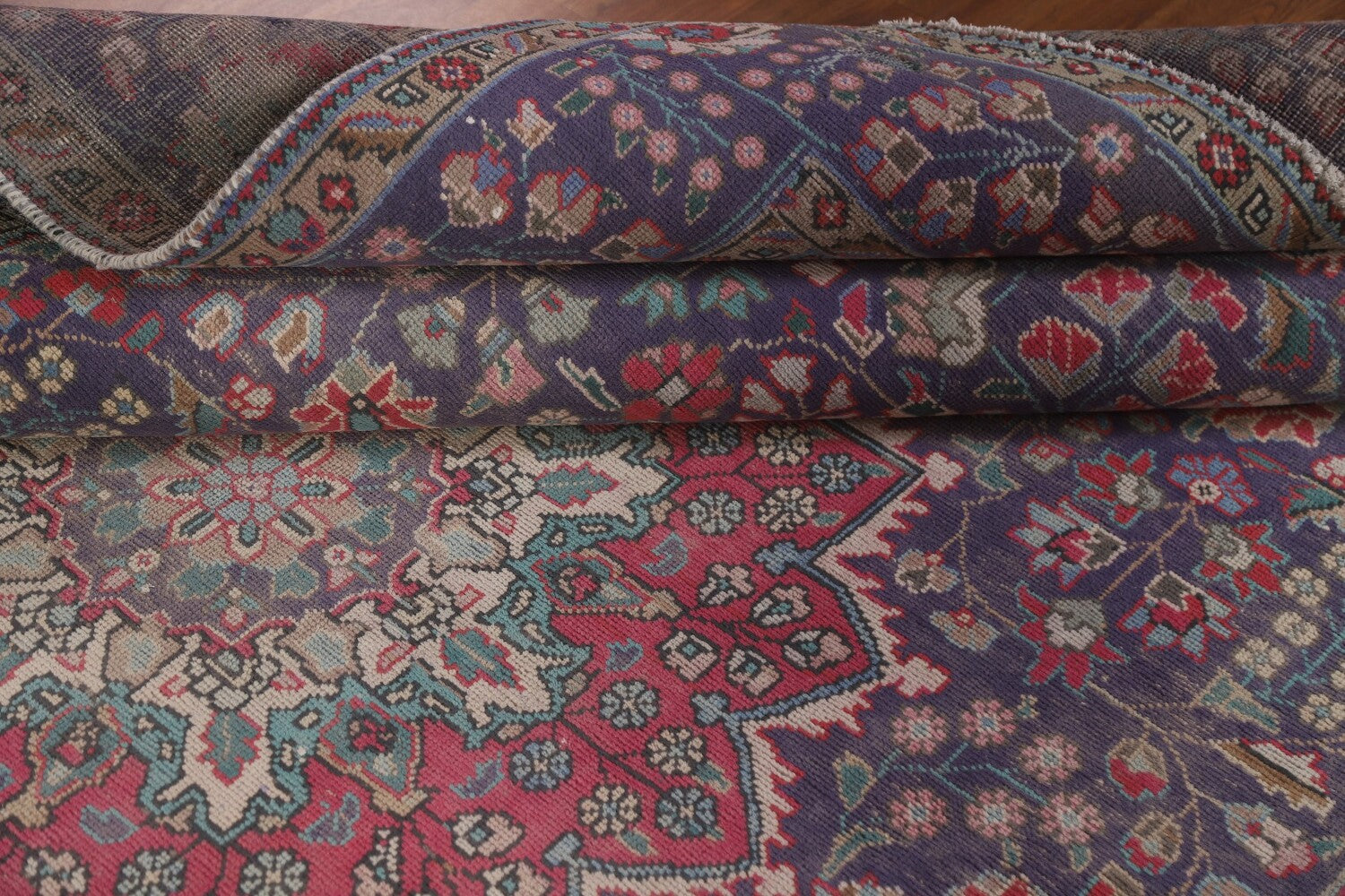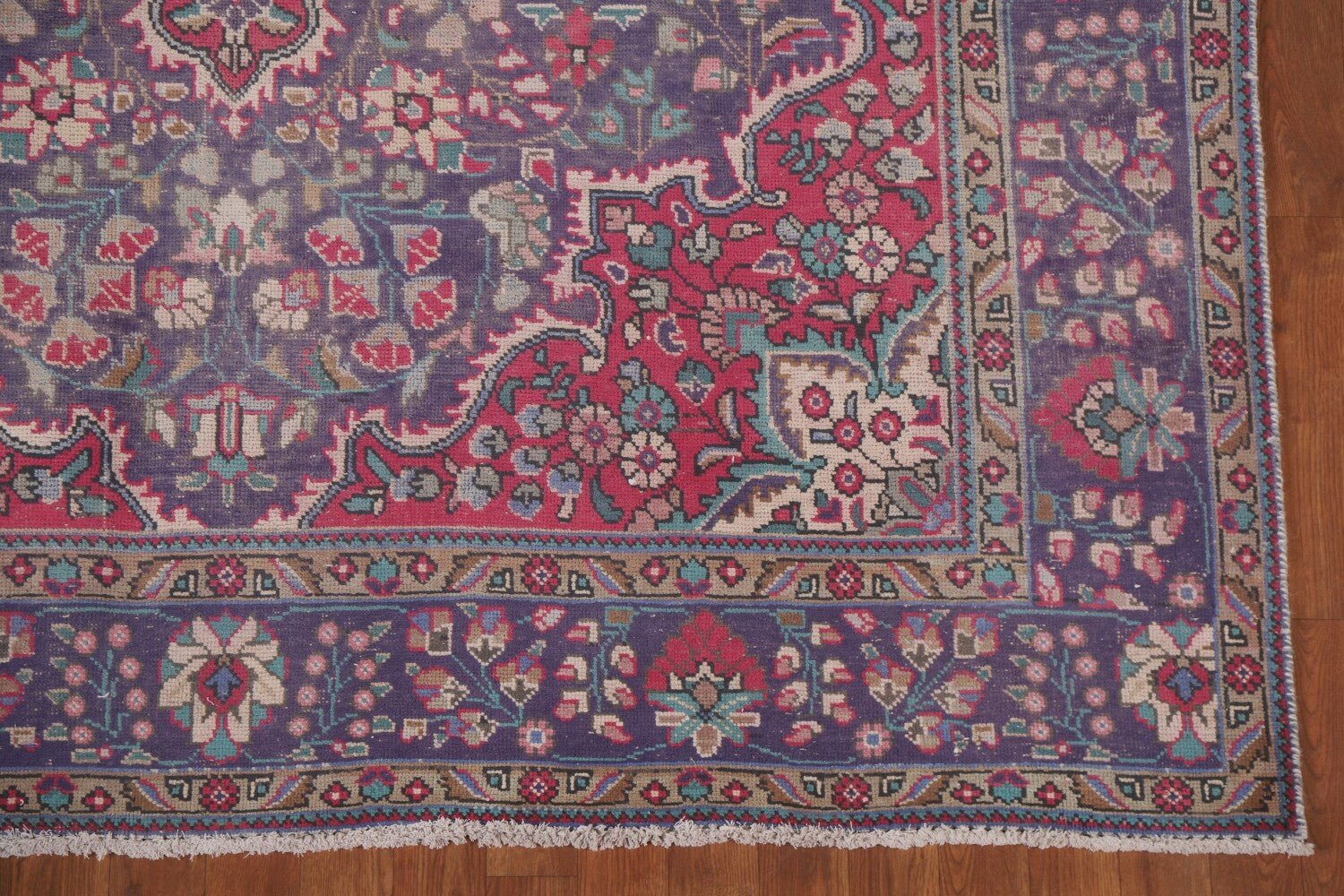 A Beautiful Genuine Persia ( Persia ) Tabriz rug is Hand Knotted by skillful weavers in Persia ( Persia ) with 100% Wool Material. This rug is in Very Good (Evenly Low Pile) condition. dimensions are 9' 8'' X 6' 8'' in foot and 295 X 203 in centimeter. the primary color is Navy Blue & Blues.
