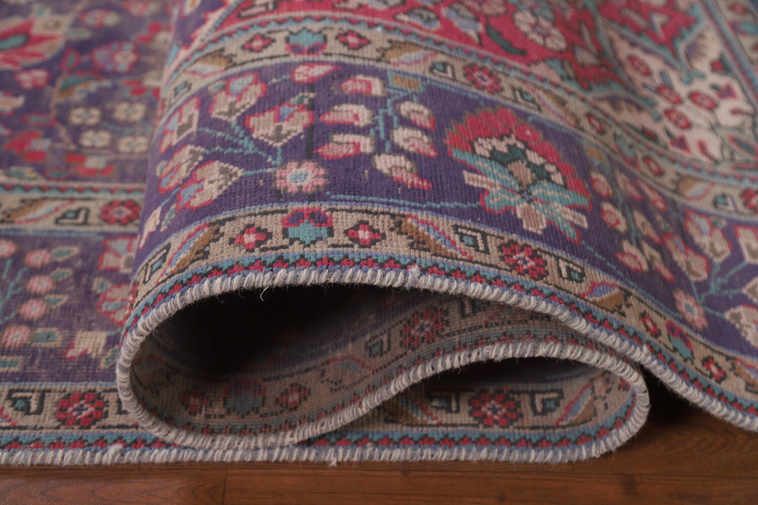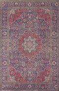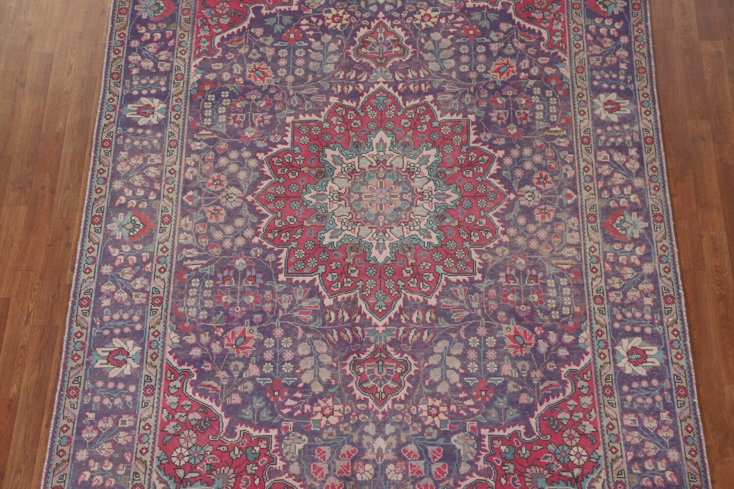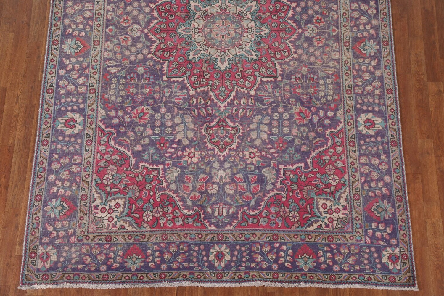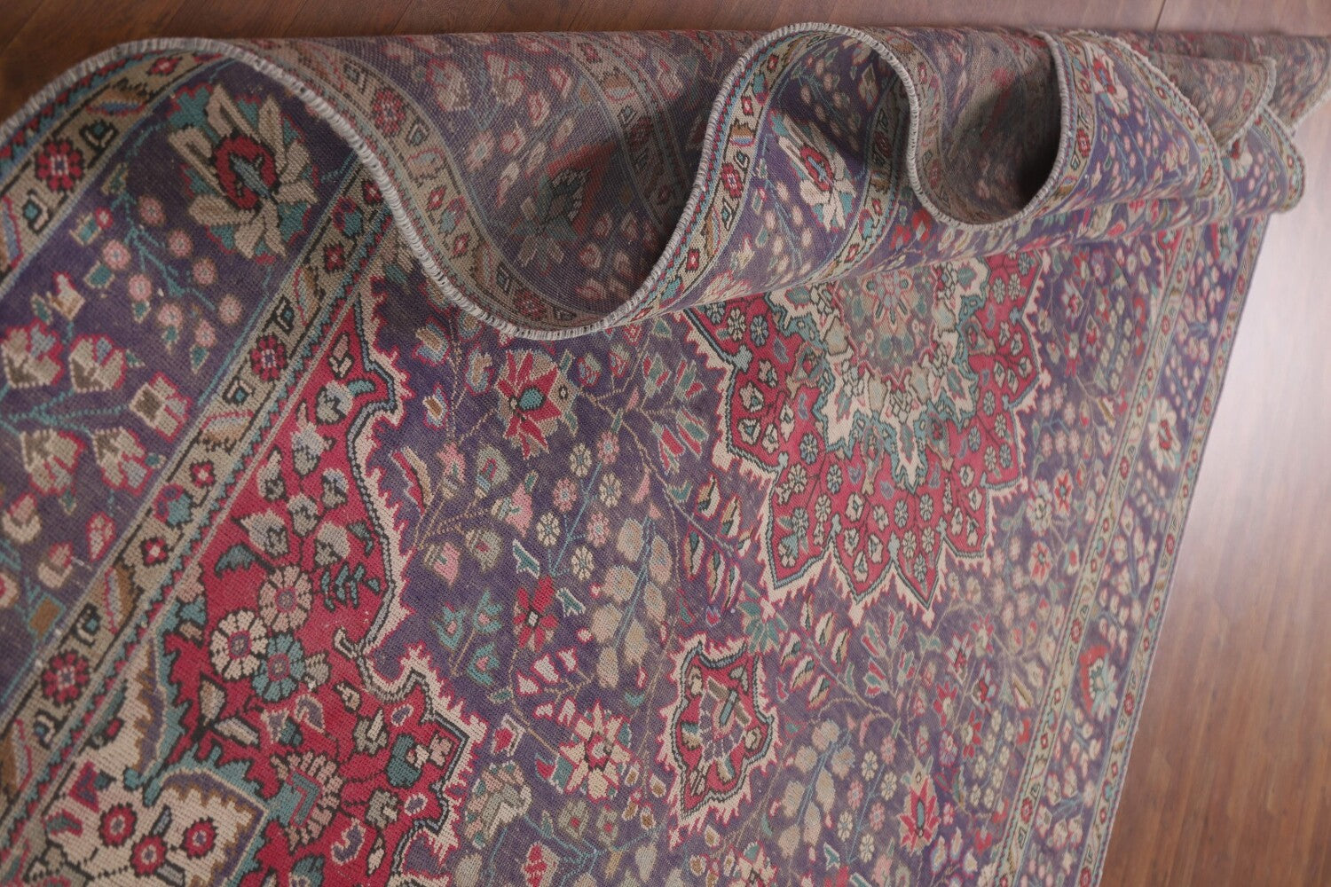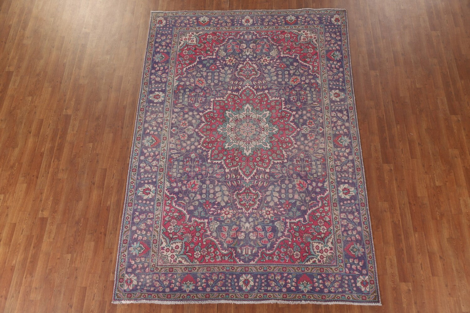 A Beautiful Genuine Persia ( Persia ) Tabriz rug is Hand Knotted by skillful weavers in Persia ( Persia ) with 100% Wool Material. This rug is in Very Good (Evenly Low Pile) condition. dimensions are 9' 8'' X 6' 8'' in foot and 295 X 203 in centimeter. the primary color is Navy Blue & Blues.