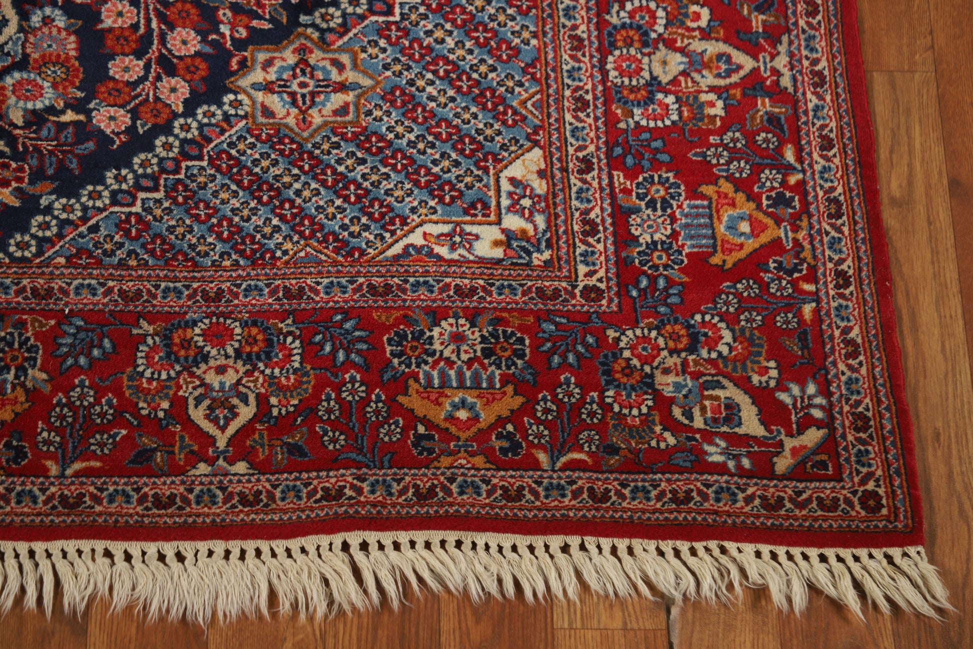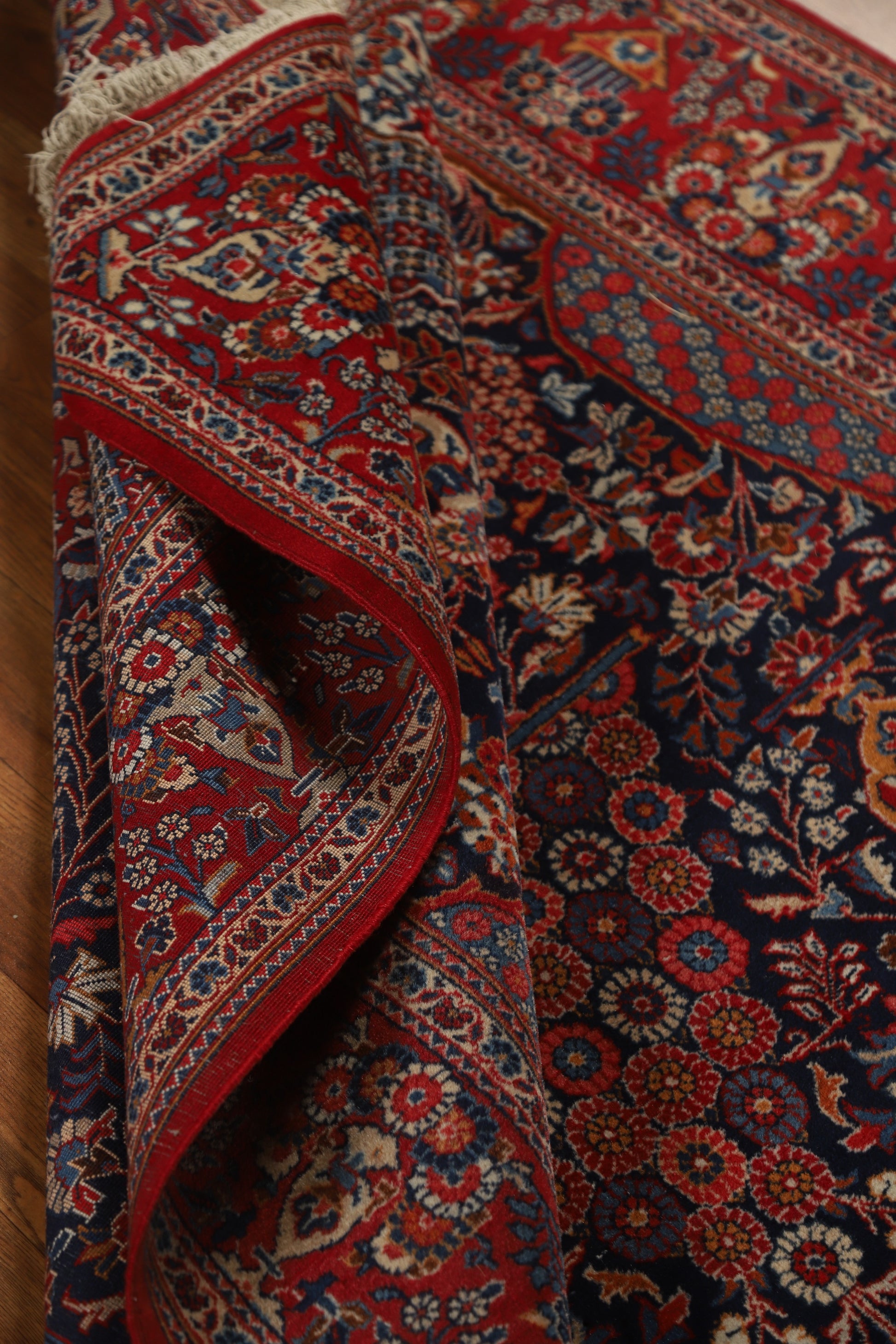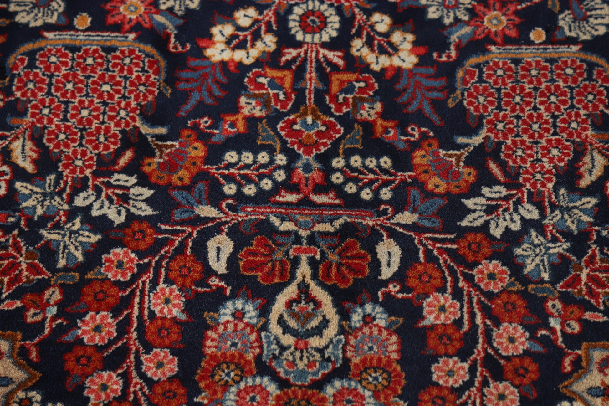A Beautiful Genuine Persia ( Persia ) Isfahan rug is Hand Knotted by skillful weavers in Persia ( Persia ) with 100% Wool Material. This rug is in Very Good condition. dimensions are 6' 8'' X 4' 6'' in foot and 203 X 137 in centimeter. the primary color is Navy Blue & Blues.