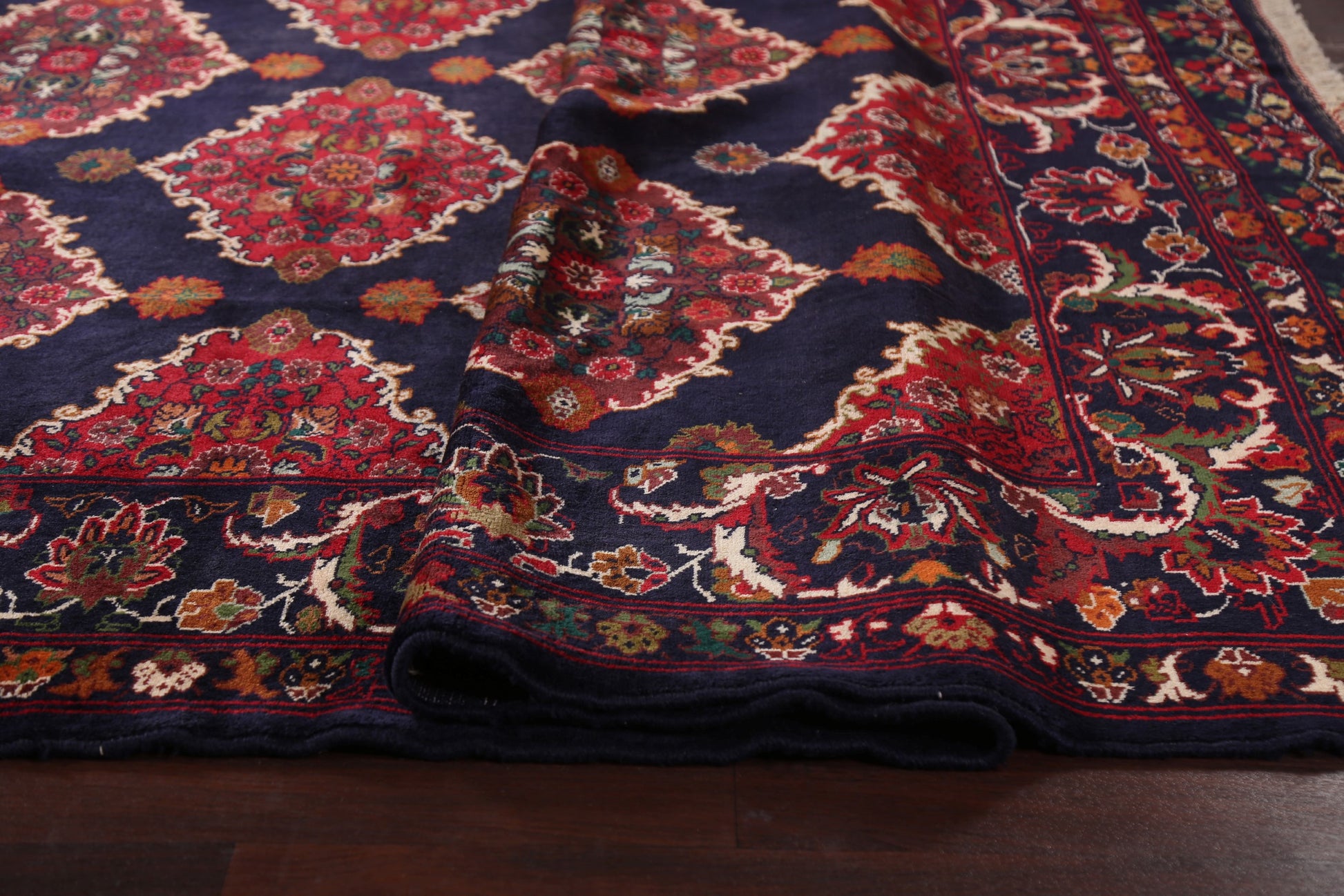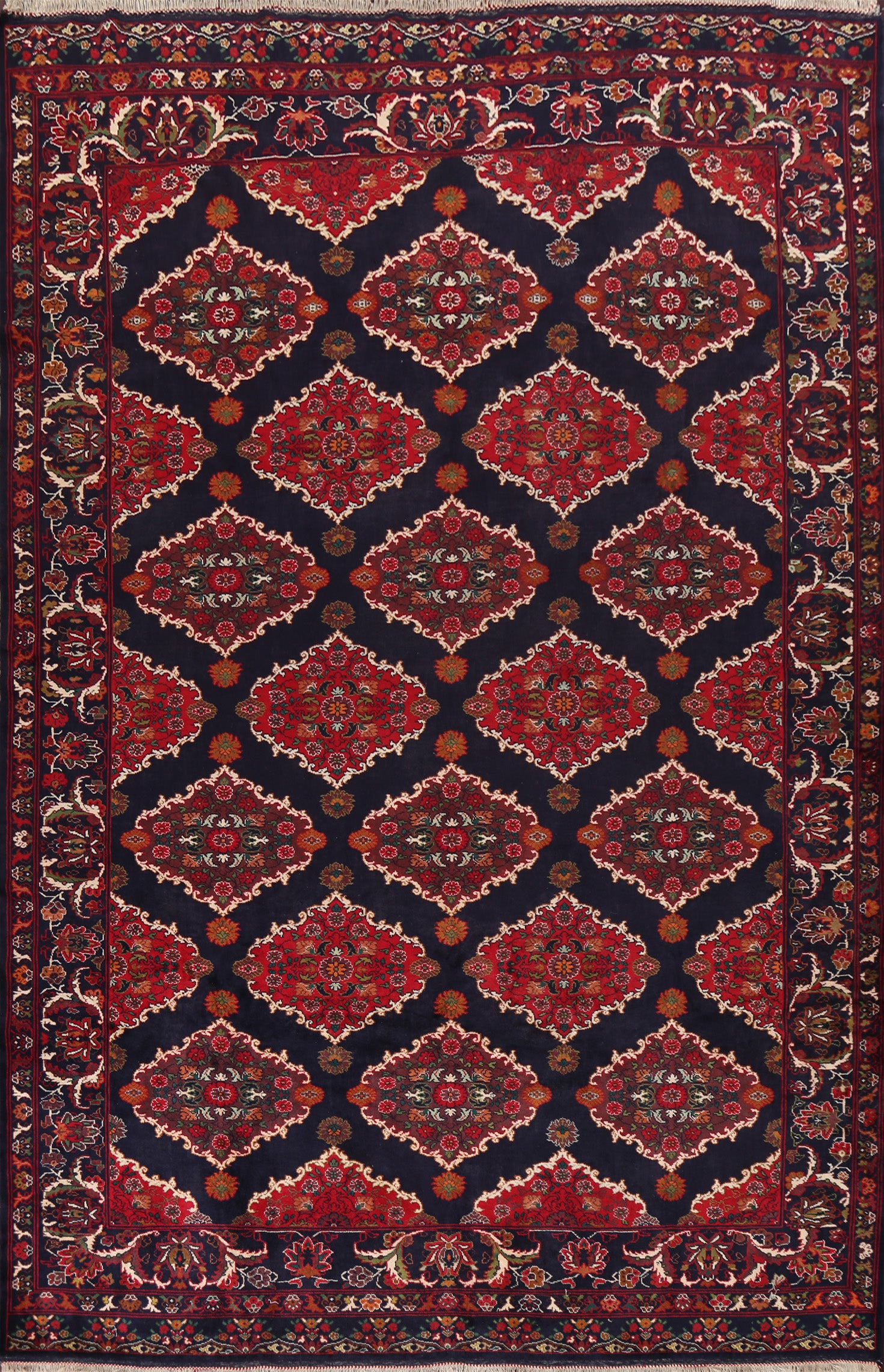 Navy Blue Wool Hamedan Persian Area Rug 10x13