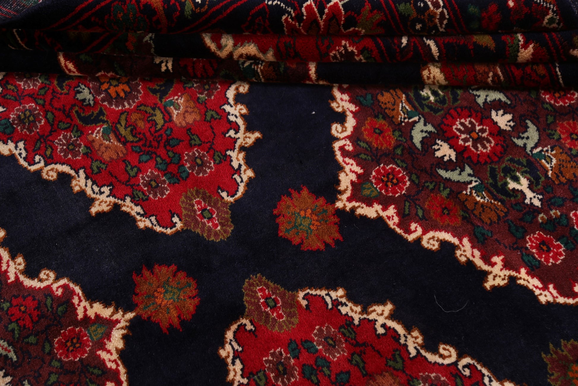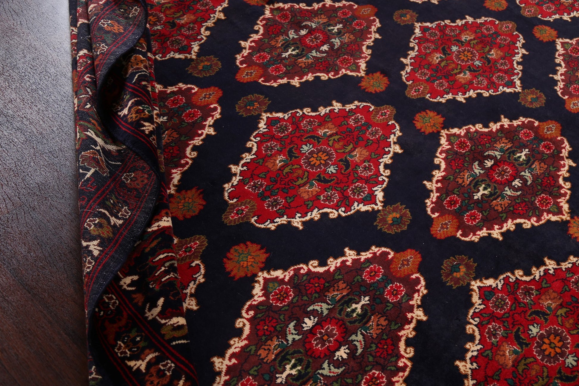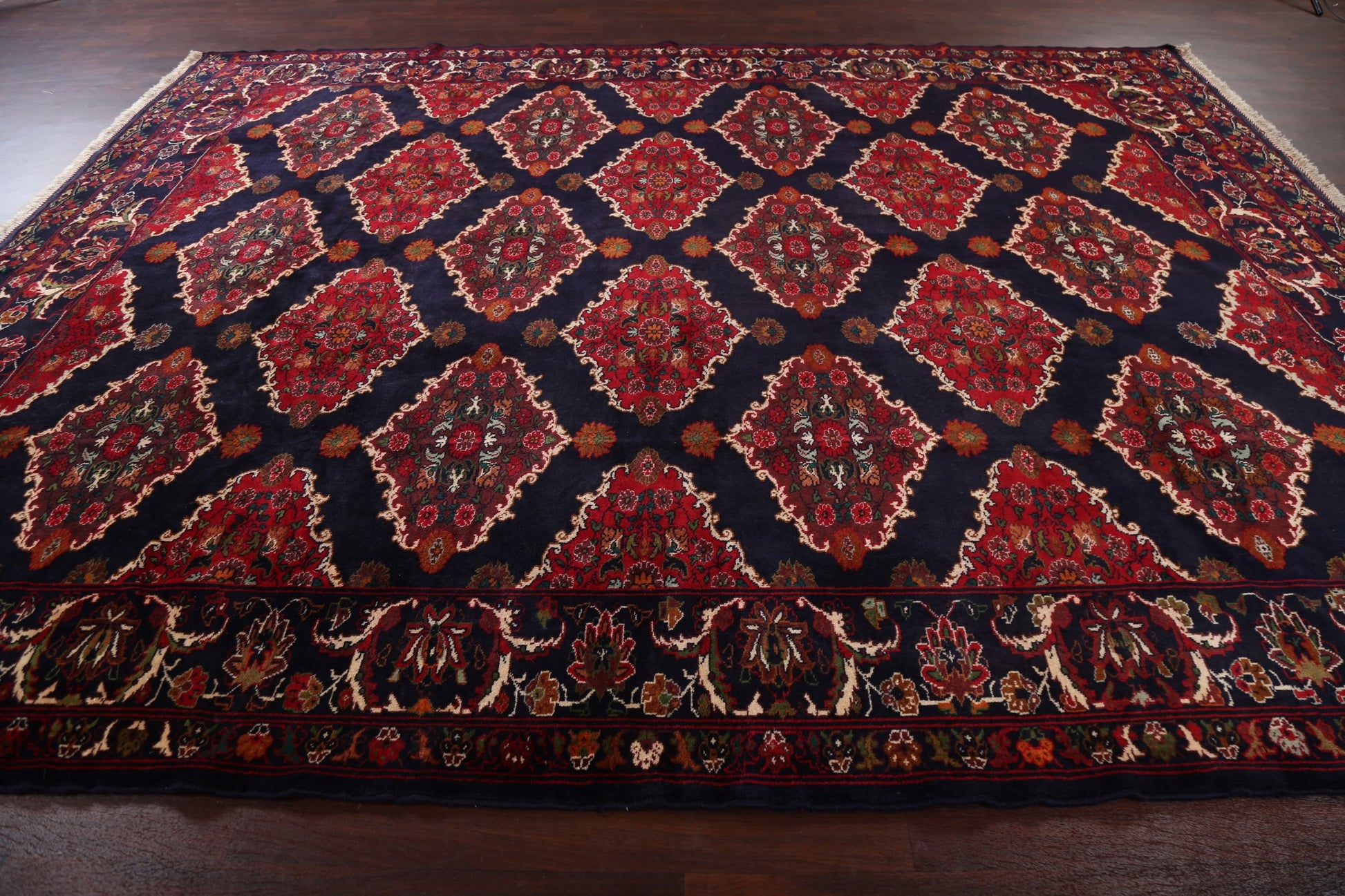 A Beautiful Genuine Persia ( Persia ) Hamedan rug is Hand Knotted by skillful weavers in Persia ( Persia ) with 100% Wool Material. This rug is in New, First Quality condition. dimensions are 13' 3'' X 10' 5'' in foot and 404 X 318 in centimeter. the primary color is Navy Blue & Blues.