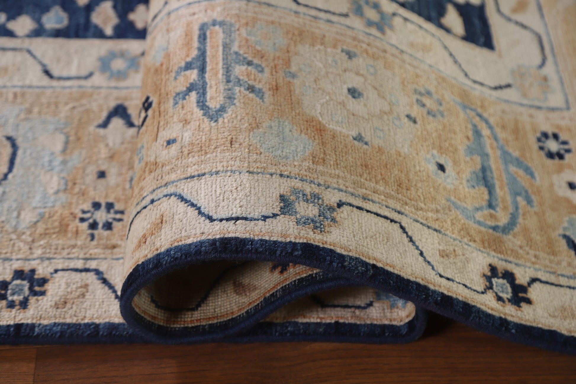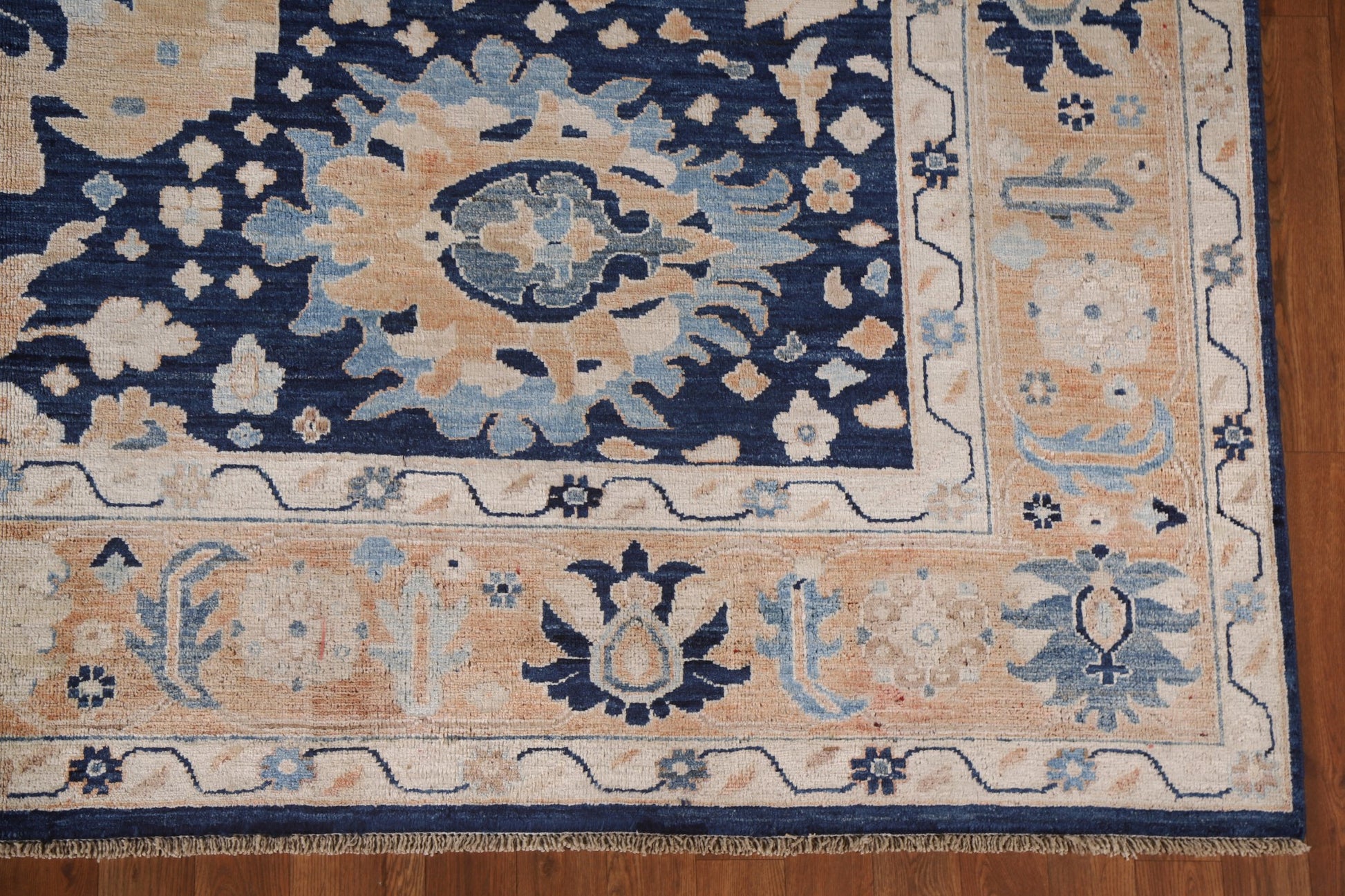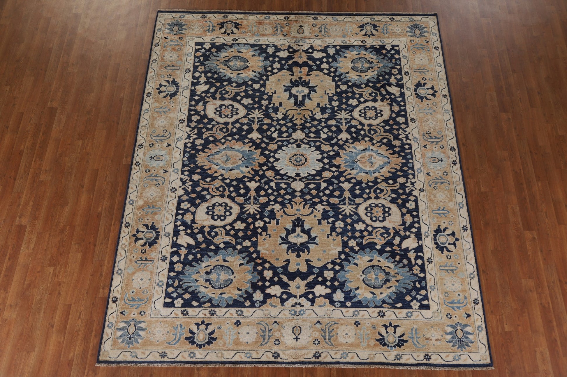 A Beautiful Genuine Pakistan Sultanabad (Ziegler) rug is Hand Knotted by skillful weavers in Pakistan with 100% Wool Material. This rug is in condition. dimensions are 9' 8'' X 8' 0'' in foot and 295 X 244 in centimeter. the primary color is Navy Blue & Blues.