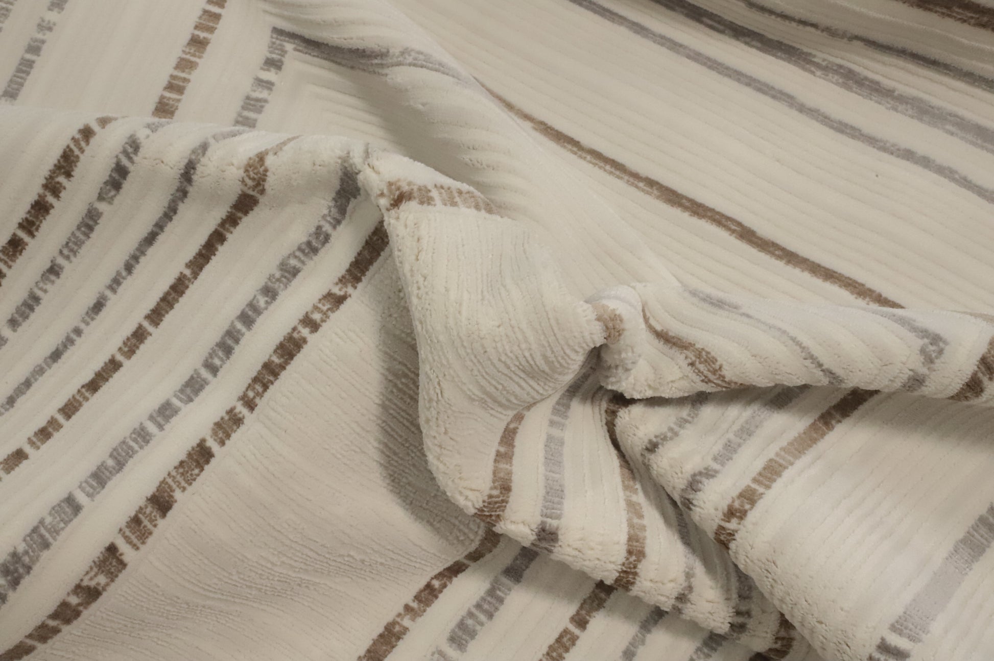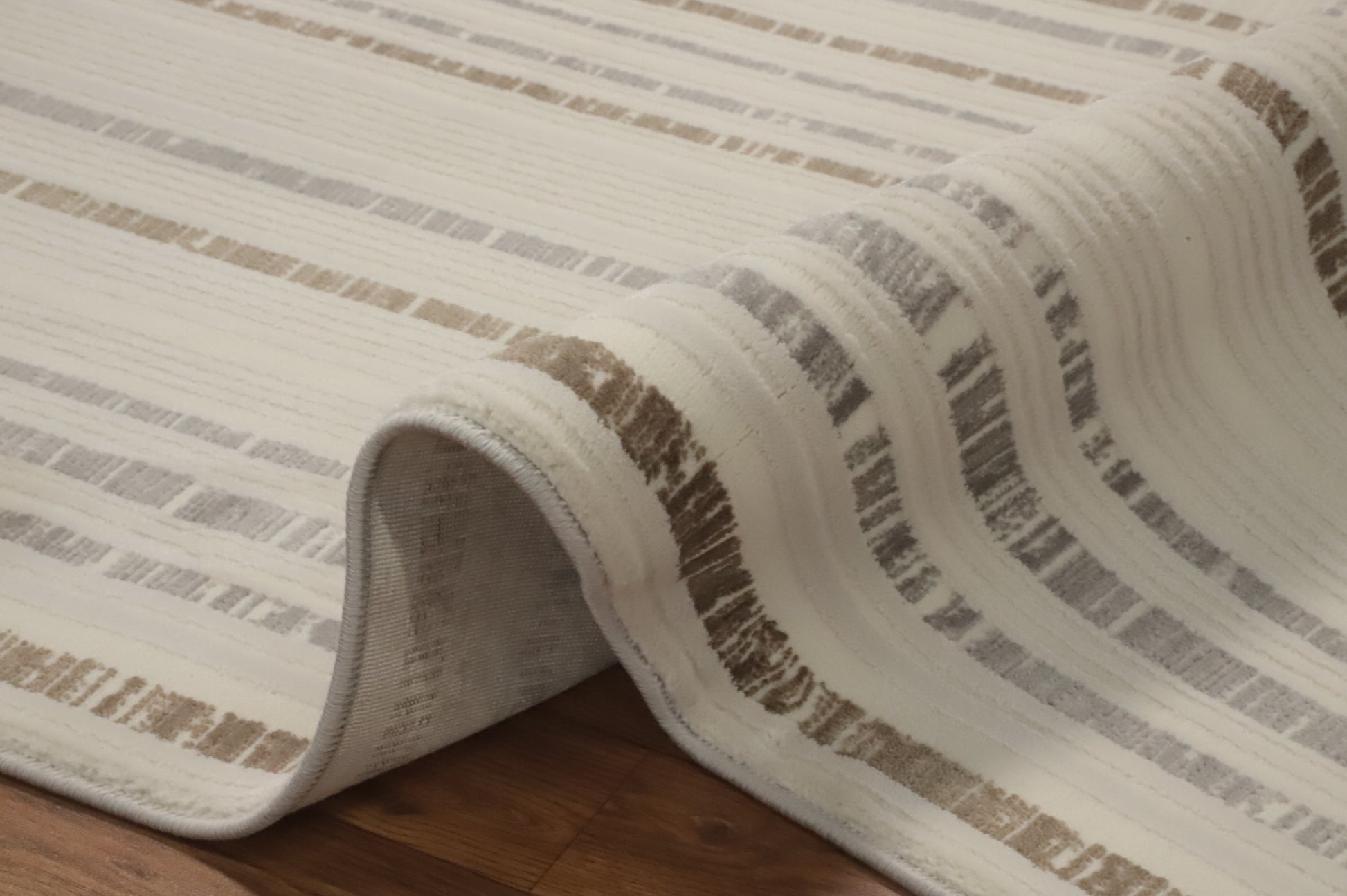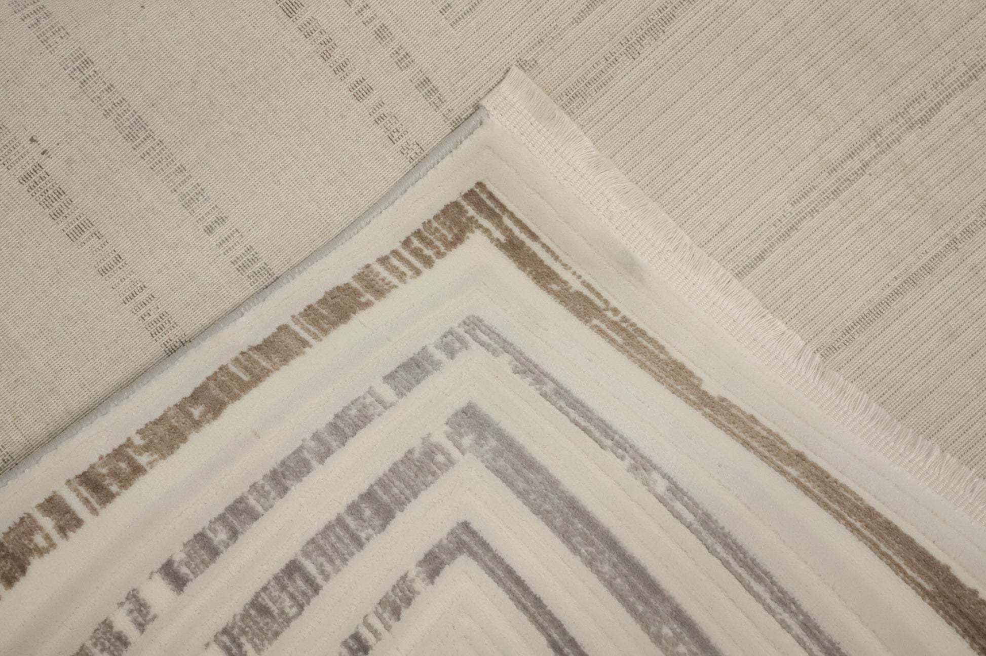 A Beautiful Genuine Turkey Modern rug is Machine Made by skillful weavers in Turkey with Polyester Material. This rug is in New, First Quality condition. dimensions are 7' 5'' X 5' 2'' in foot and 226 X 157 in centimeter. the primary color is Beige & Ivories.