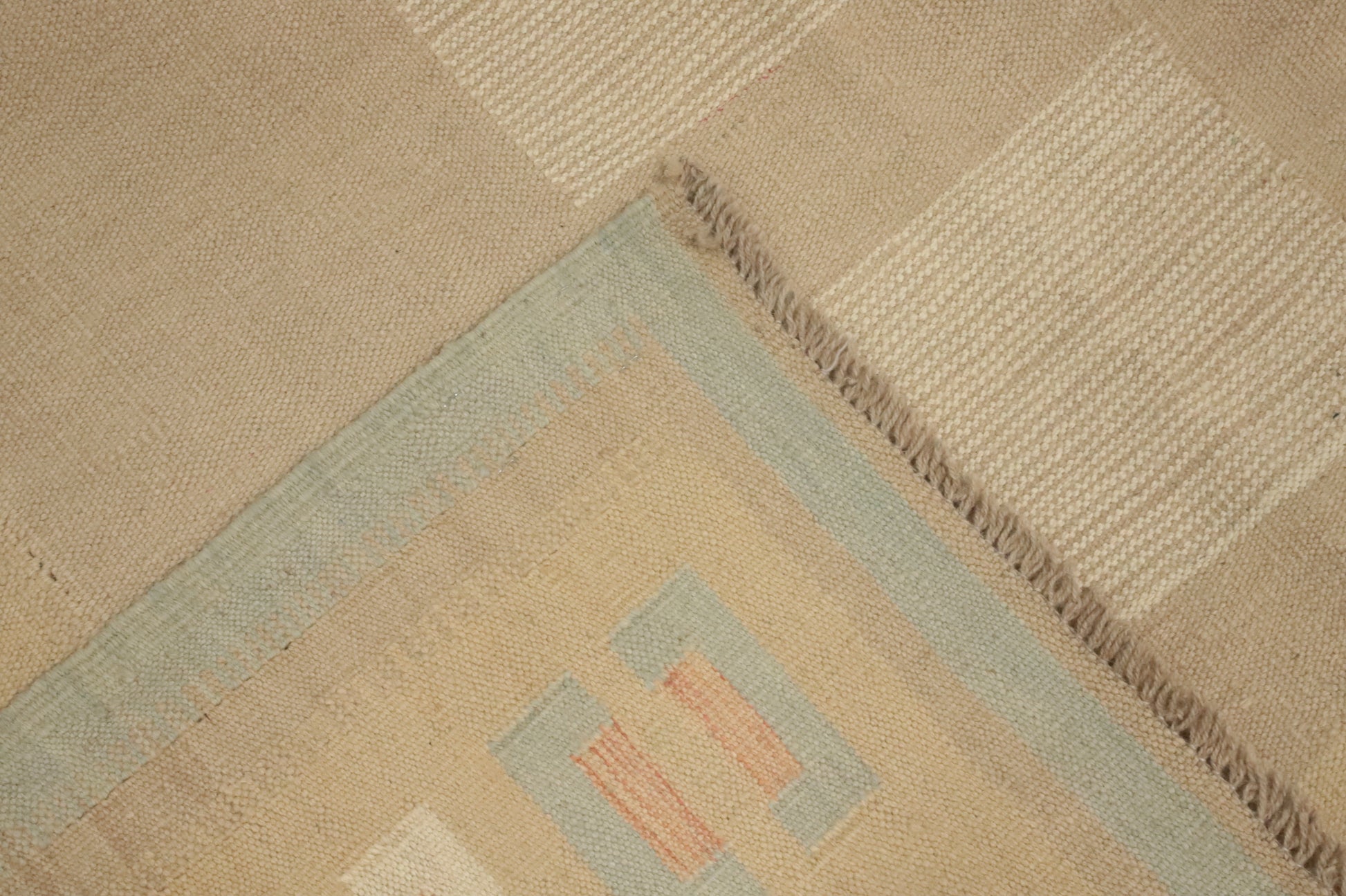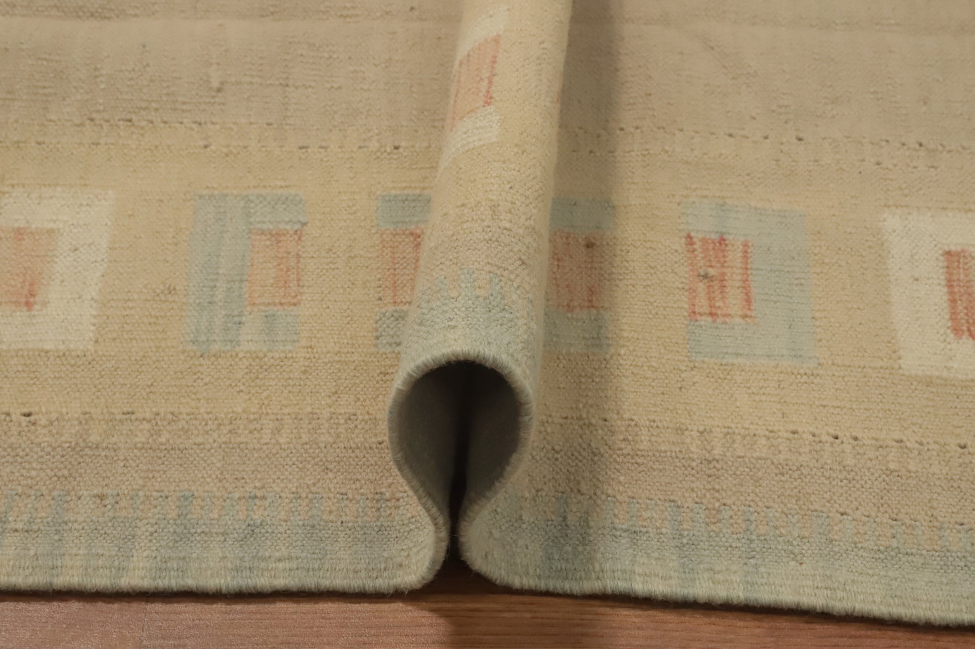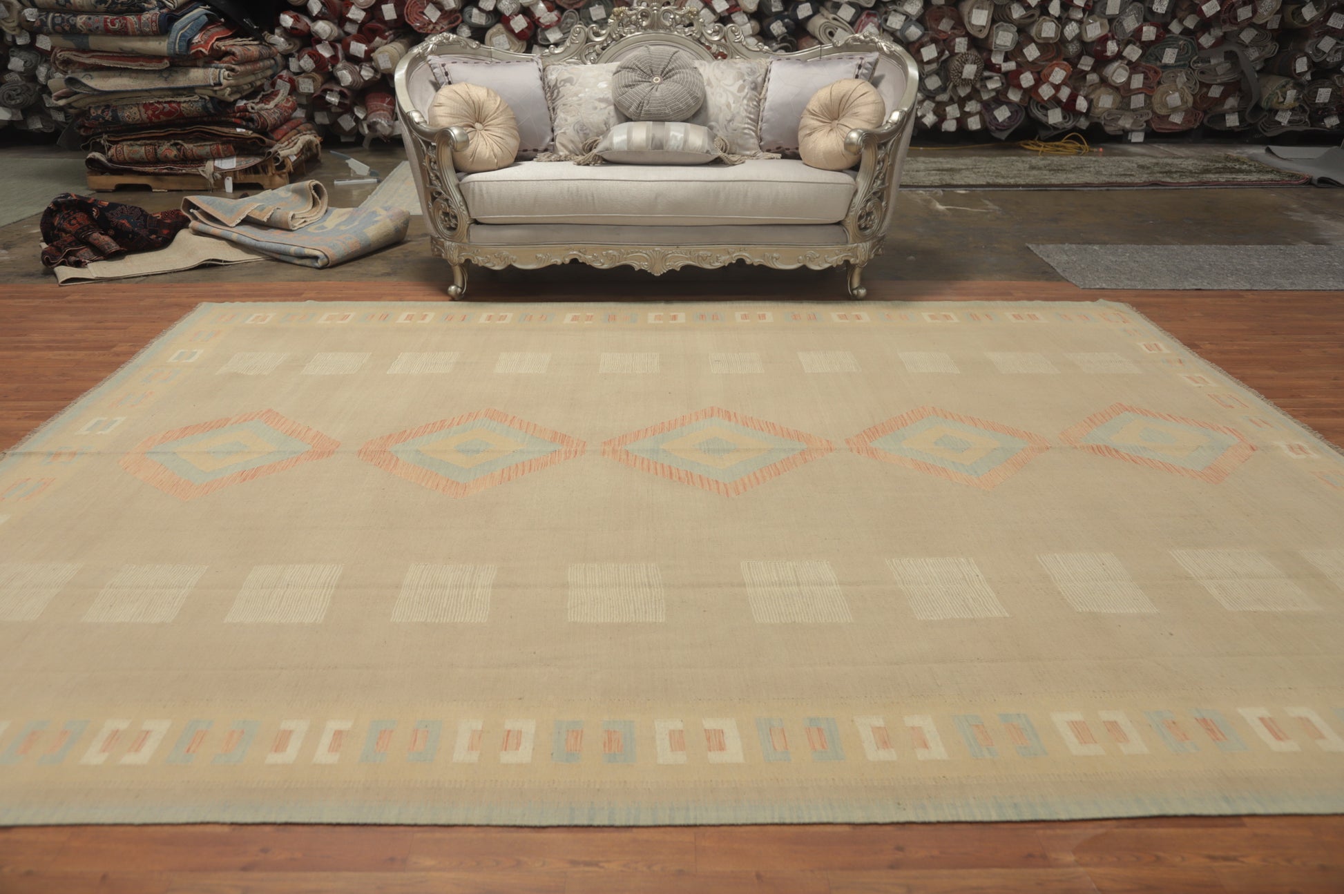A Beautiful Genuine Pakistan Kilim rug is Hand Woven by skillful weavers in Pakistan with 100% Wool Material. This rug is in New, First Quality condition. dimensions are 12' 6'' X 9' 9'' in foot and 381 X 297 in centimeter. the primary color is Beige & Ivories.