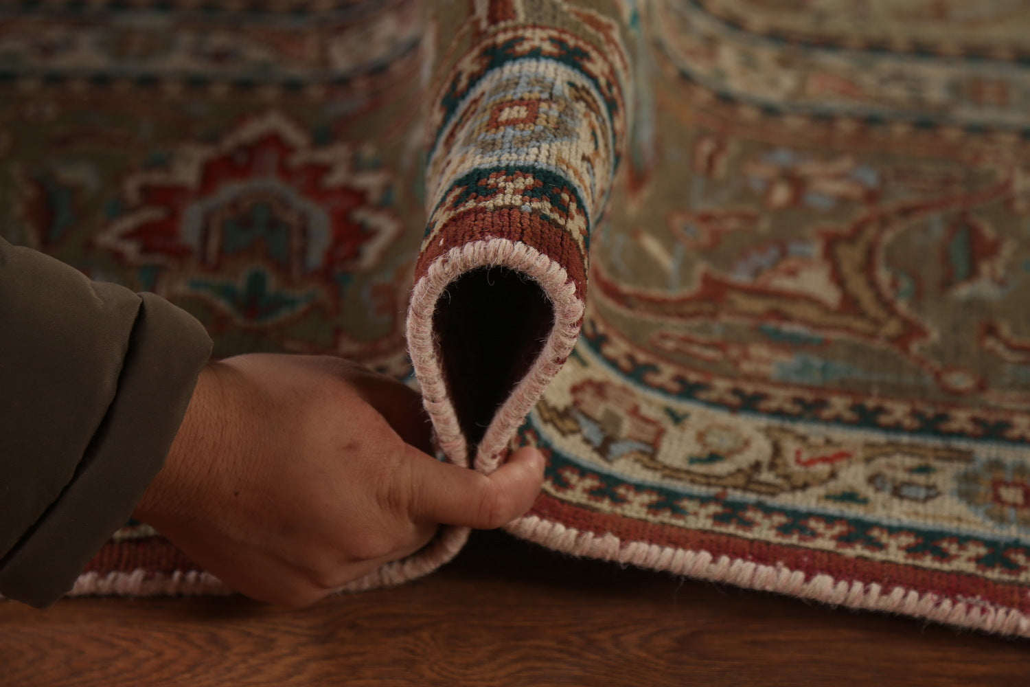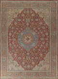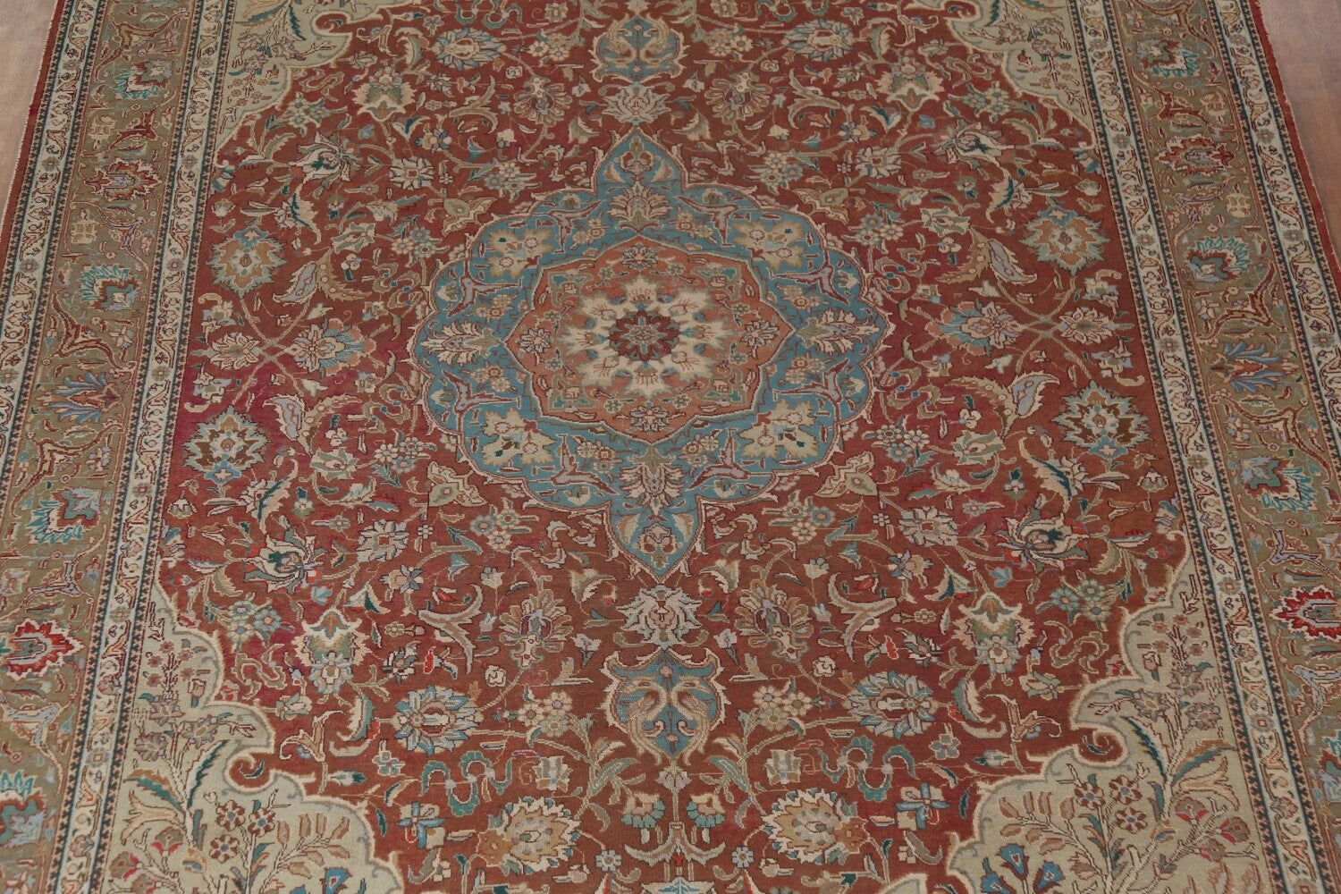 A Beautiful Genuine Persia ( Persia ) Tabriz rug is Hand Knotted by skillful weavers in Persia ( Persia ) with 100% Wool Material. This rug is in Very Good (Evenly Low Pile) condition. dimensions are 12' 5'' X 9' 5'' in foot and 378 X 287 in centimeter. the primary color is Oranges & Rust.