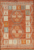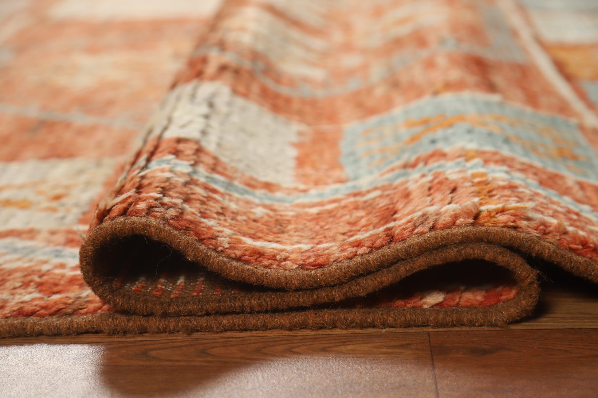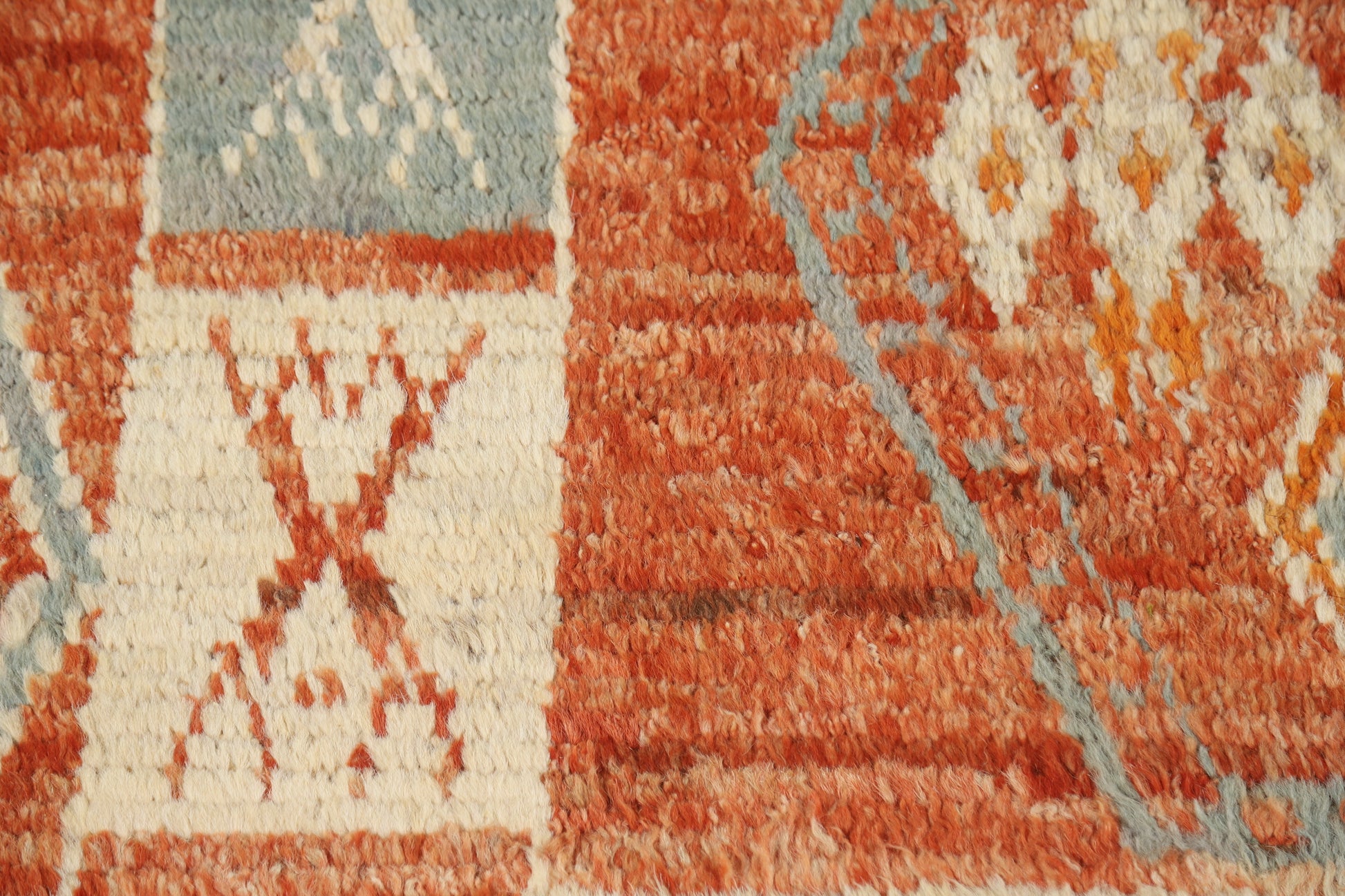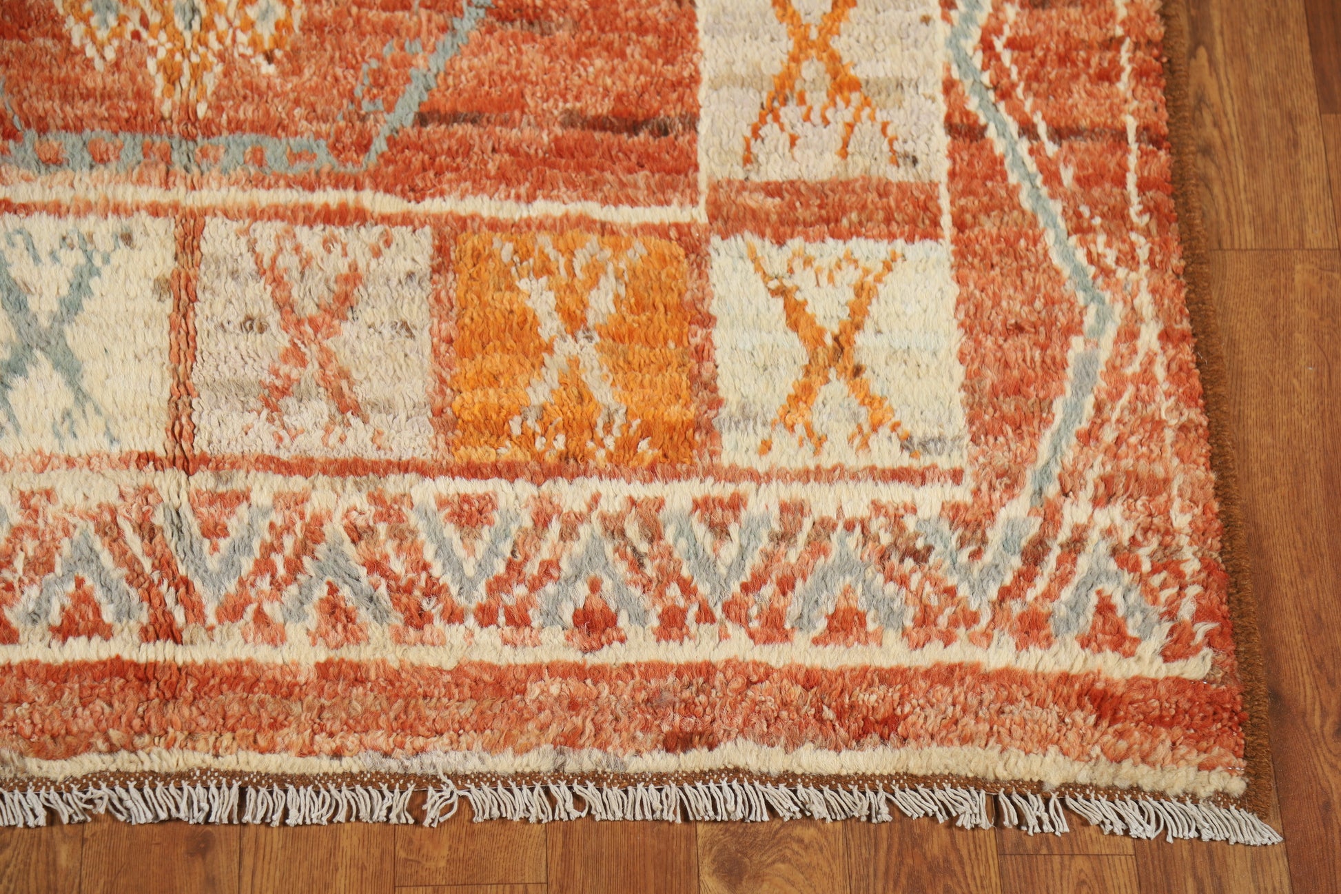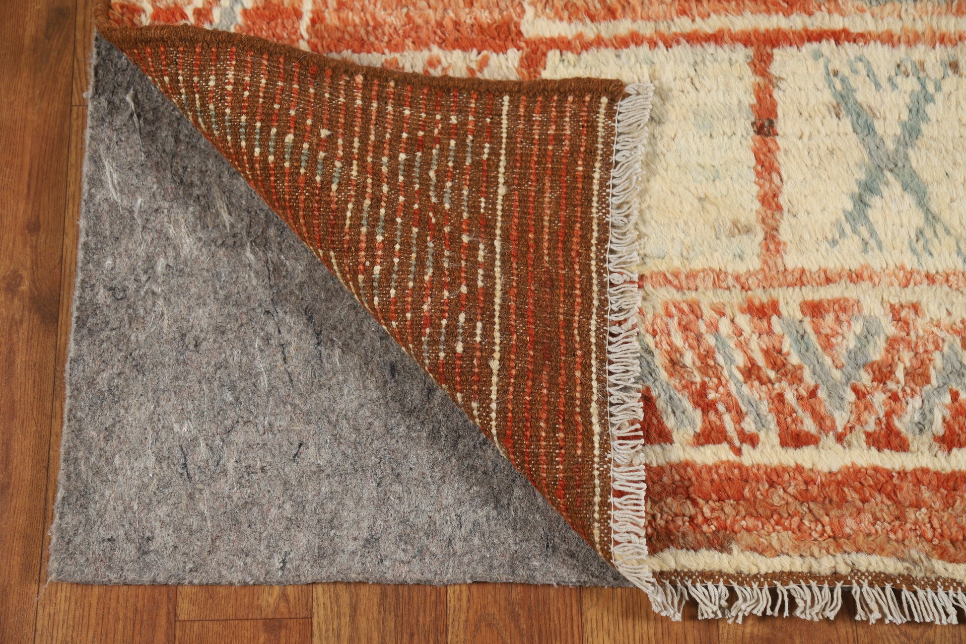 A Beautiful Genuine Pakistan Moroccan rug is Hand Knotted by skillful weavers in Pakistan with 100% Wool Material. This rug is in New, First Quality condition. dimensions are 6' 1'' X 4' 1'' in foot and 185 X 124 in centimeter. the primary color is Oranges & Rust.