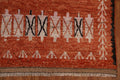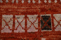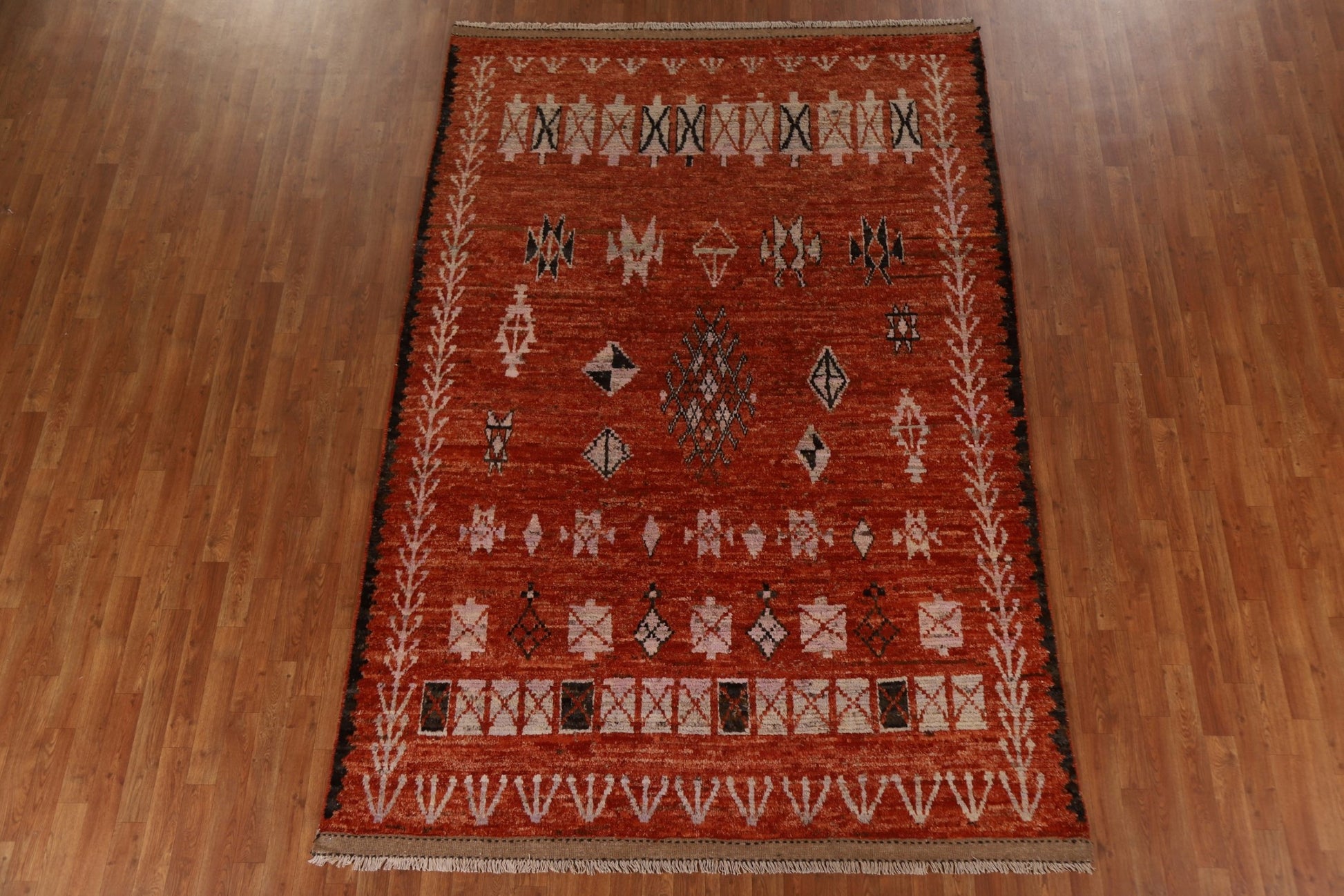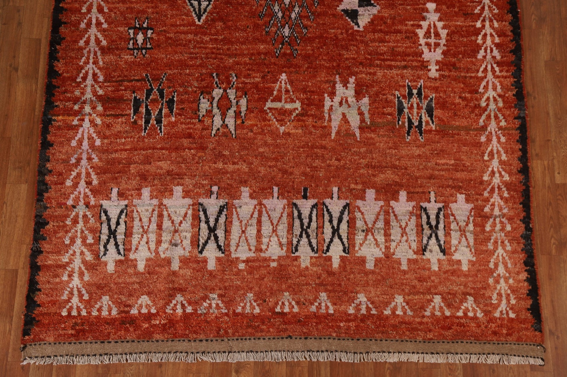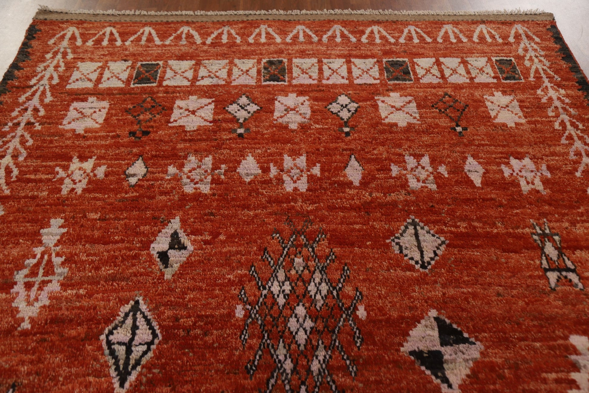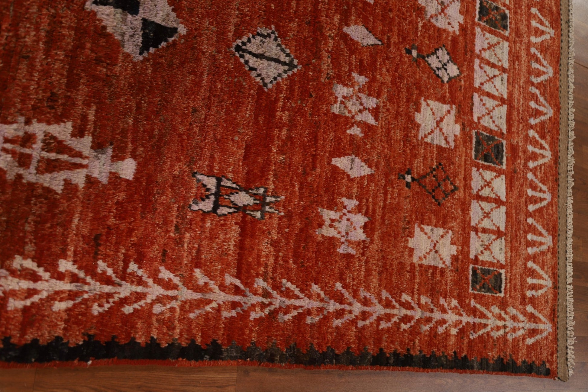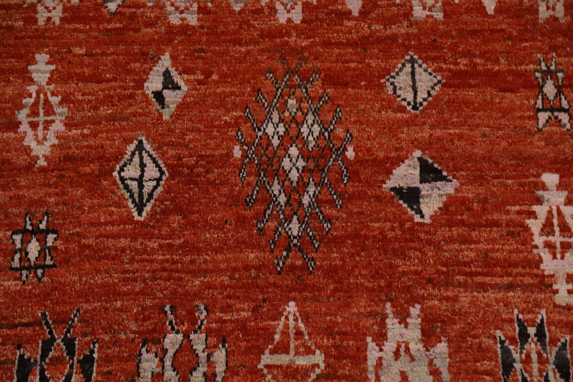 A Beautiful Genuine Pakistan Moroccan rug is Hand Knotted by skillful weavers in Pakistan with 100% Wool Material. This rug is in condition. dimensions are 9' 11'' X 6' 7'' in foot and 302 X 201 in centimeter. the primary color is Oranges & Rust.