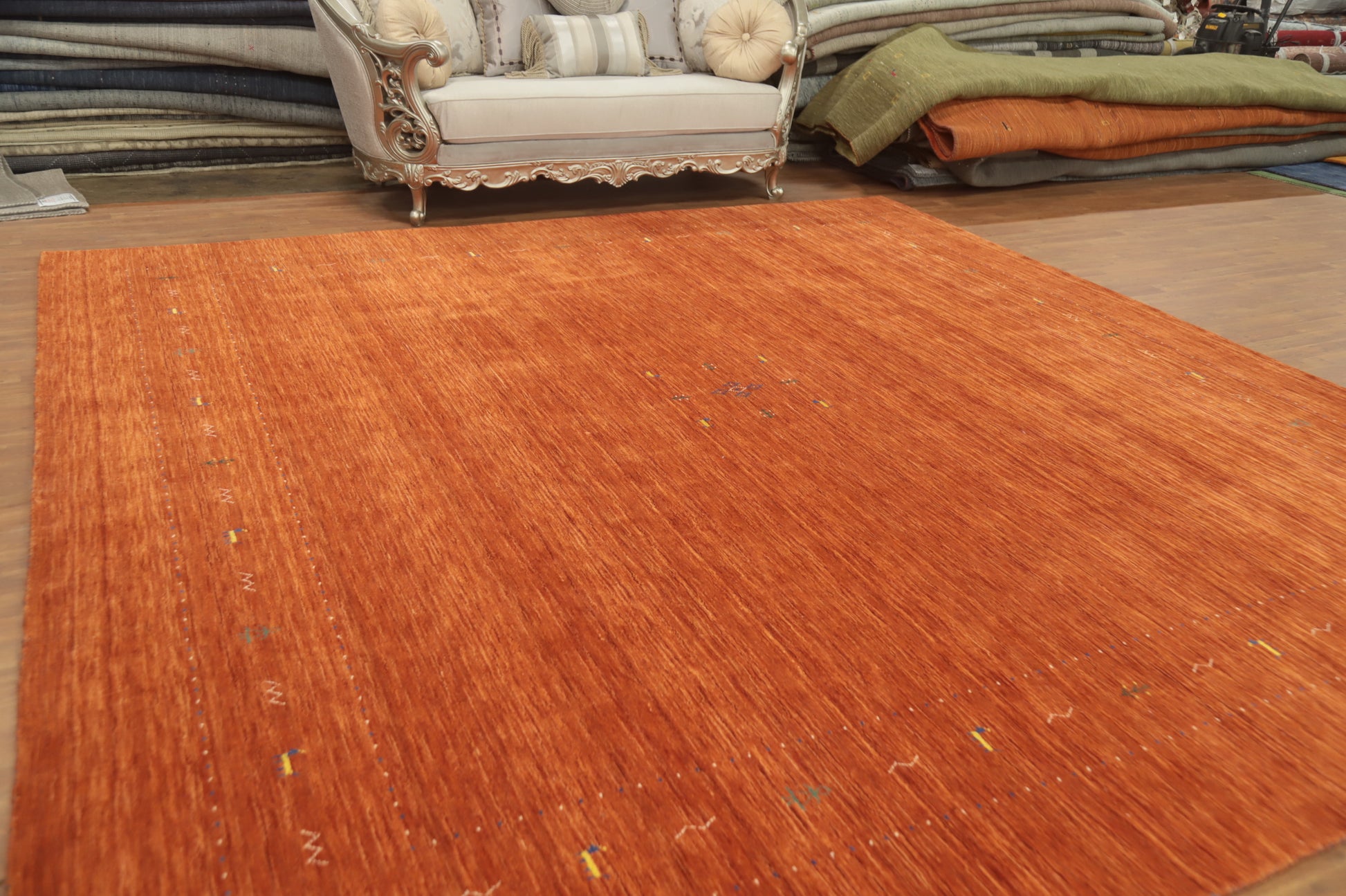 Orange Wool Gabbeh Square Wool Area Rug 12x12