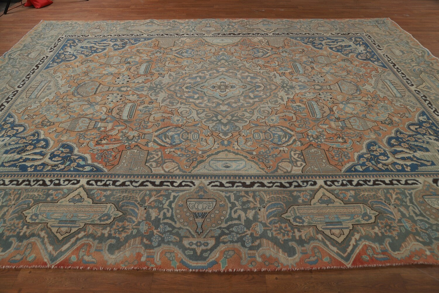 A Beautiful Genuine Persia ( Persia ) Kashmar rug is Hand Knotted by skillful weavers in Persia ( Persia ) with 100% Wool Material. This rug is in Very Good (Evenly Low Pile) condition. dimensions are 12' 5'' X 9' 5'' in foot and 378 X 287 in centimeter. the primary color is Oranges & Rust.