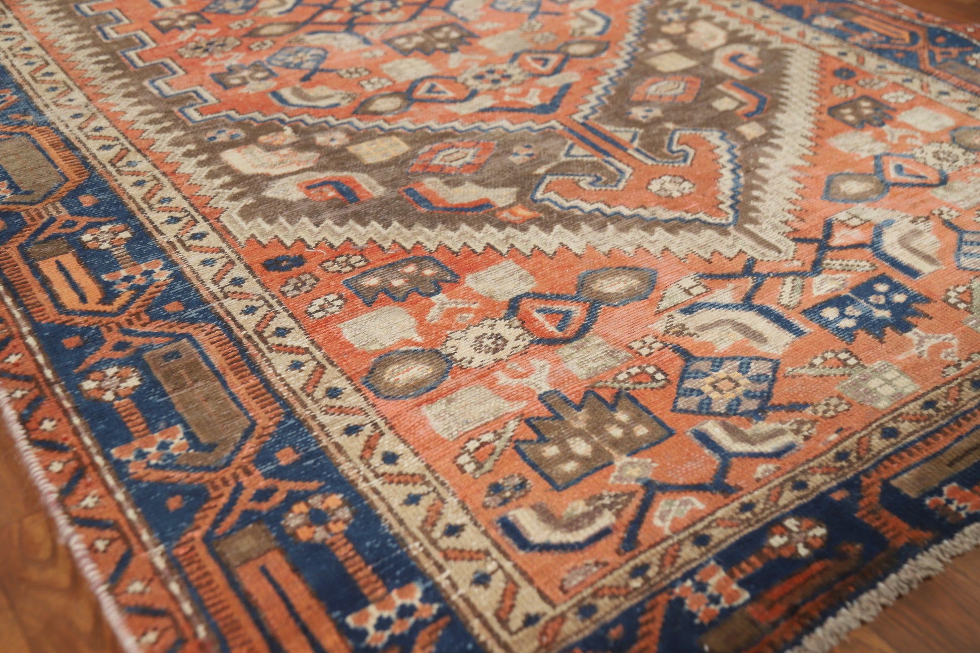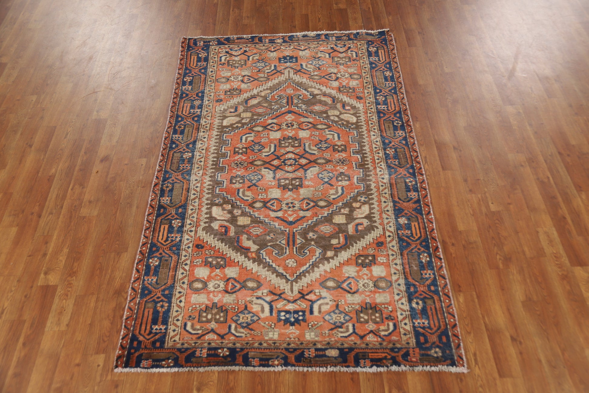 Orange Wool Medallion Persian Rug 4x7