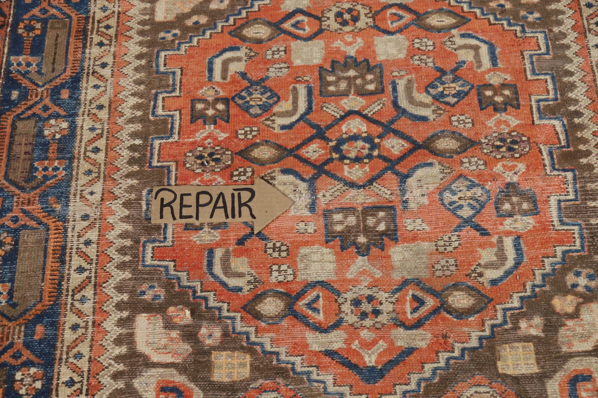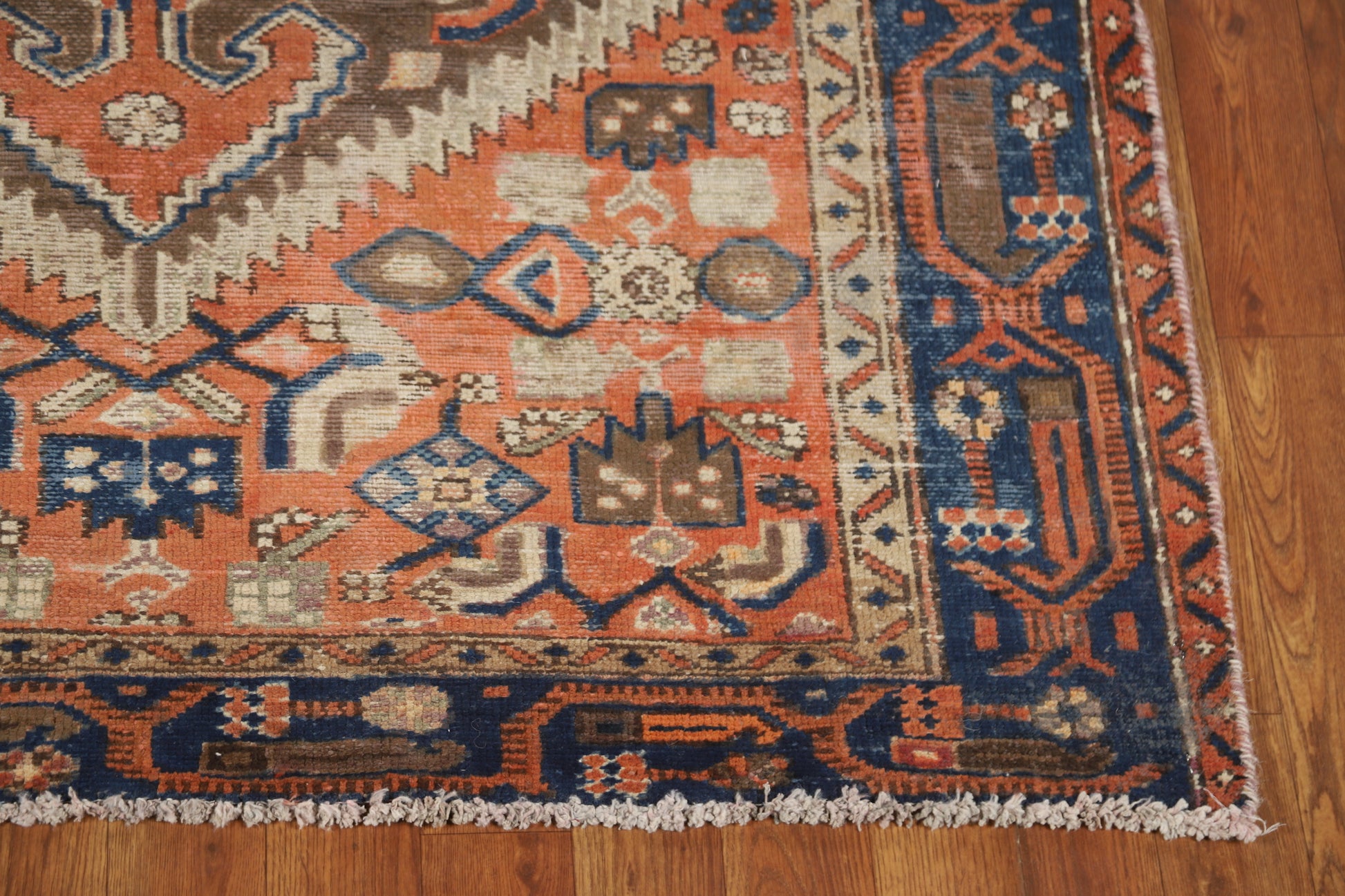 A Beautiful Genuine Persia ( Persia ) Hamedan rug is Hand Knotted by skillful weavers in Persia ( Persia ) with 100% Wool Material. This rug is in Very Good ( Evenly Low Pile-Repair) condition. dimensions are 6' 10'' X 4' 2'' in foot and 208 X 127 in centimeter. the primary color is Oranges & Rust.