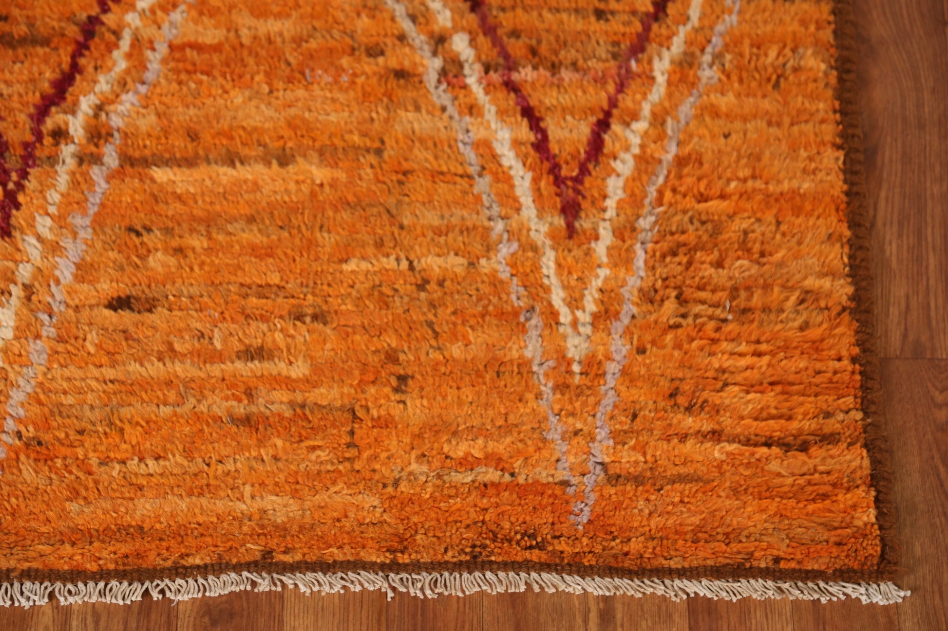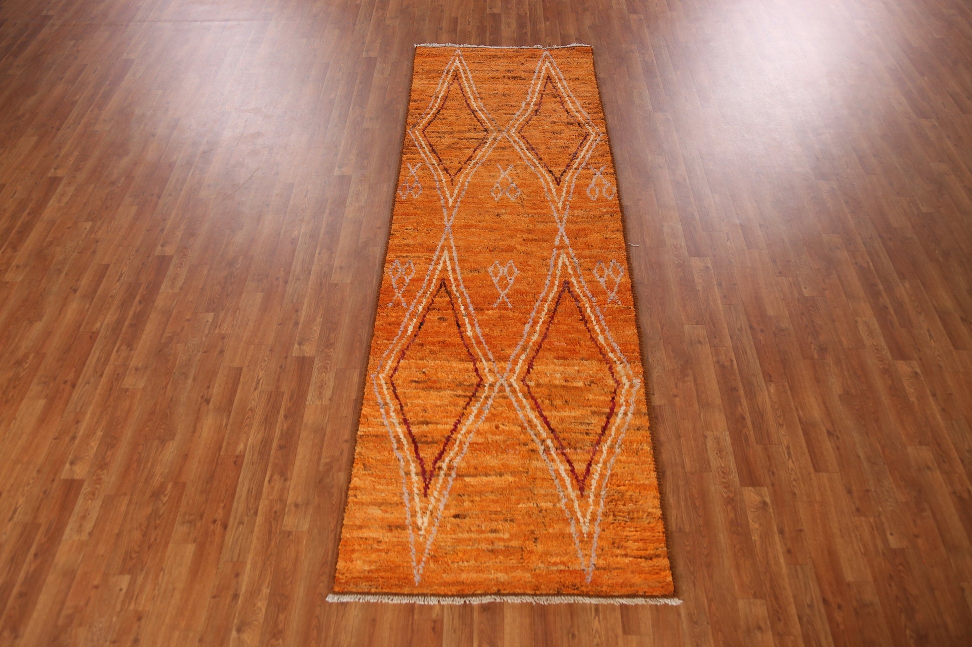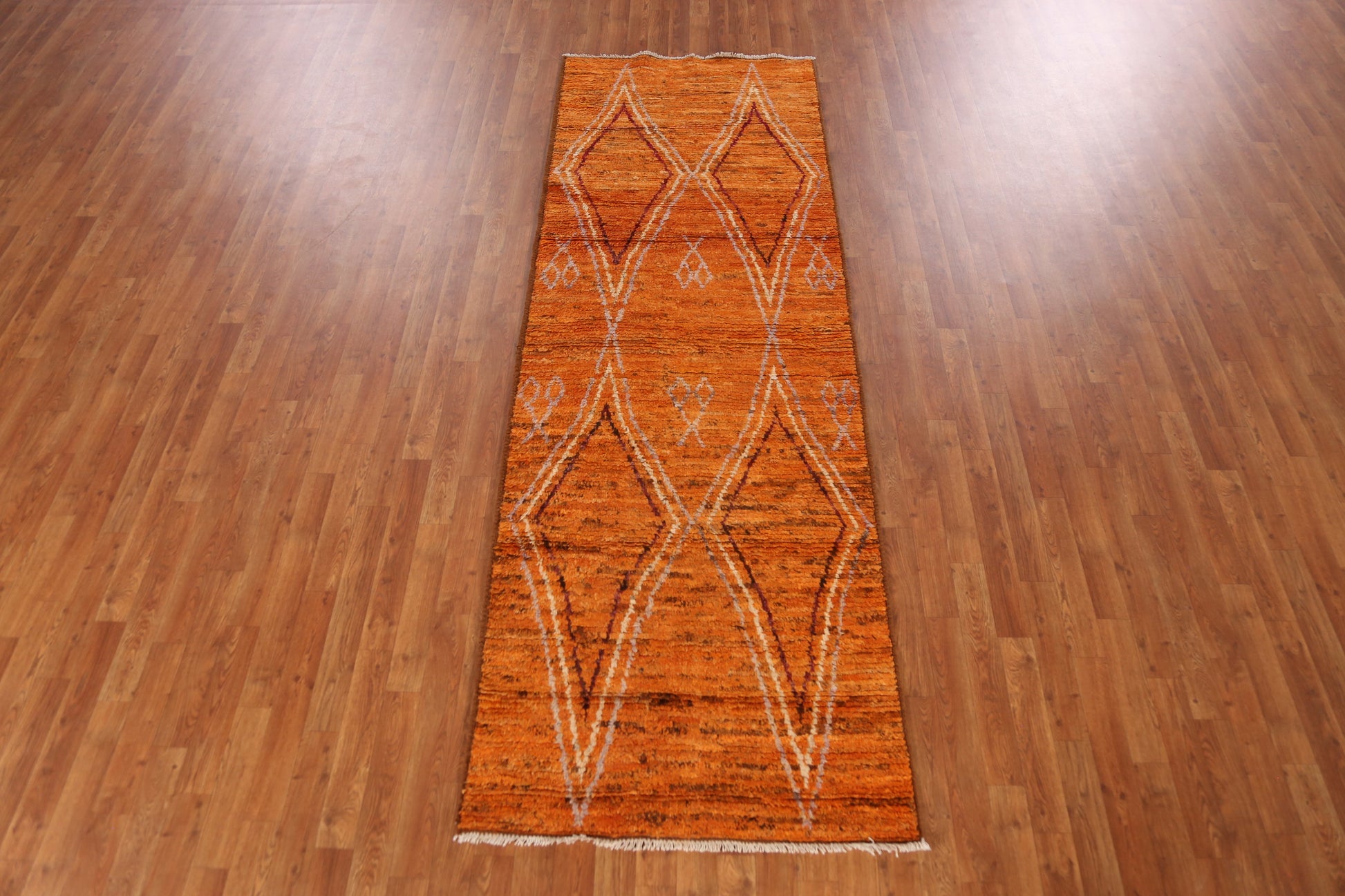 Orange Wool Moroccan Oriental Runner Rug 3x10