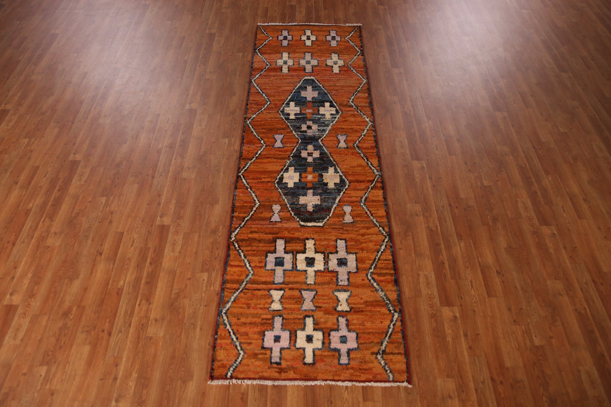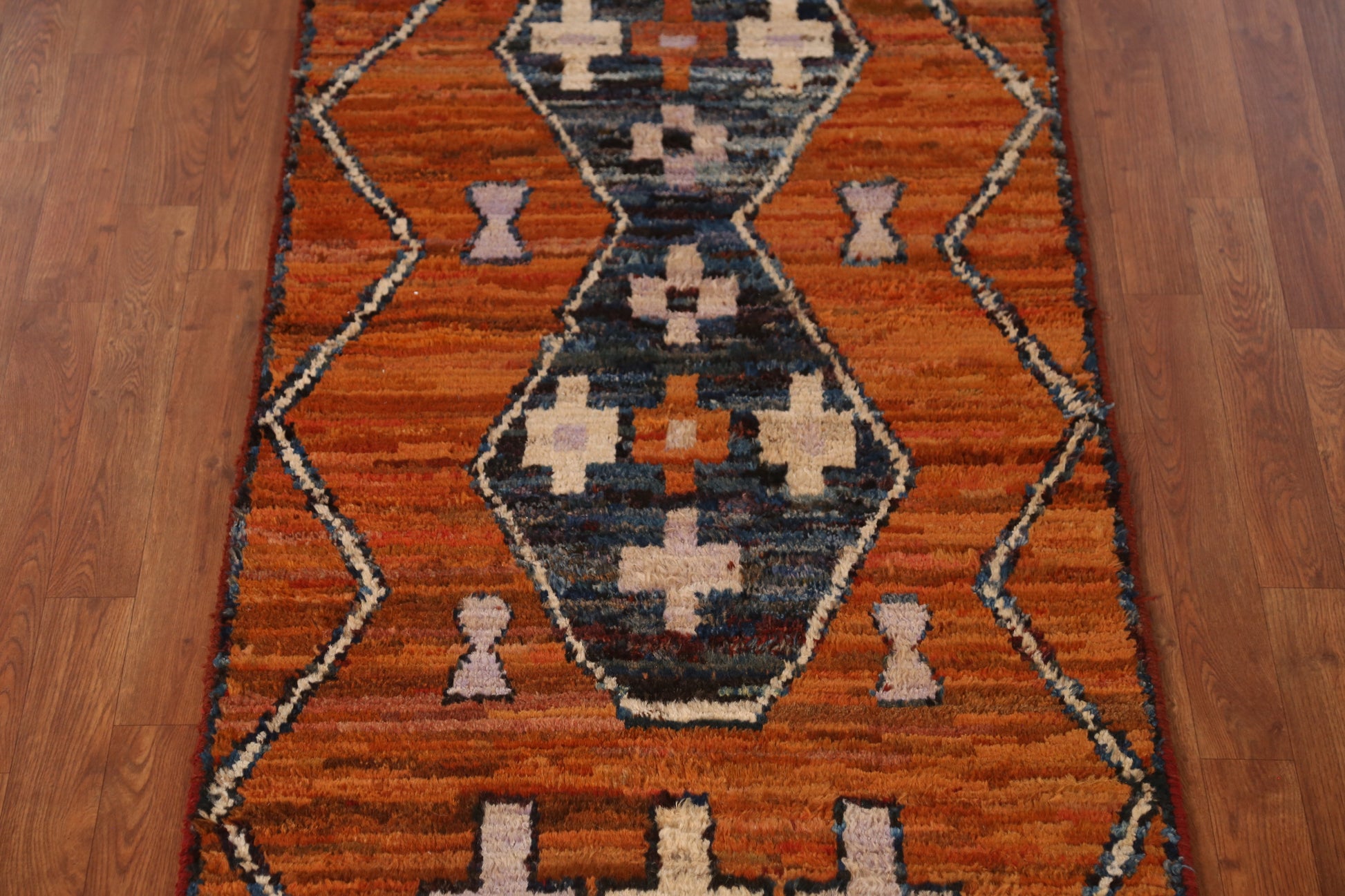Orange Wool Moroccan Oriental Runner Rug 3x10