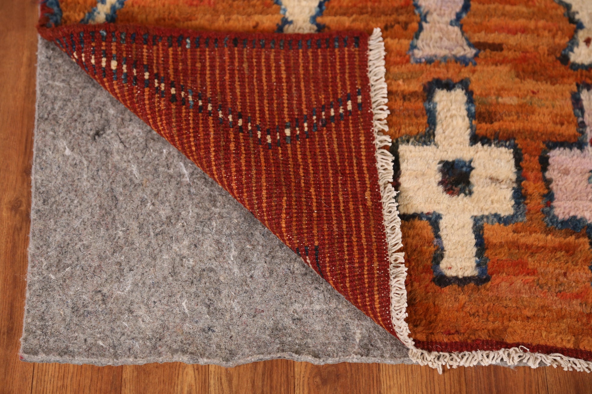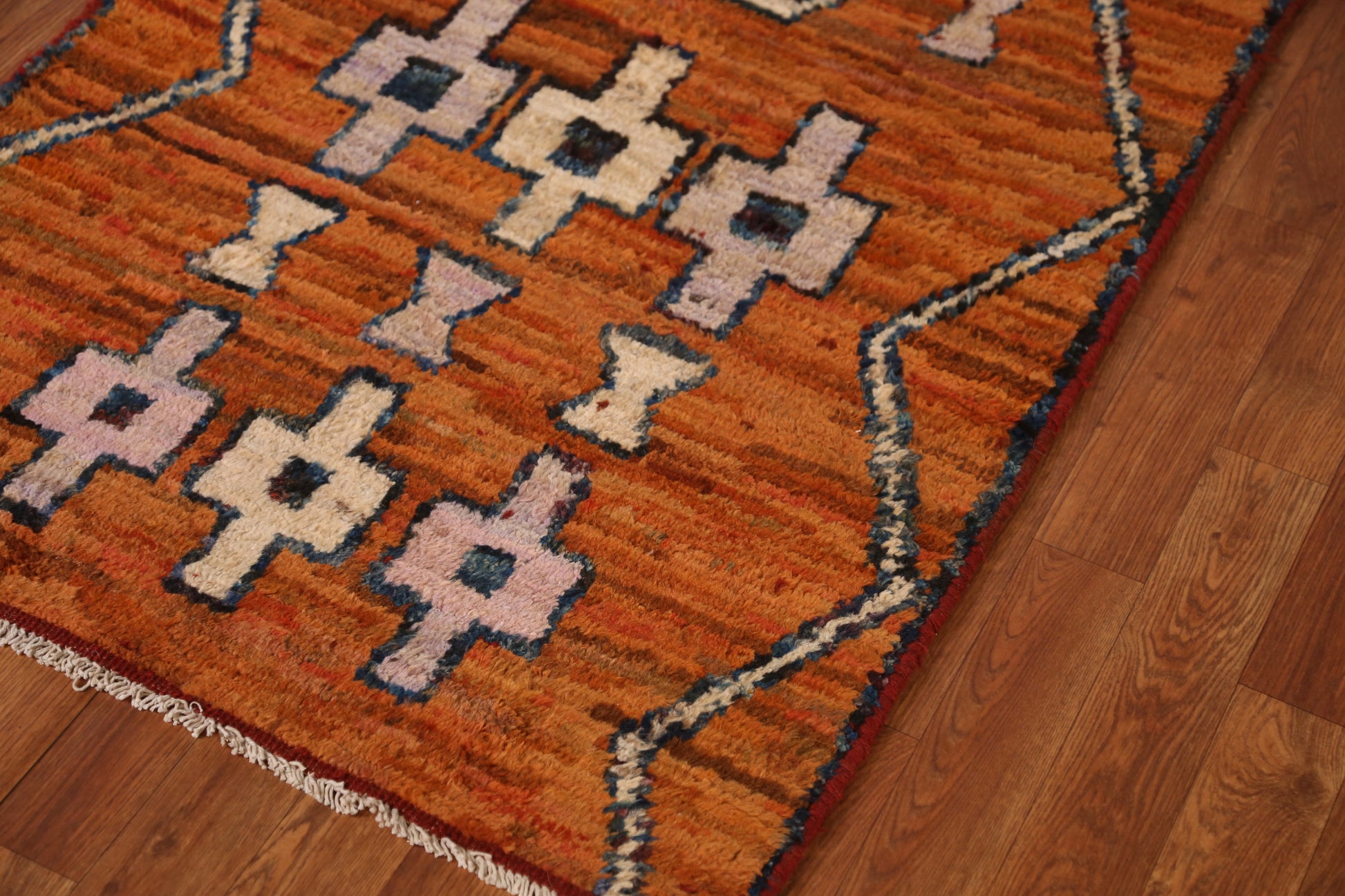 A Beautiful Genuine Pakistan Moroccan rug is Hand Knotted by skillful weavers in Pakistan with 100% Wool Material. This rug is in New, First Quality condition. dimensions are 9' 10'' X 2' 11'' in foot and 300 X 89 in centimeter. the primary color is Oranges & Rust.