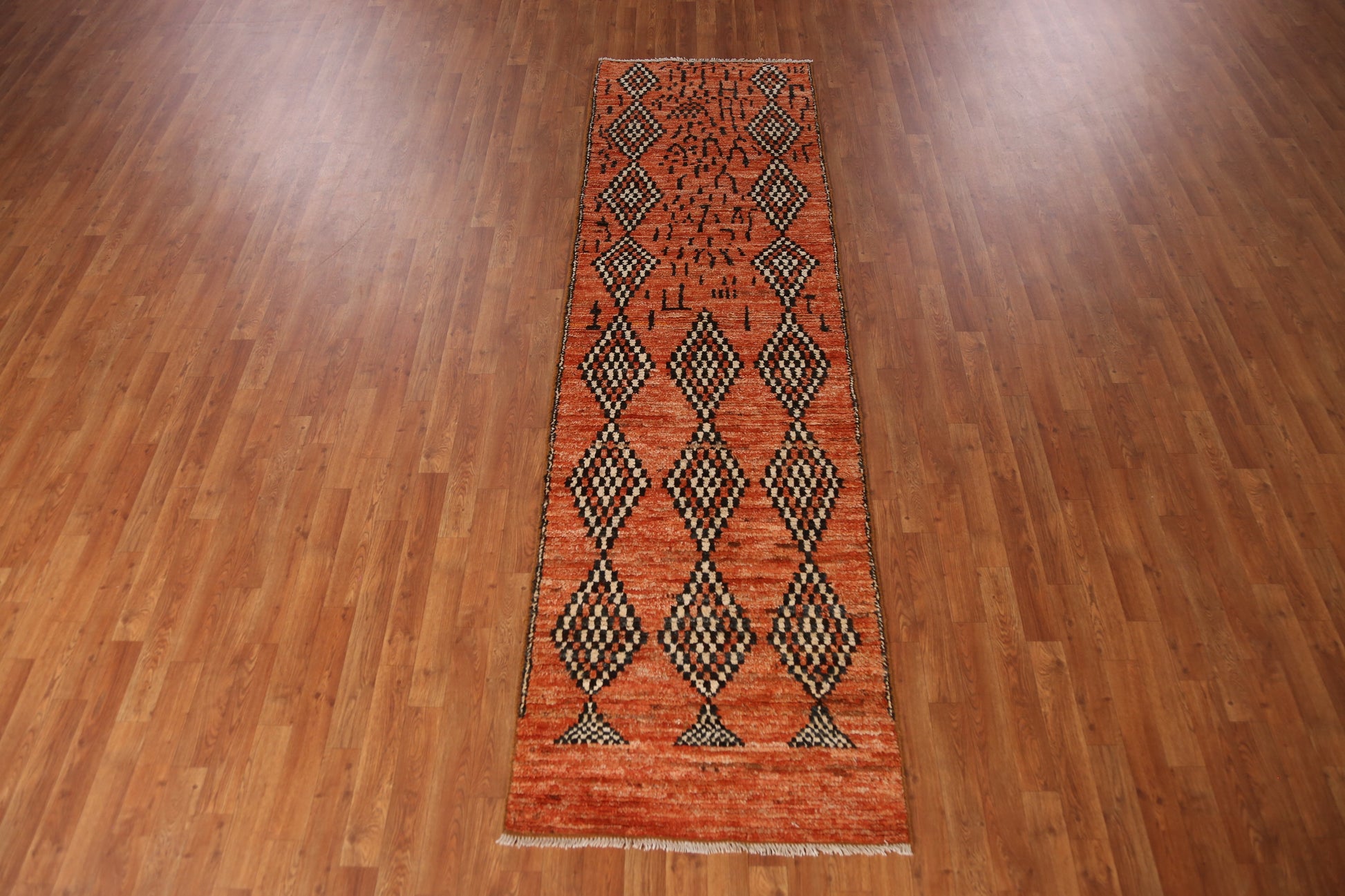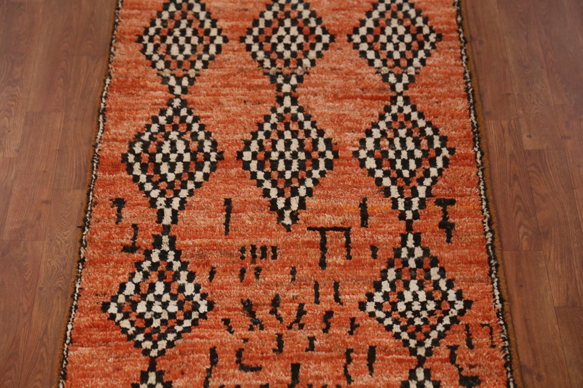 Orange Wool Moroccan Oriental Runner Rug 3x10