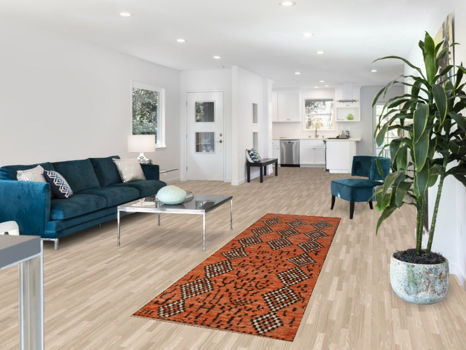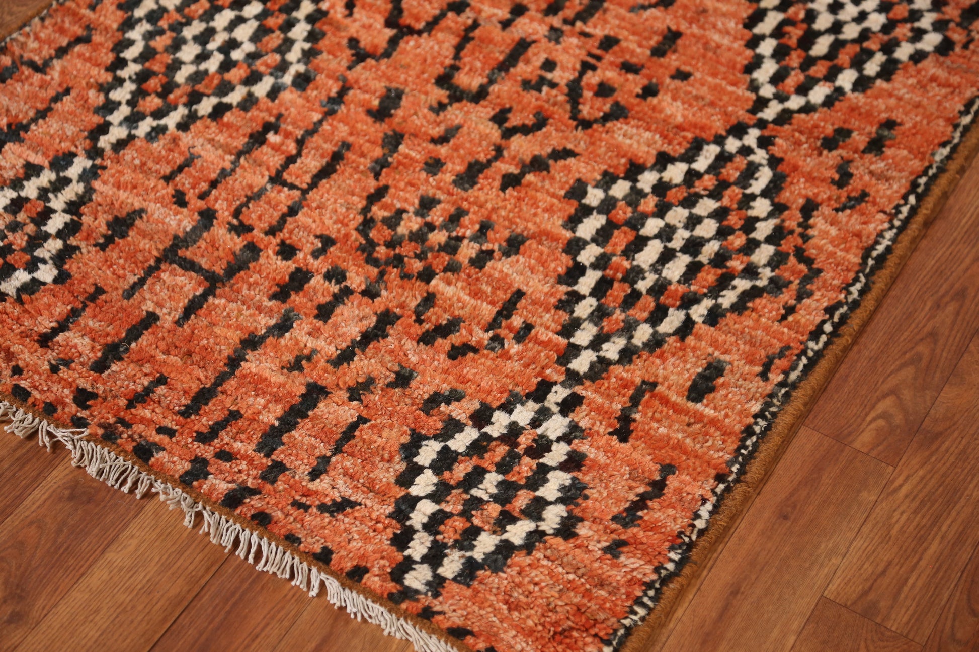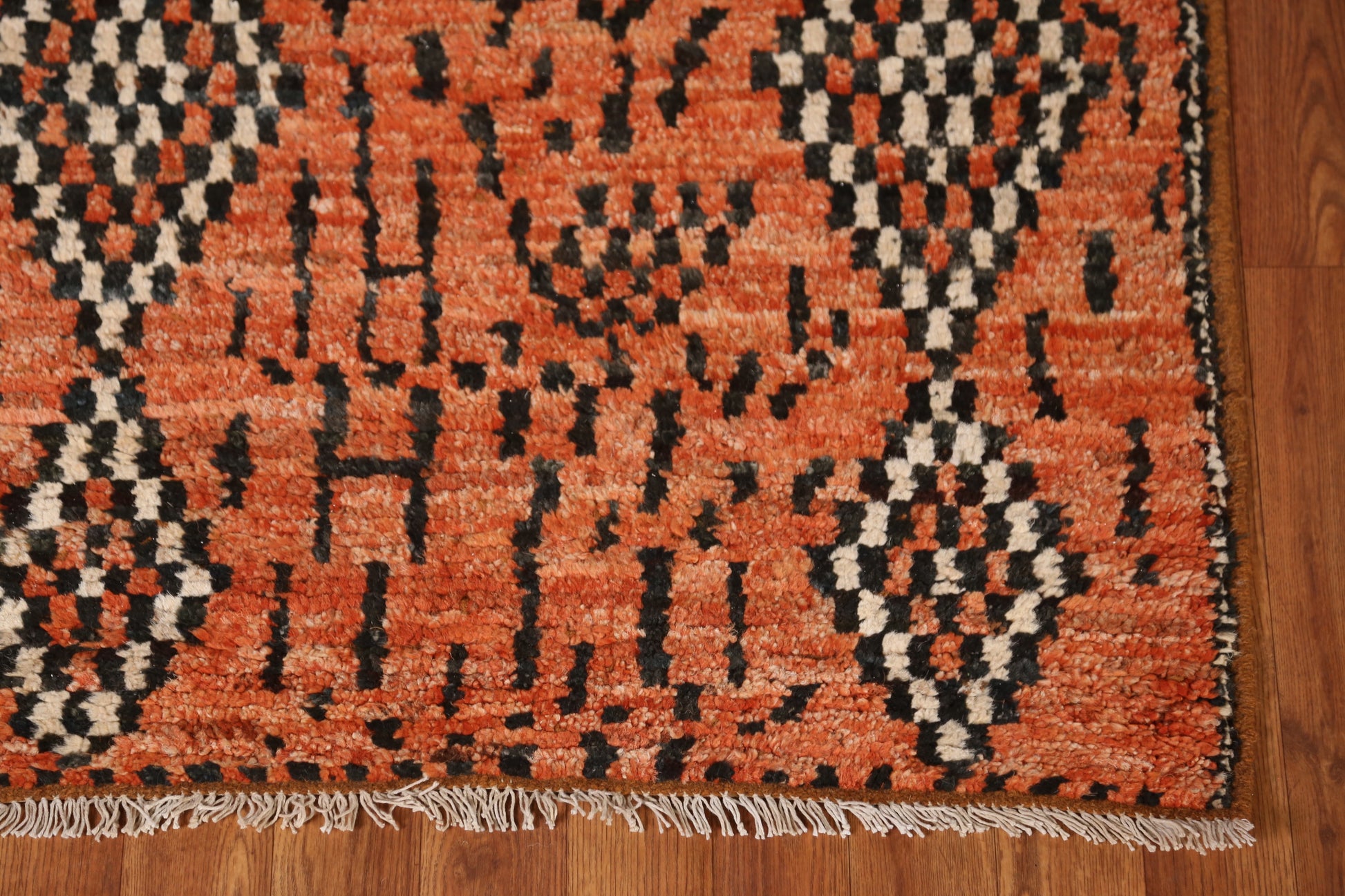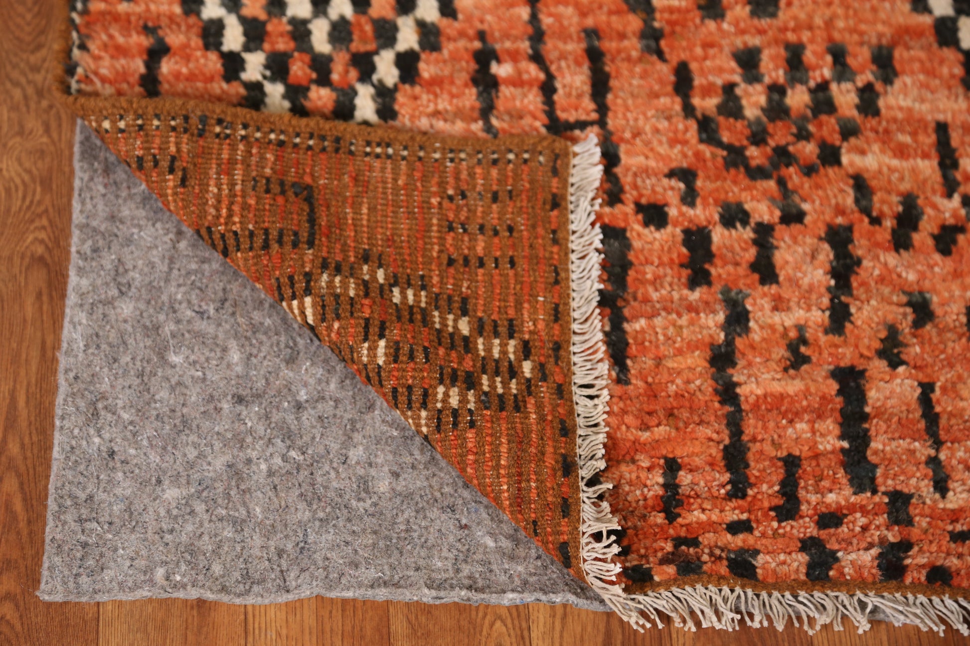 A Beautiful Genuine Pakistan Moroccan rug is Hand Knotted by skillful weavers in Pakistan with 100% Wool Material. This rug is in New, First Quality condition. dimensions are 9' 7'' X 2' 9'' in foot and 292 X 84 in centimeter. the primary color is Oranges & Rust.